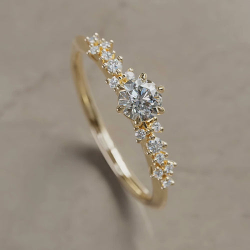 Пръстенът с диамант Astrid е небесен стил пръстен, който разполага с изящен централен диамант, акцентиран от клъстери от звездоподобни малки диаманти. Този минималистичен изящен пръстен би бил перфектната алтернатива на годежен пръстен.