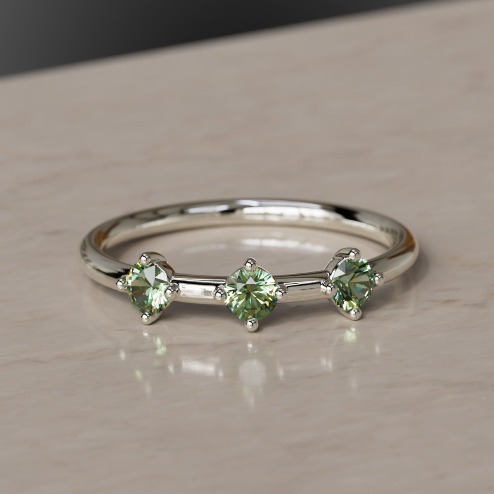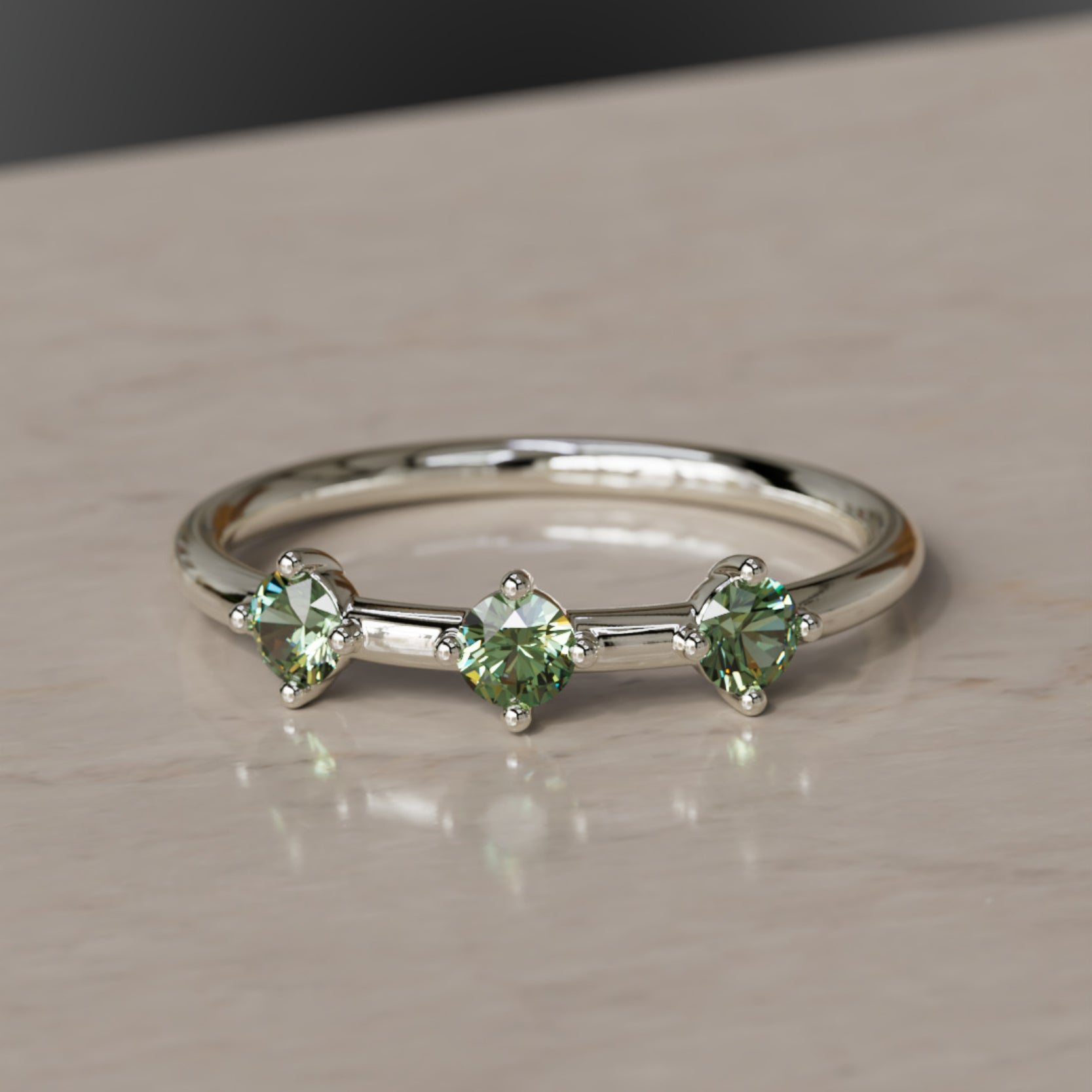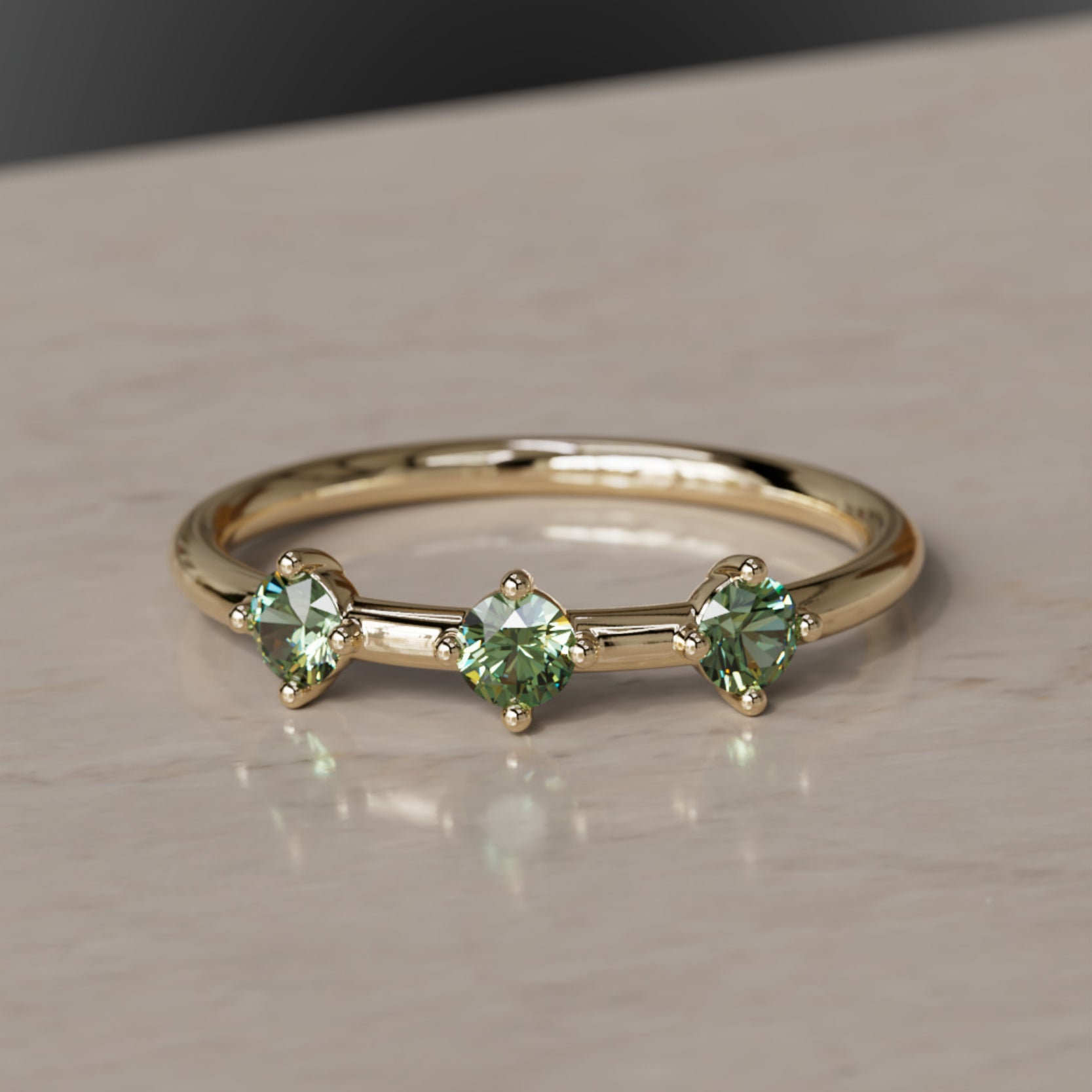 La constel·lació d’Orion el Caçador és una de les disposicions d’estrelles més distintives al cel nocturn. Les tres belles estrelles que delimiten el cinturó del Caçador van ser la inspiració per a l’Anell del Cinturó d’Orion. Safirs verds d’alta qualitat i d’origen ètic estan incrustats en or satinat per donar a aquest anell un aspecte romàntic. Porta l’Anell del Cinturó d’Orion per simbolitzar un canvi còsmic a la teva vida. Es combina perfectament amb l’Anell apilable Ulla i l’Anell apilable Milky Way. Anell fet en or groc, or rosa o or blanc fairmined sòlid i amb un pes total de 0,30 quirats.