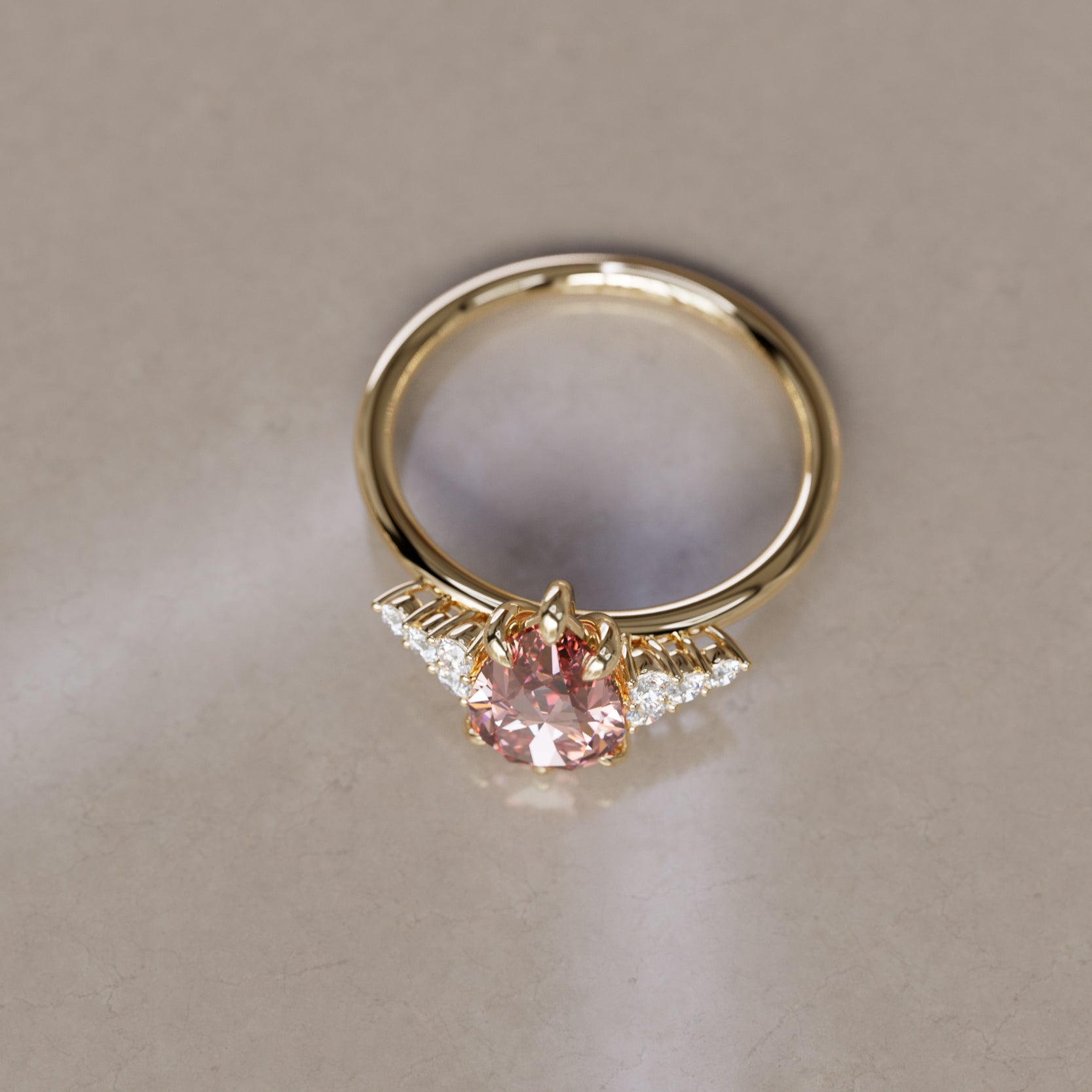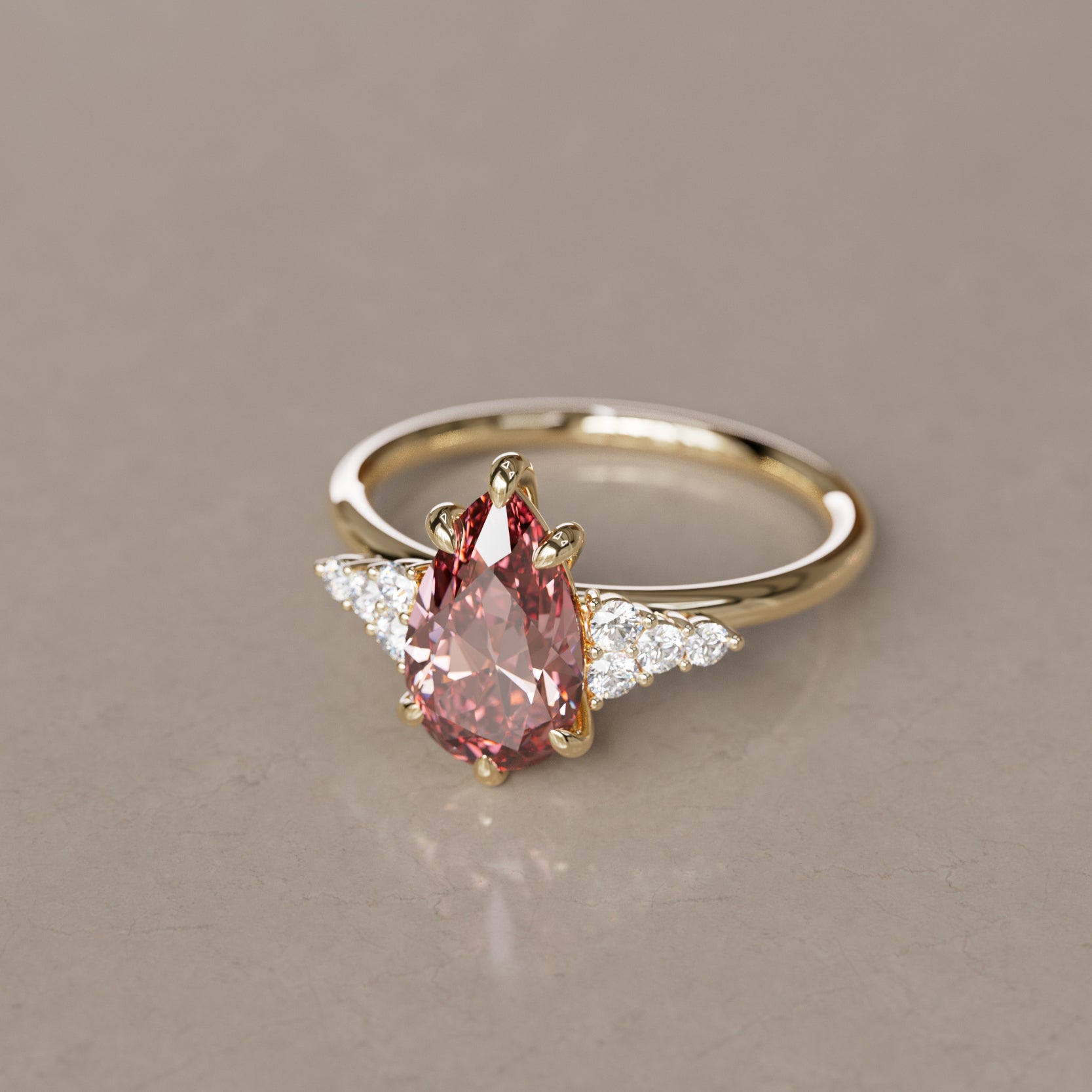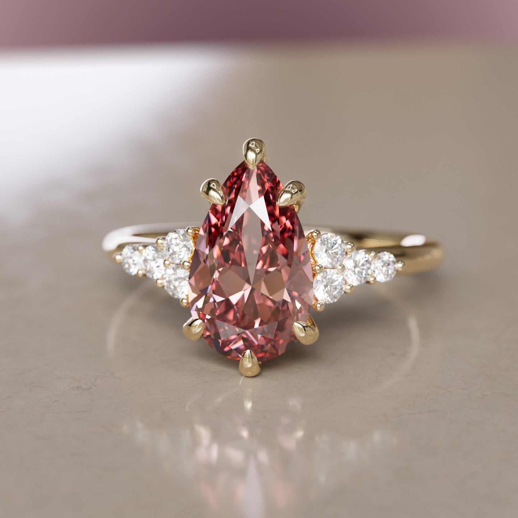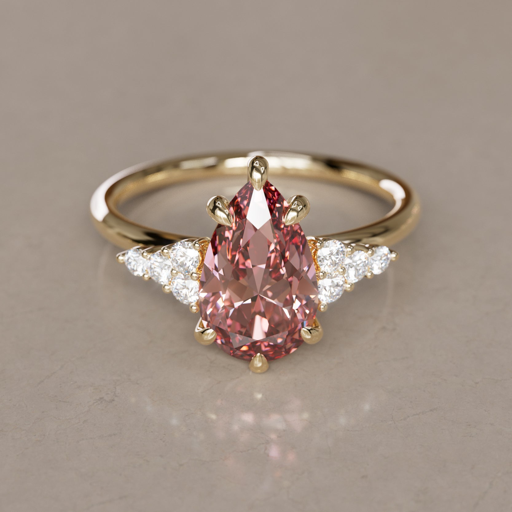 Juniper Pear Pink Lab Diamond Unique Modern Engagement Ring