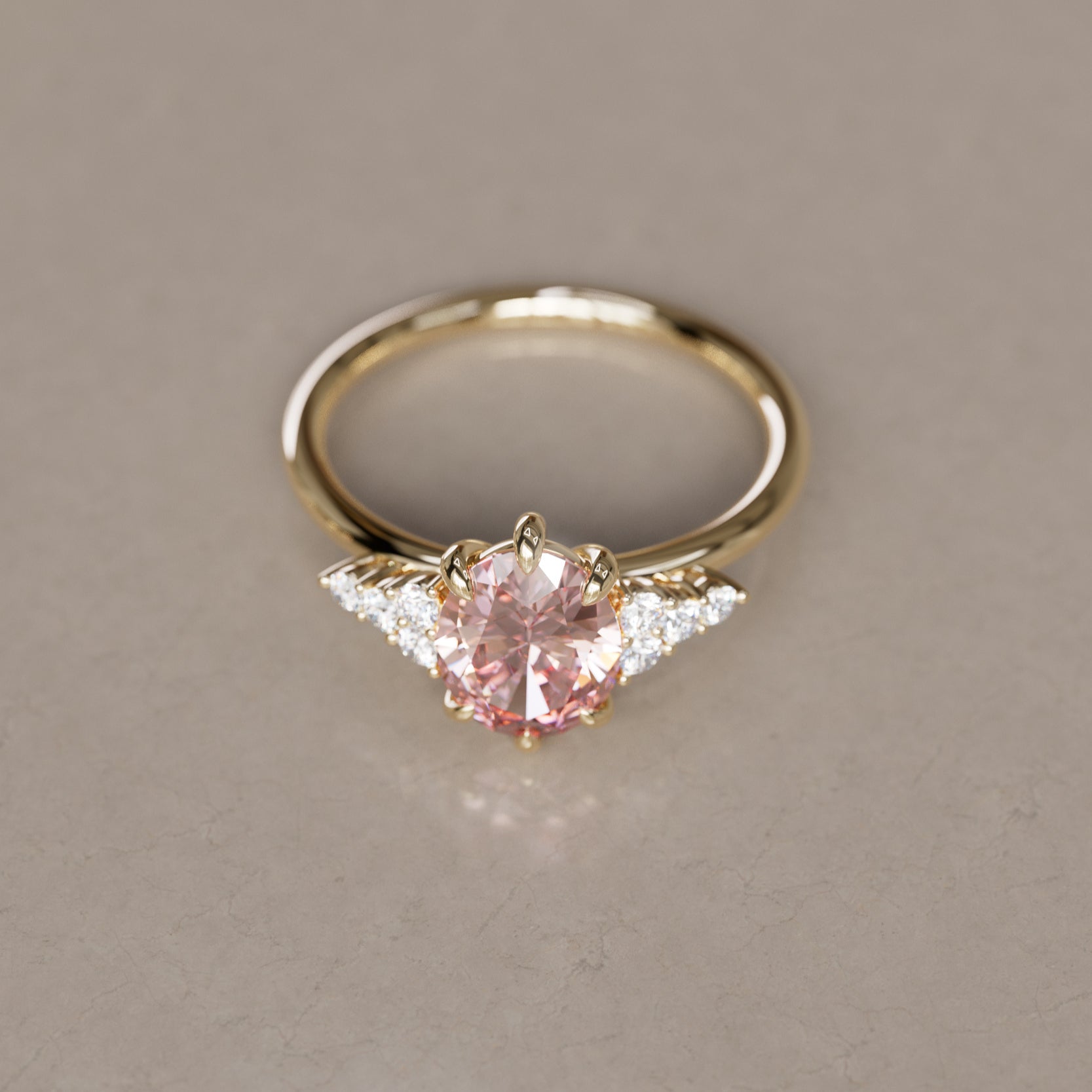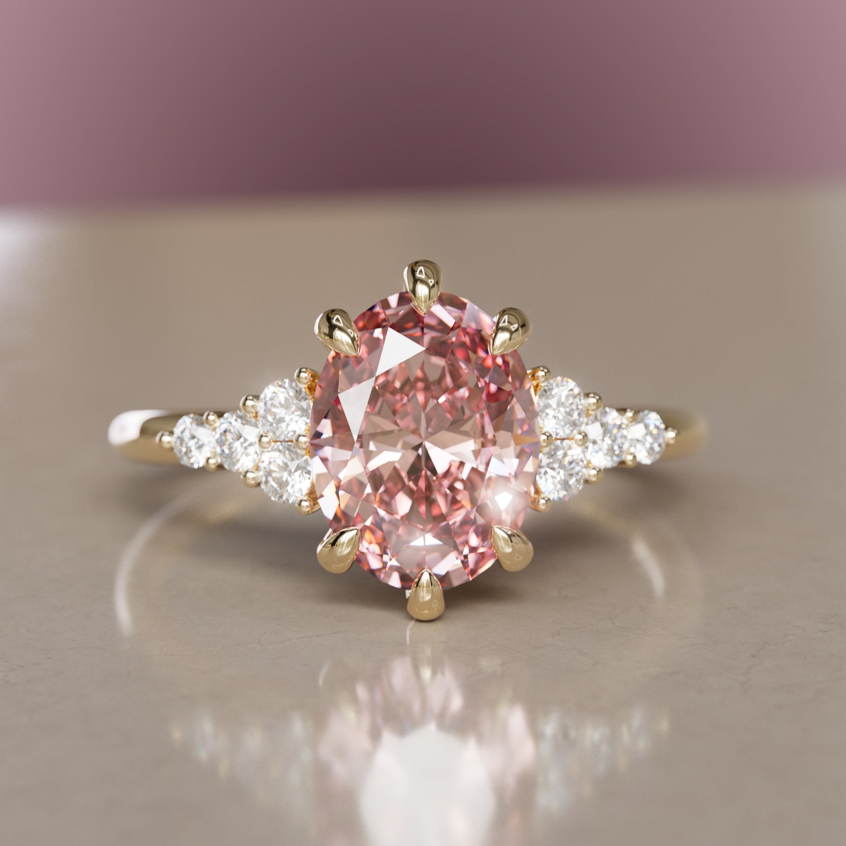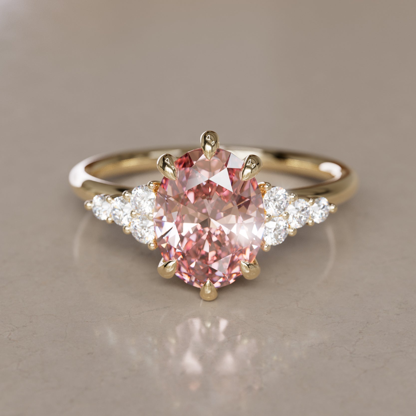 Plumeria Oval Pink Lab Diamond Unique Modern Engagement Ring