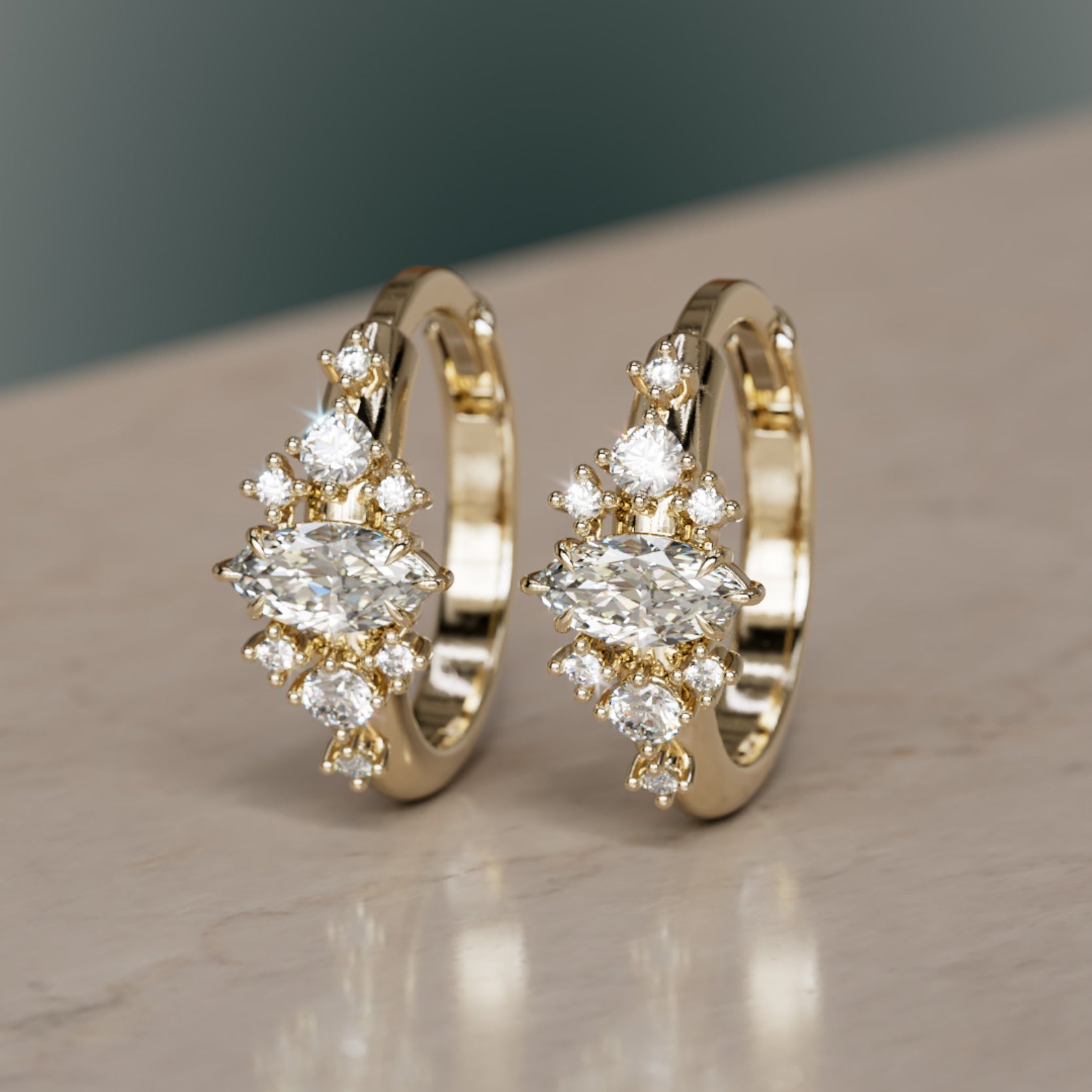 Lura Marquise Lab Diamond Clicker Hoops Unique Earrings