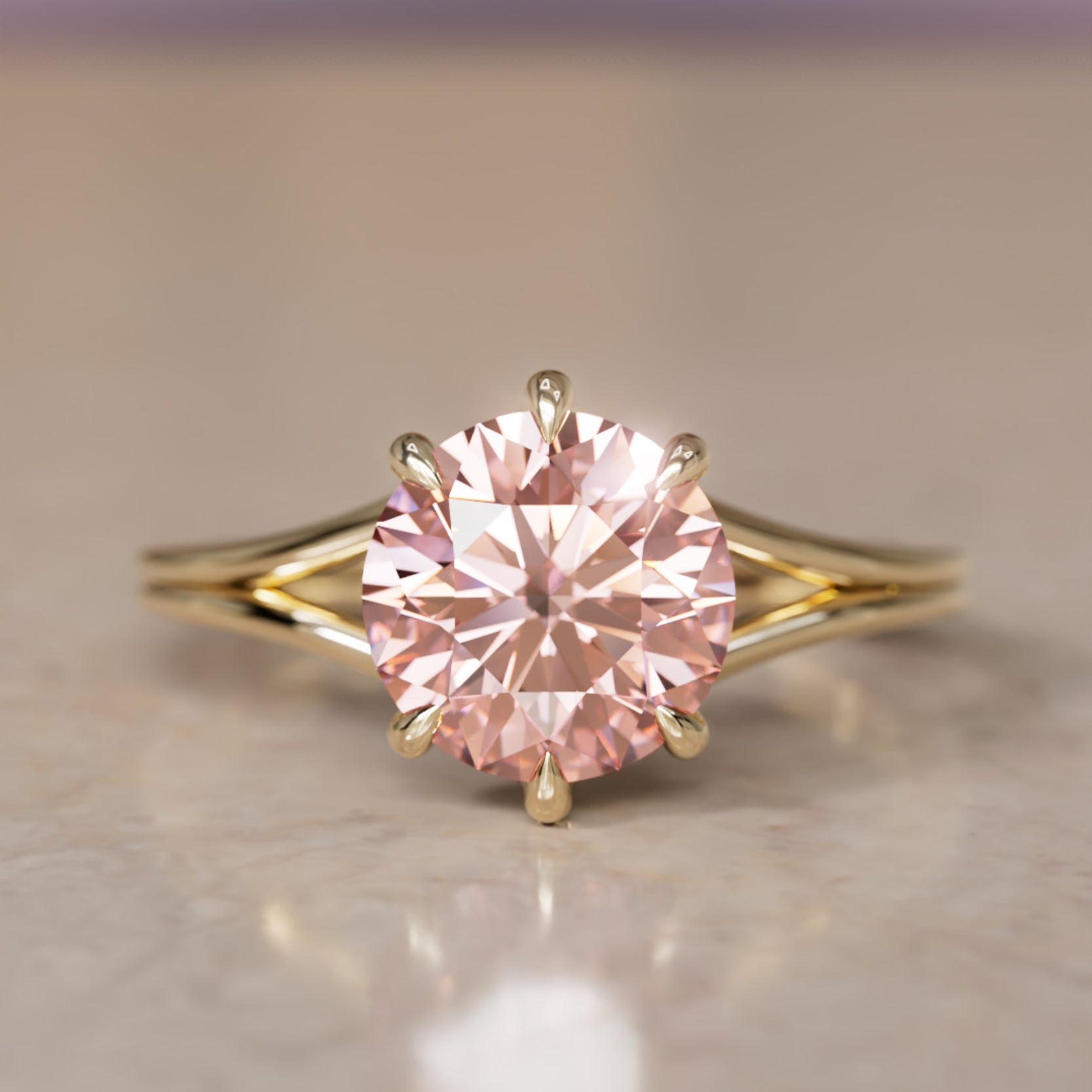 Mira Pink Round Lab Diamond Modern Unique Split Shank Engagement Ring