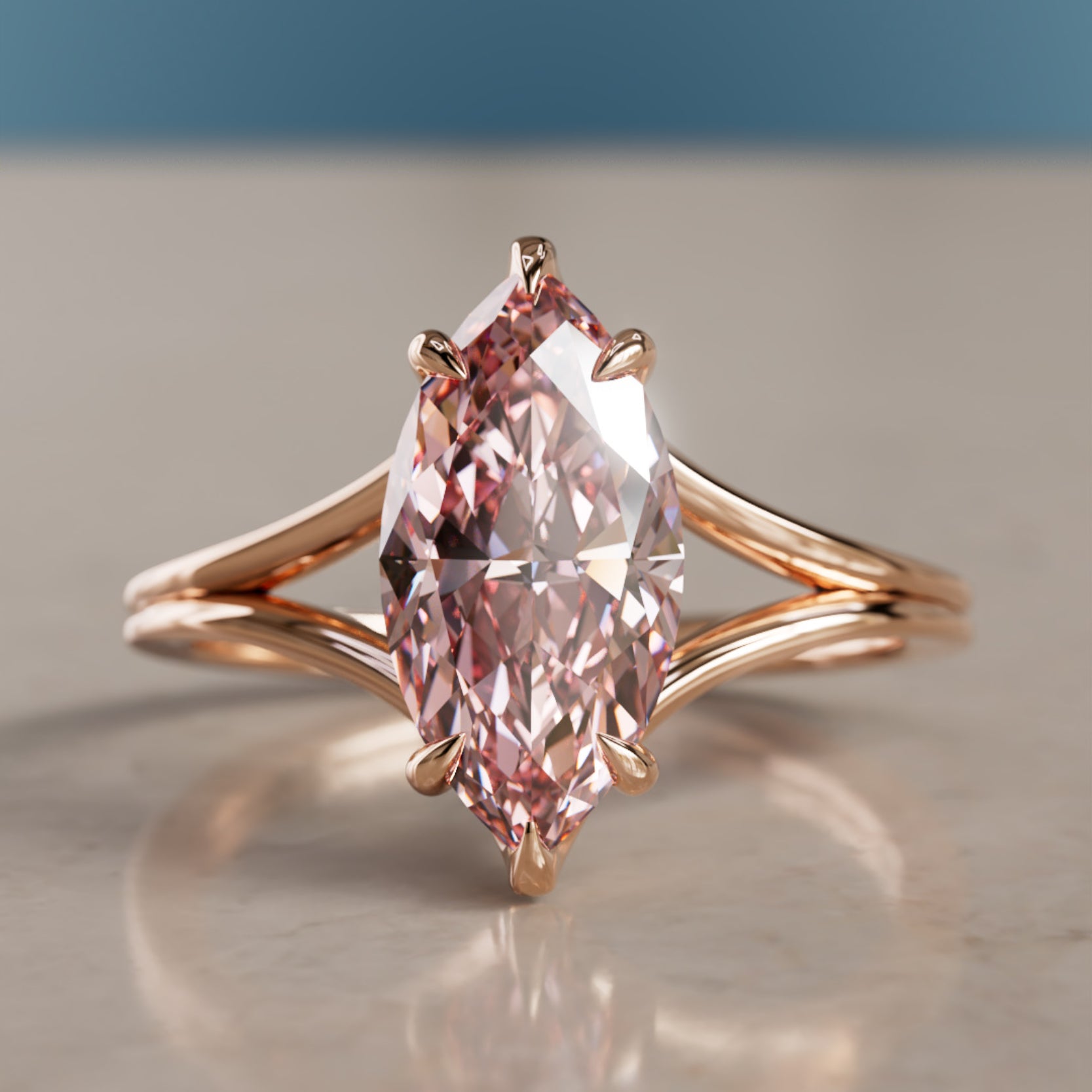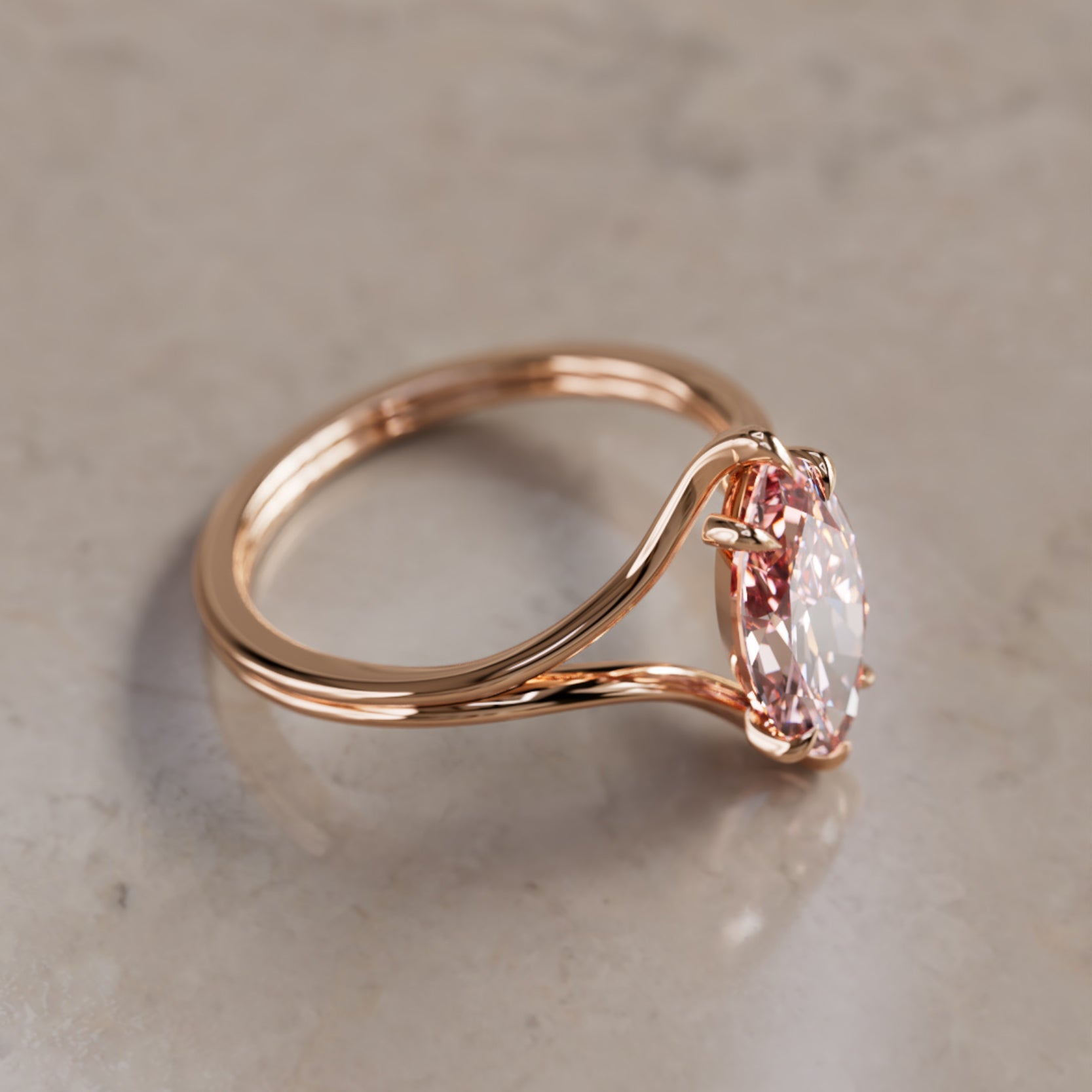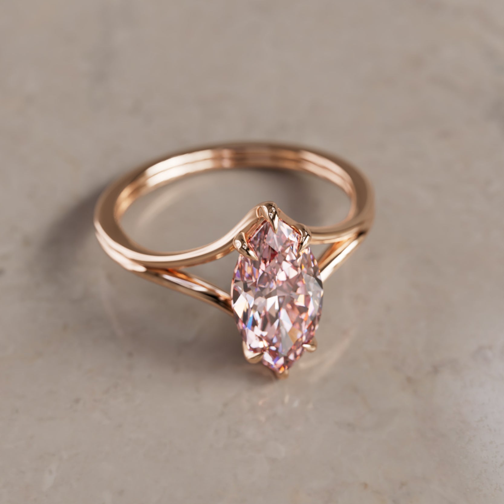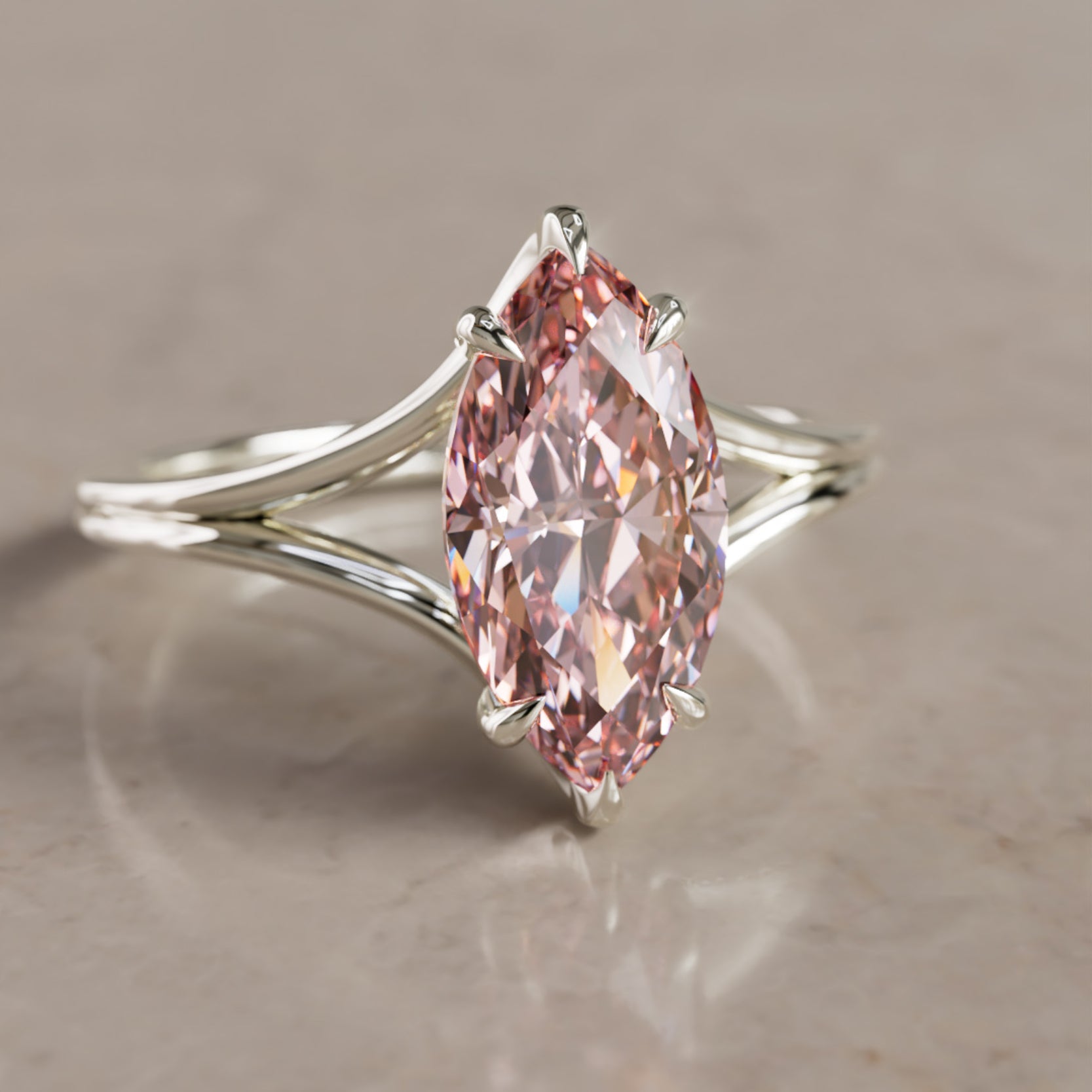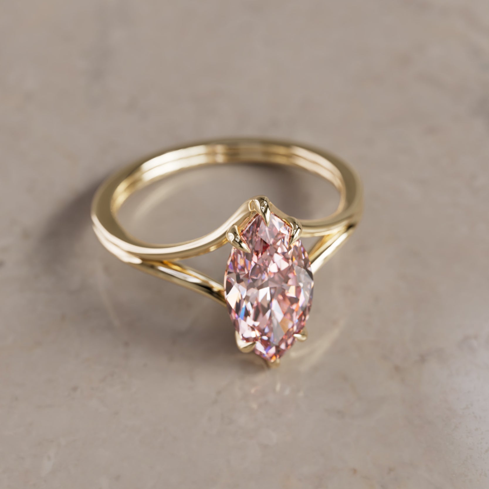 Nova Marquise Pink Lab Diamond Modern Unique Split Shank Engagement Ring