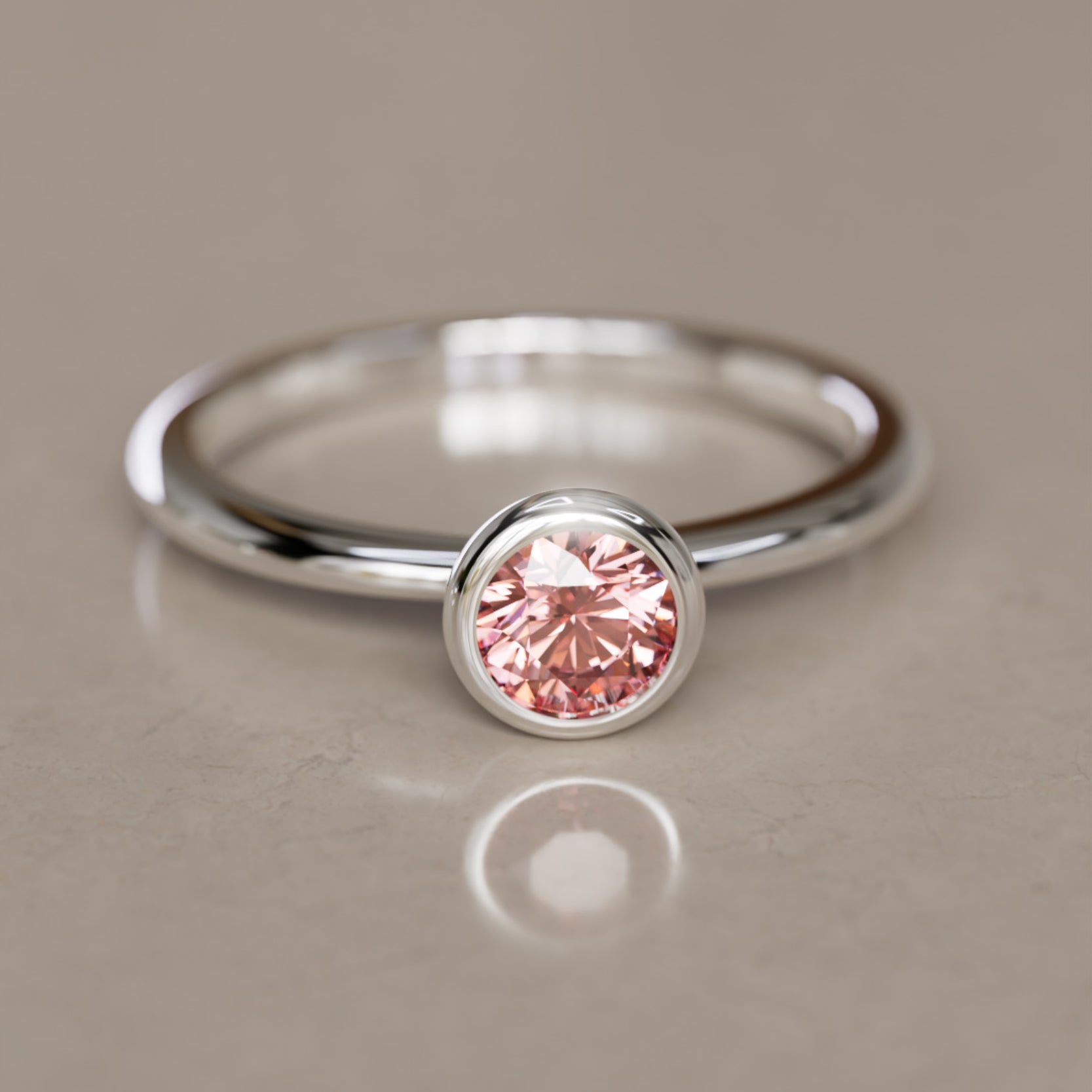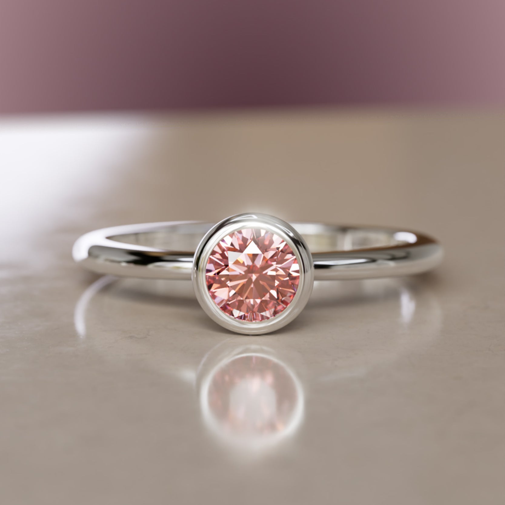 Cosette Dainty Pink Lab Grown Diamond Modern Unique Bezel Engagement Ring