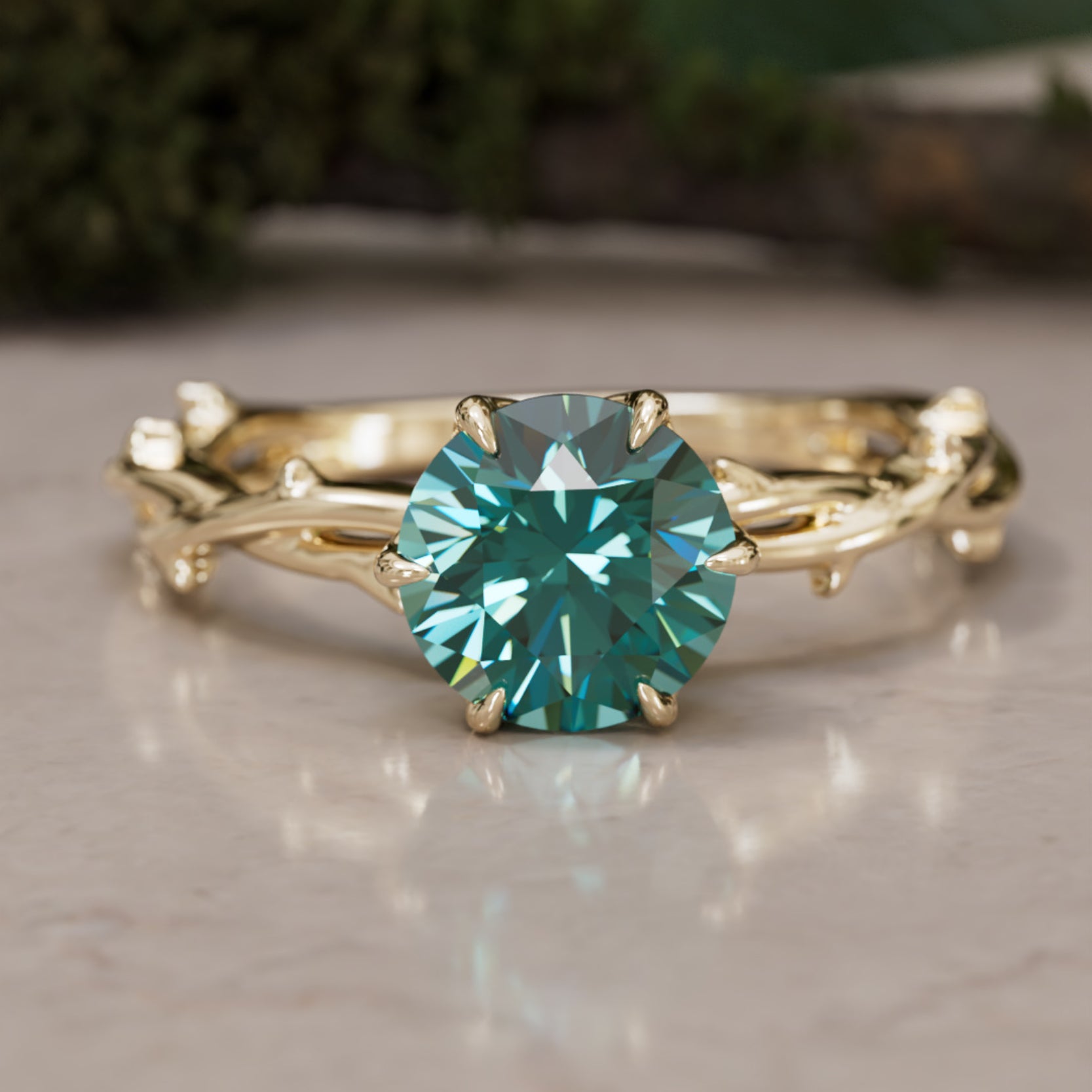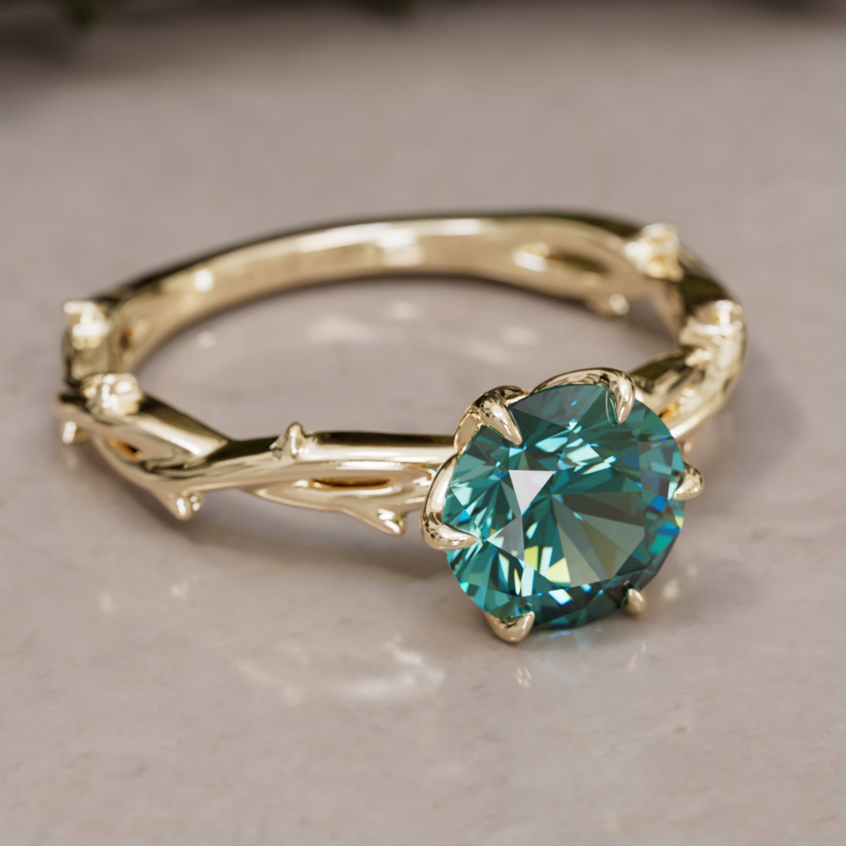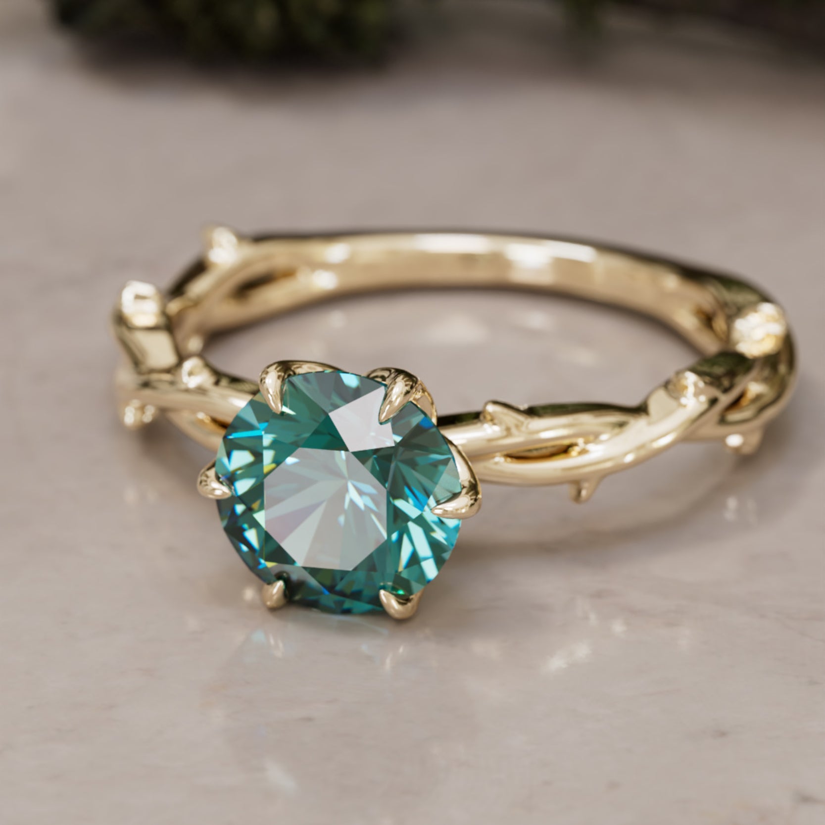 Ferelith Round Teal Sapphire Fantasy Nature Branch Engagement Ring