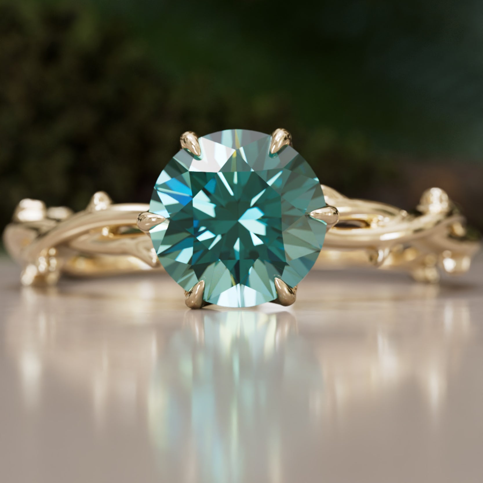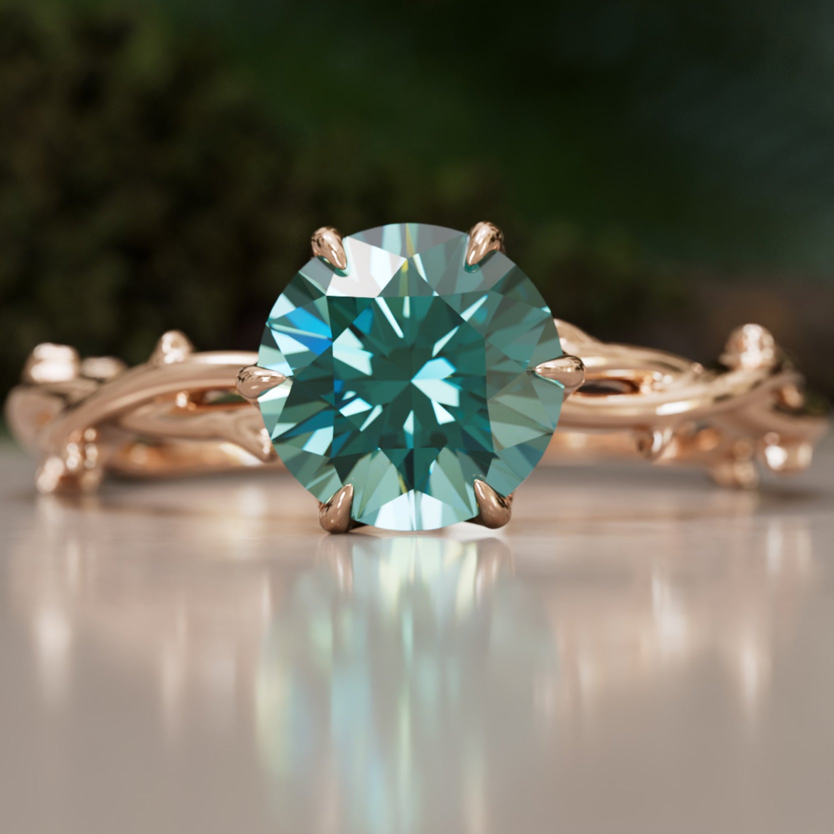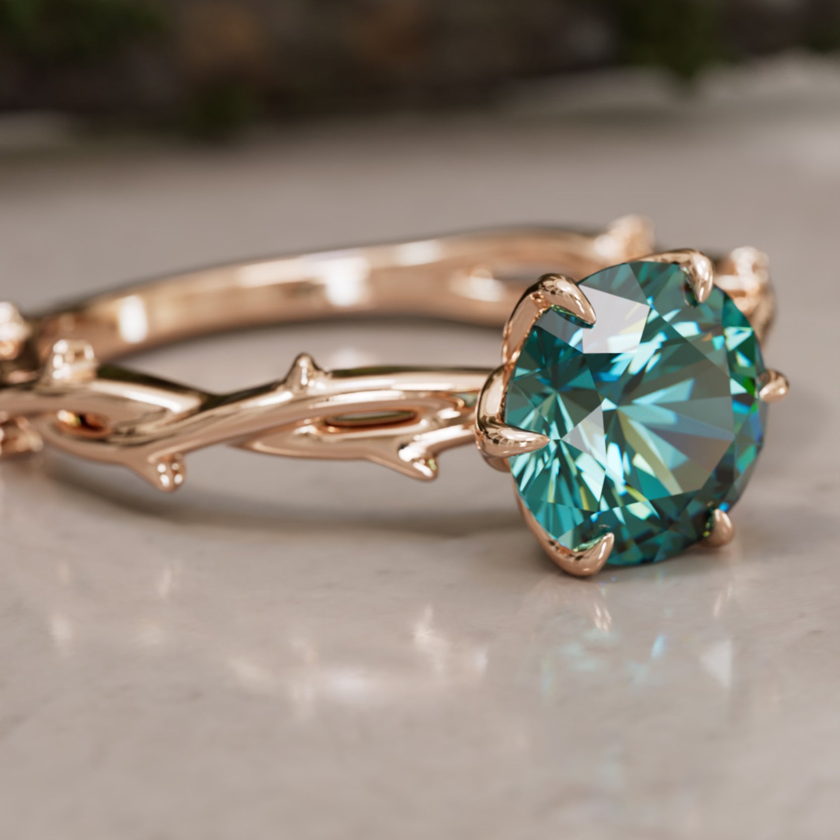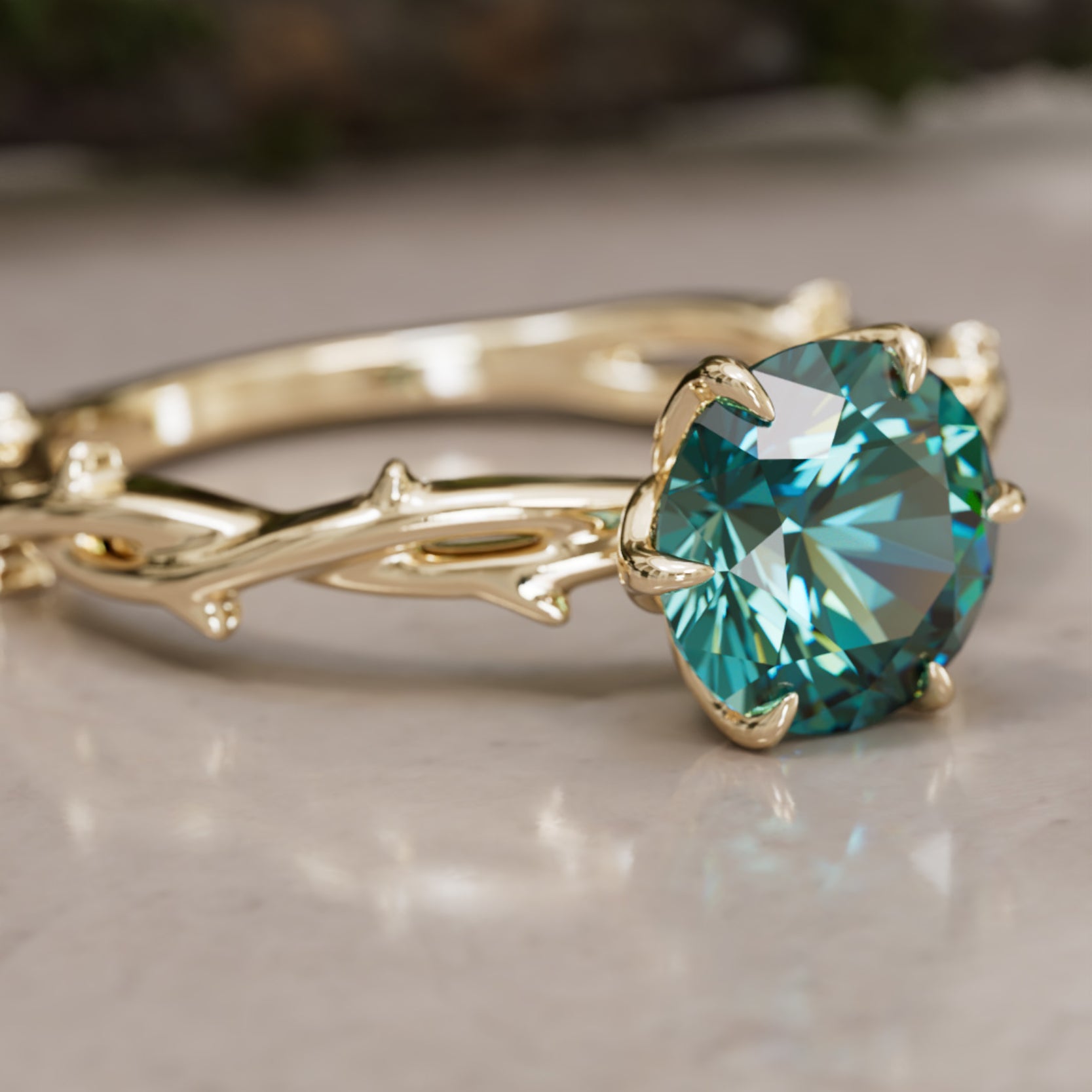 Ferelith Round Teal Sapphire Fantasy Nature Branch Engagement Ring