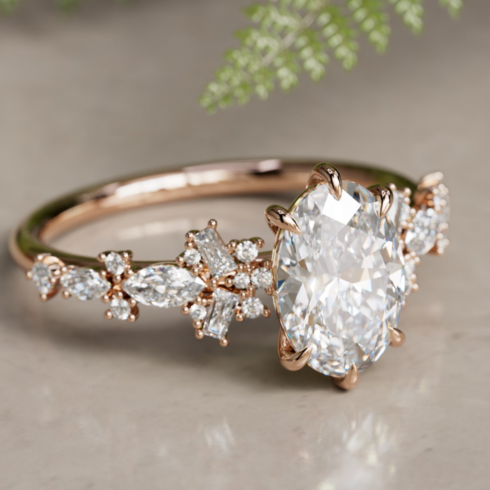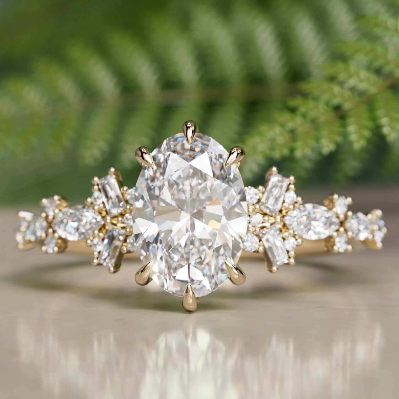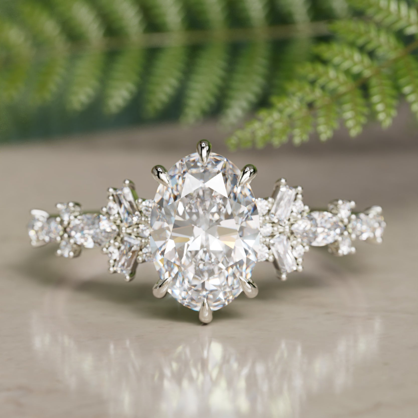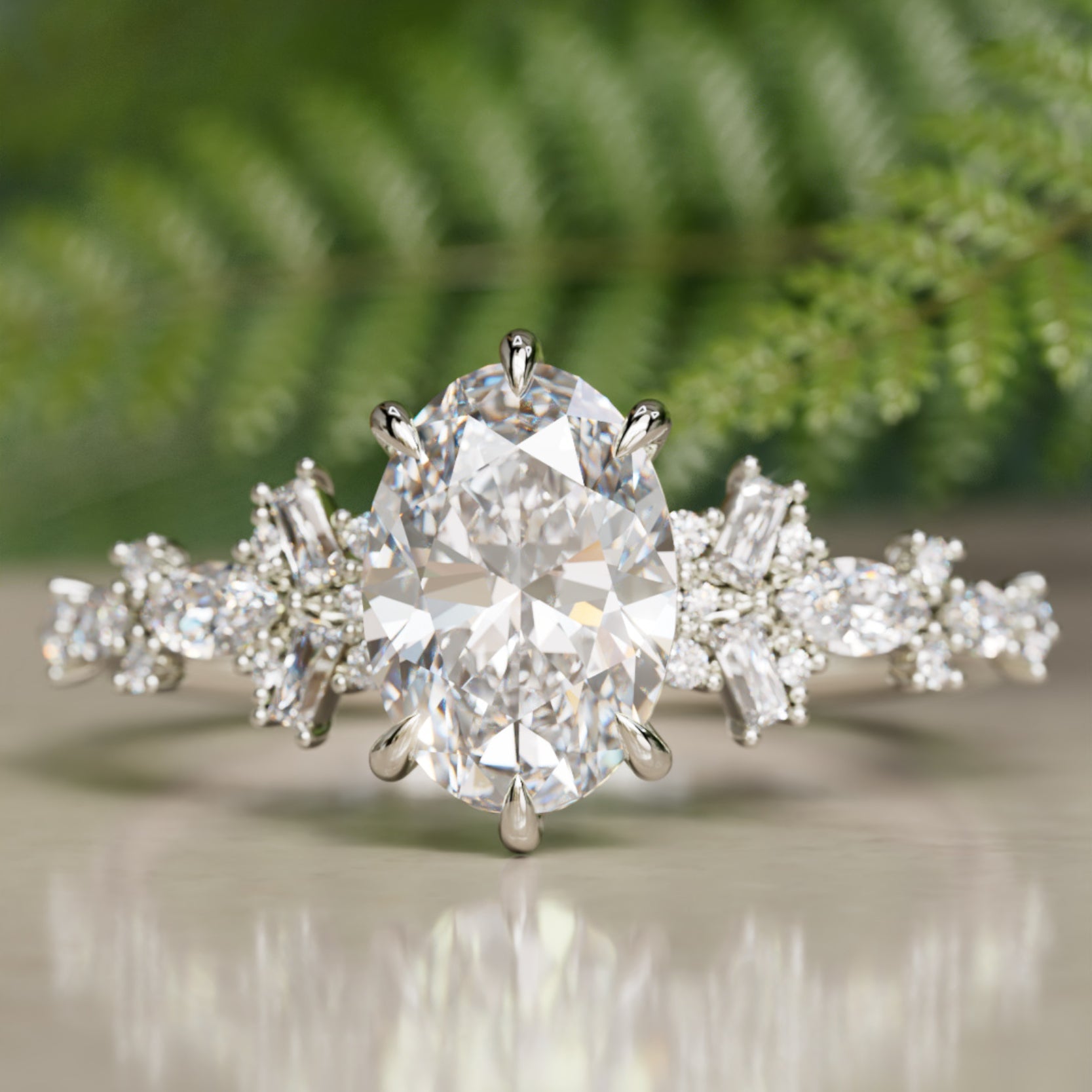 Philomena Oval Lab Diamond Unique Engagement Ring Nature Inspired