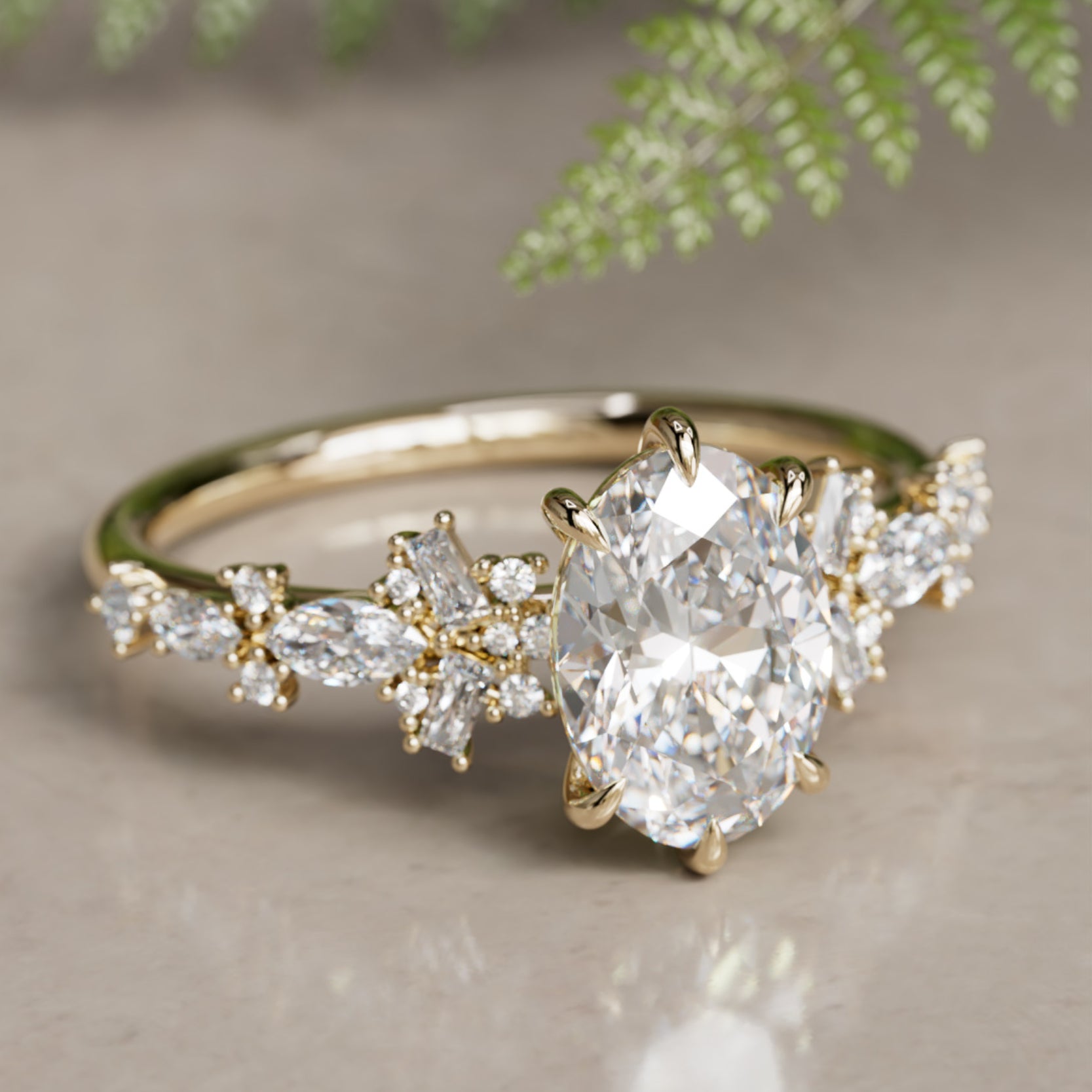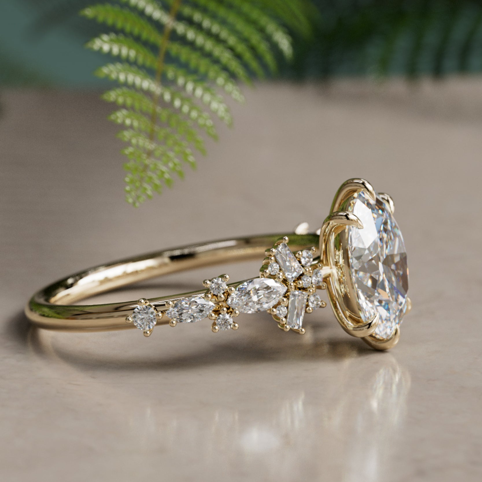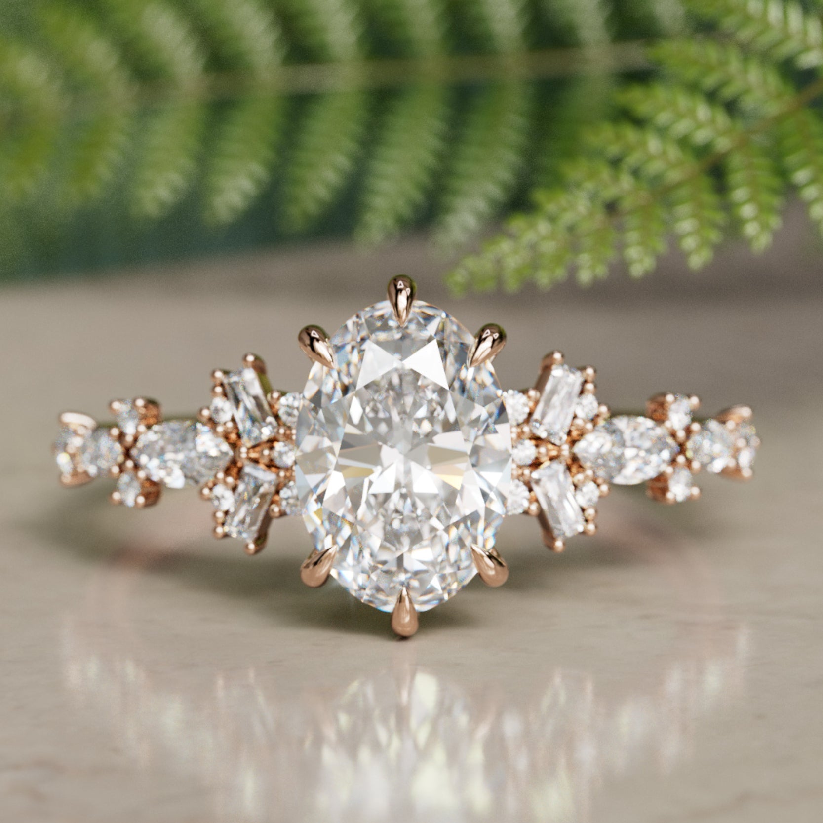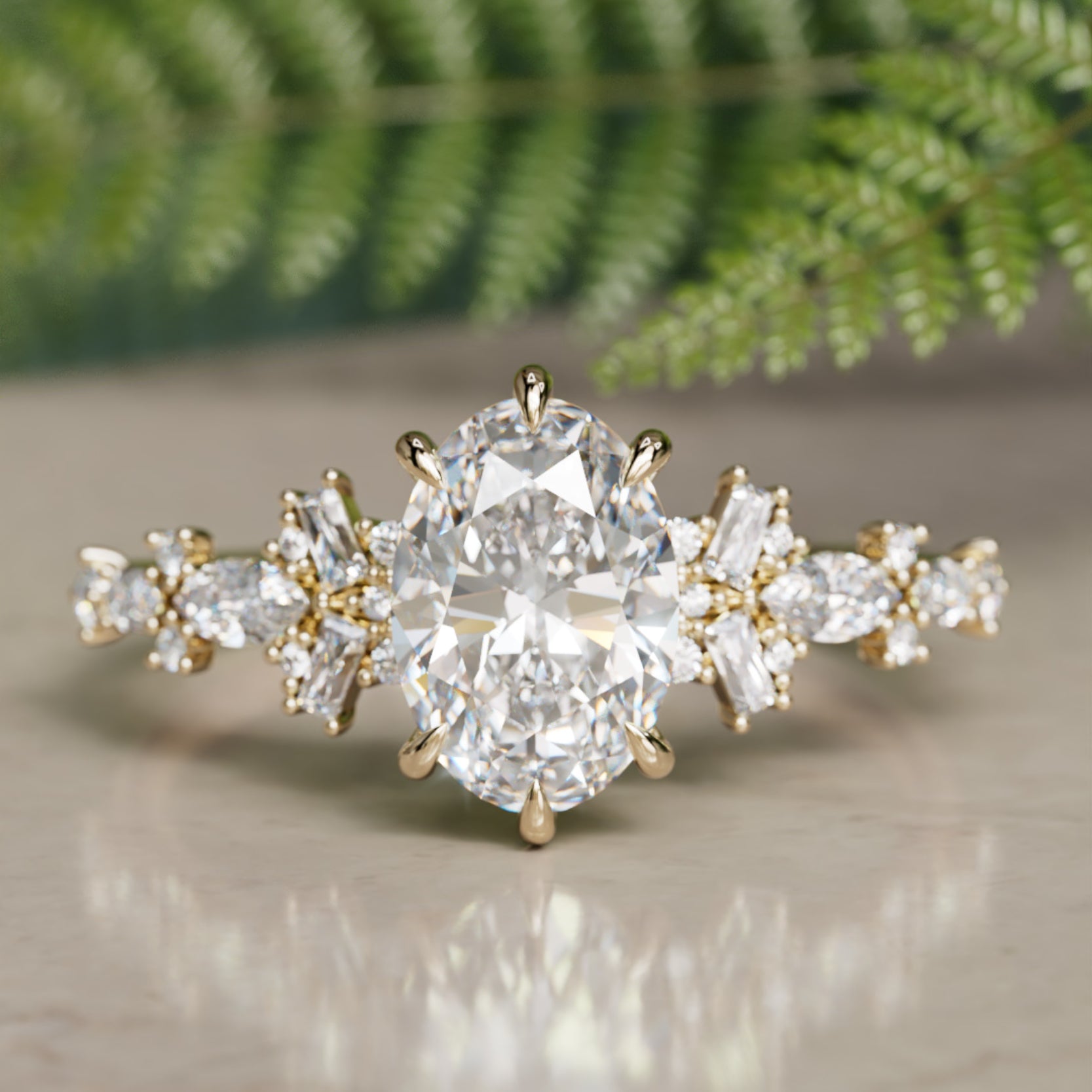 Philomena Oval Lab Diamond Unique Engagement Ring Nature Inspired