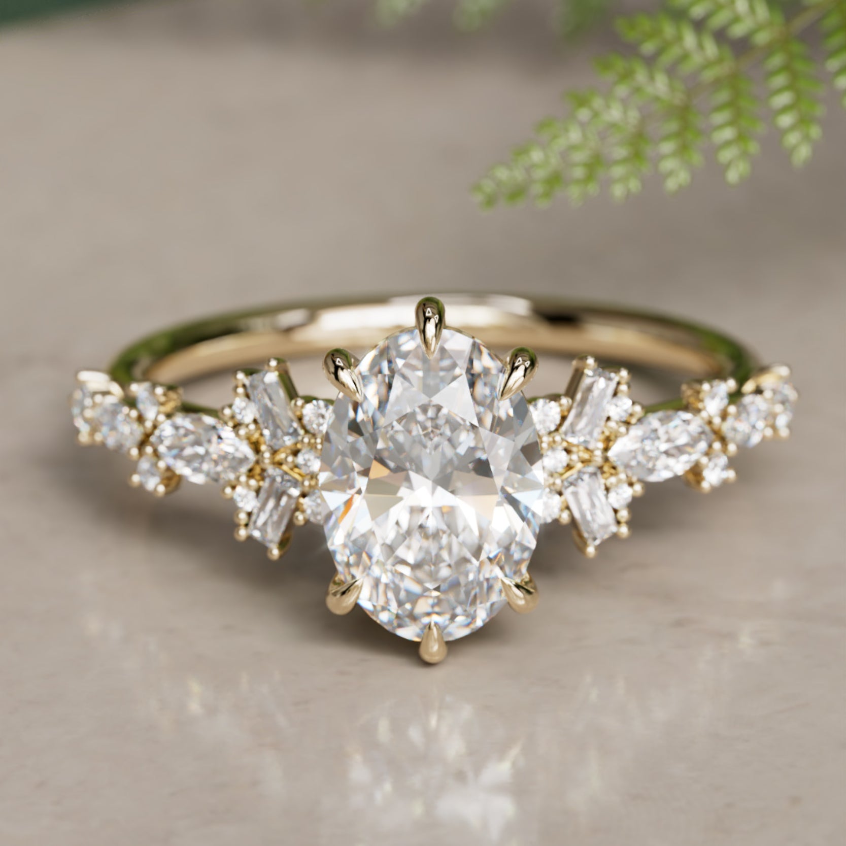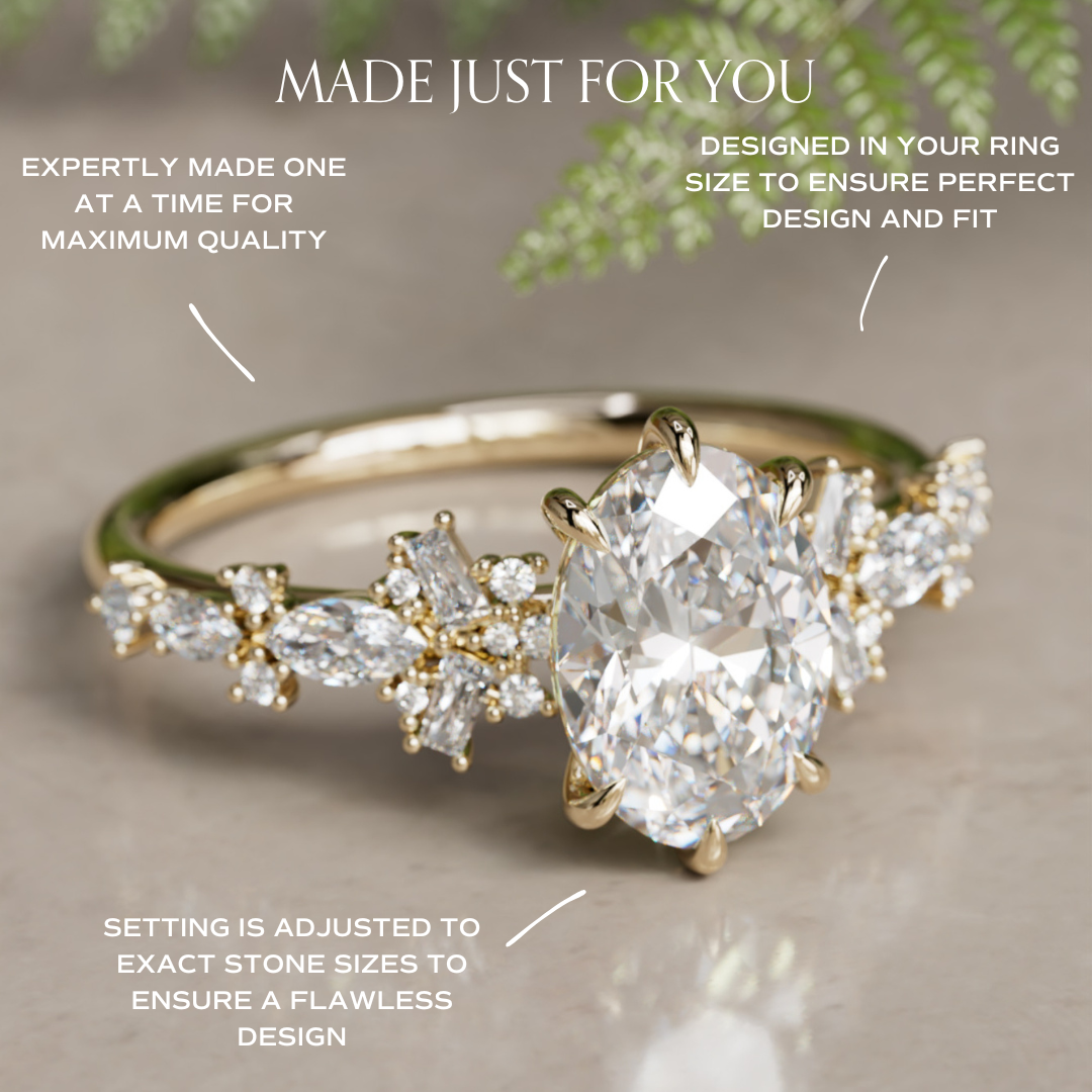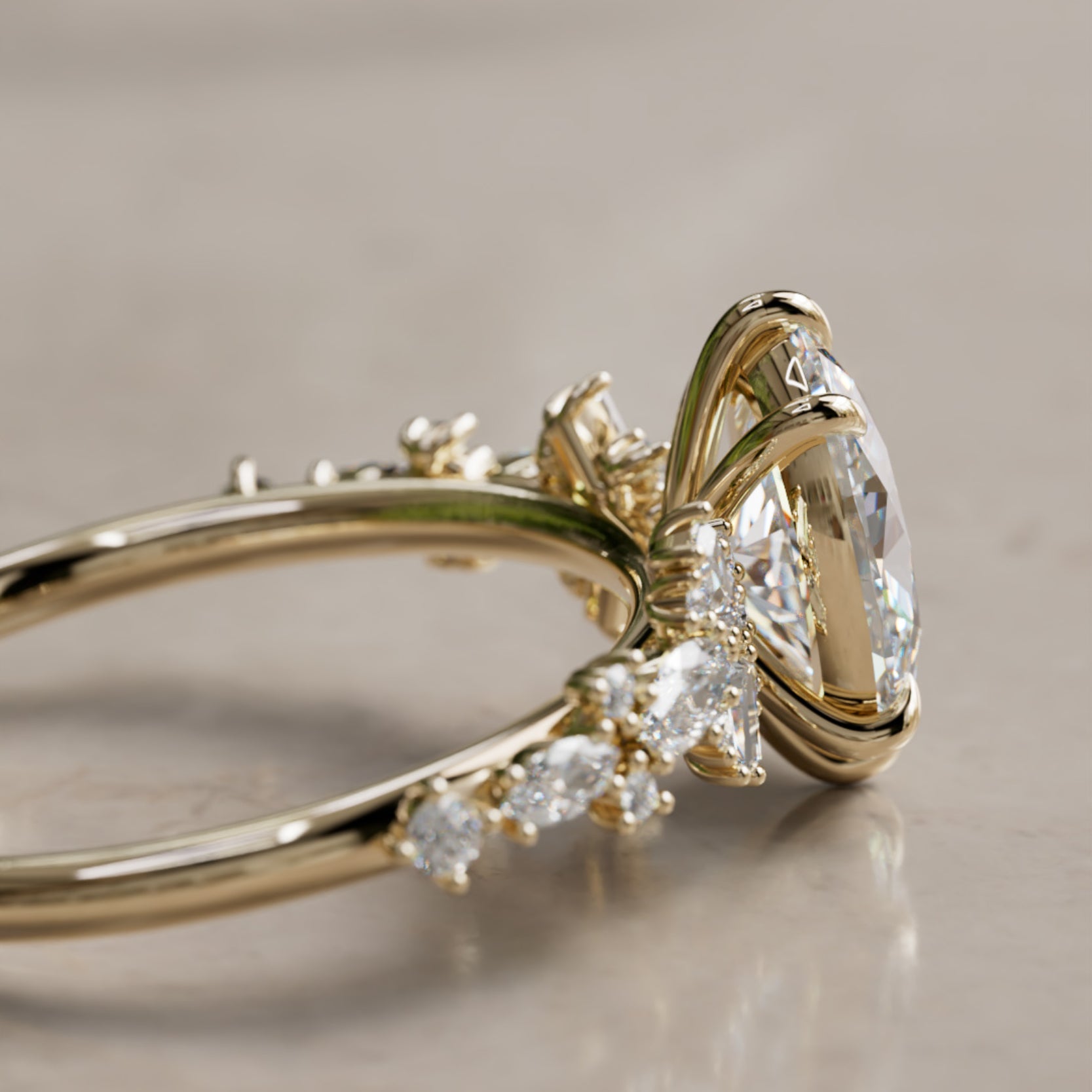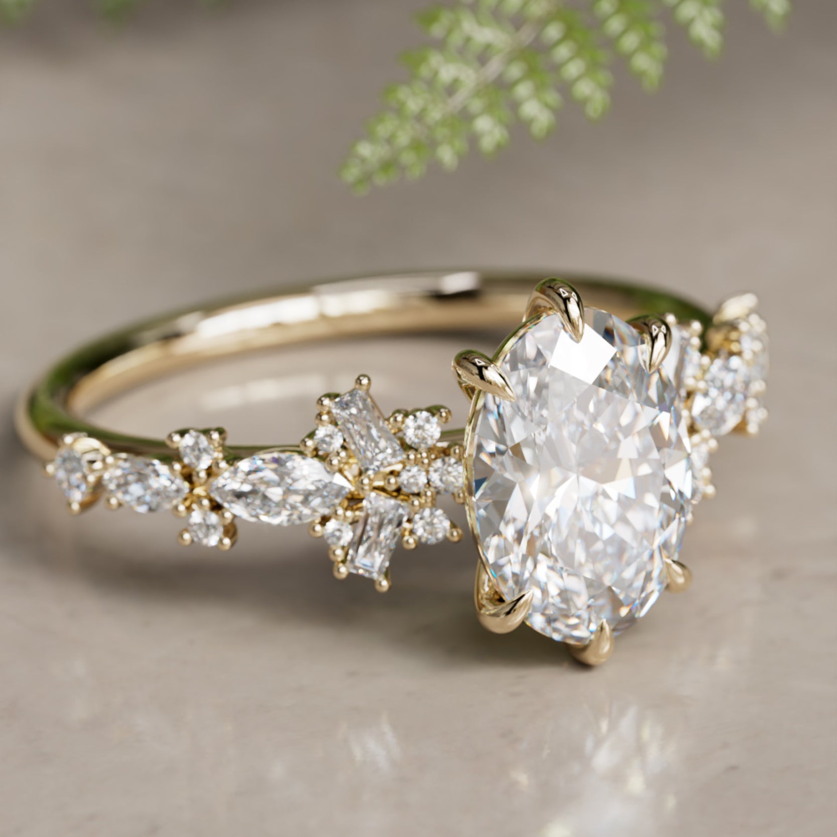 Philomena Oval Lab Diamond Unique Engagement Ring Nature Inspired