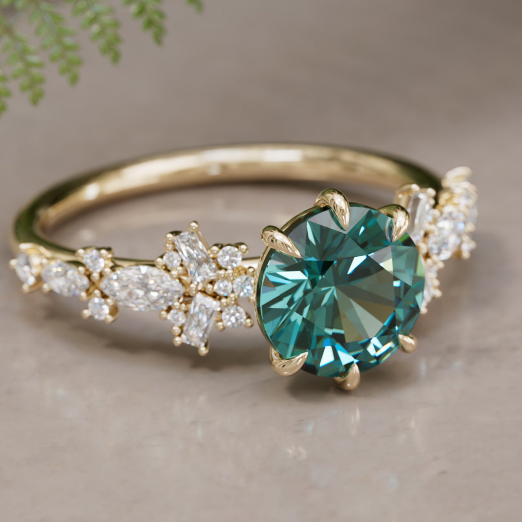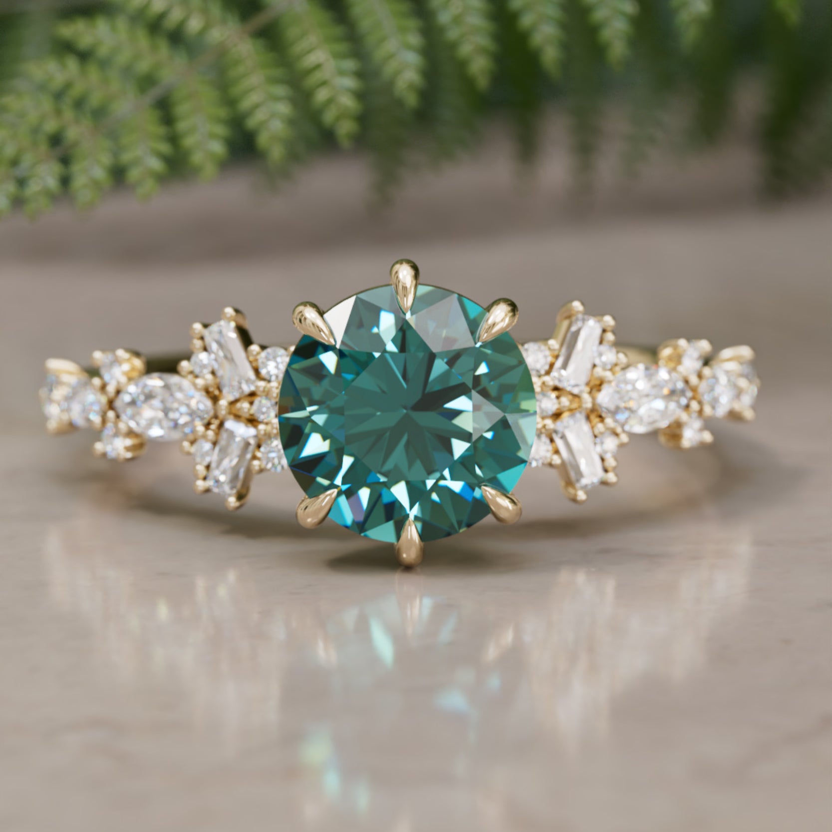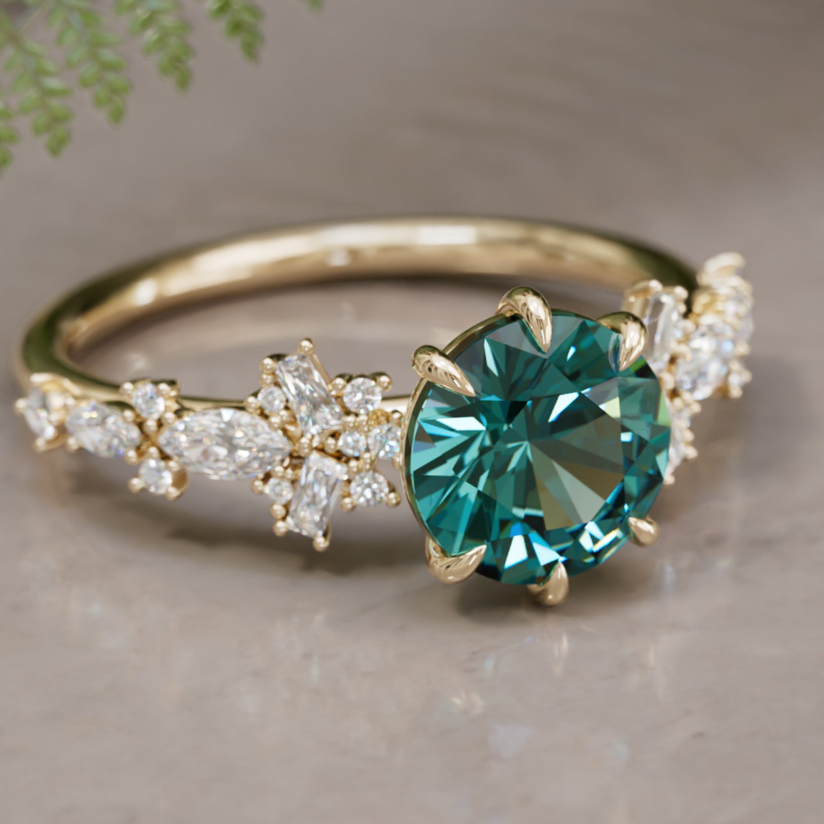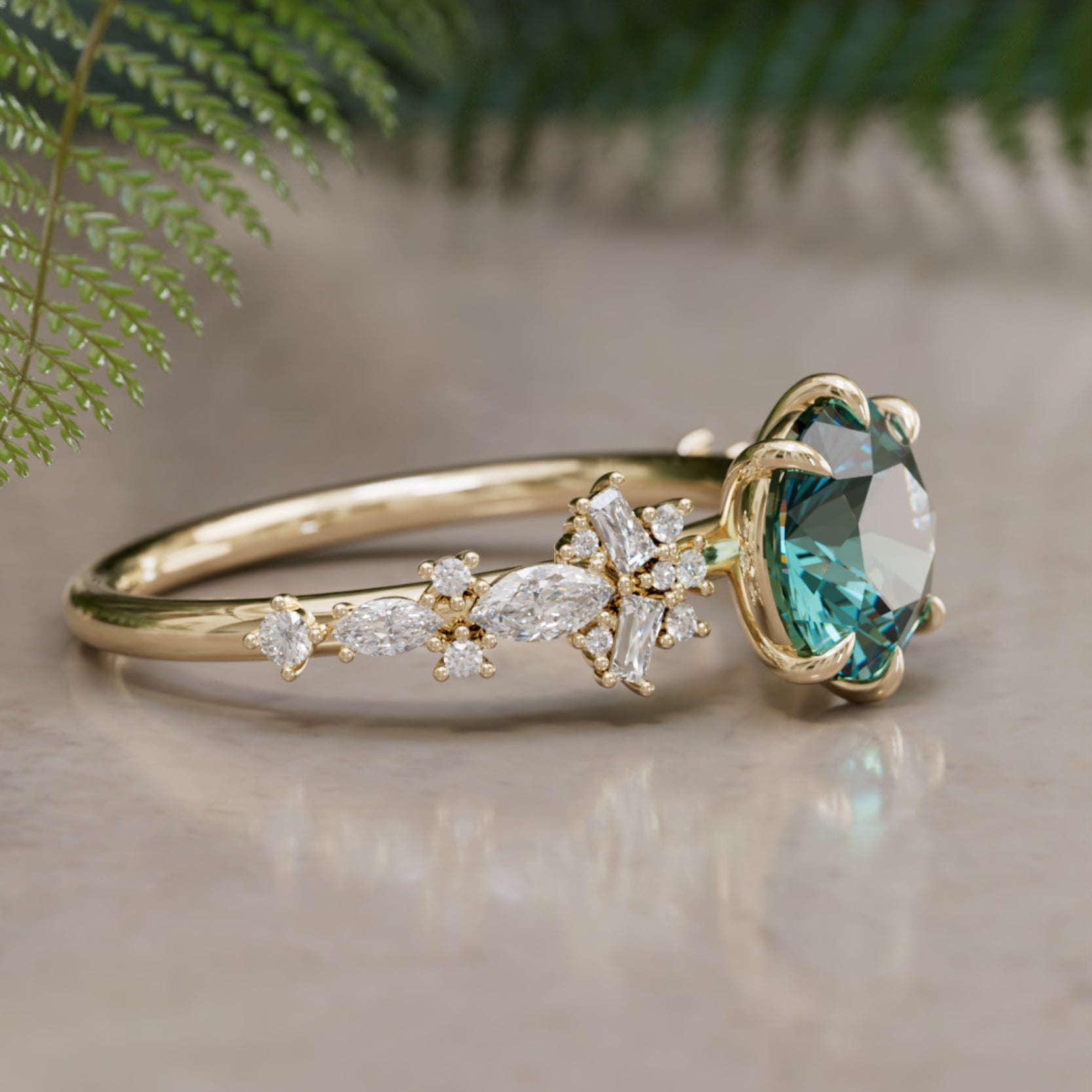 Philomena Round Teal Sapphire Unique Engagement Ring Nature Inspired