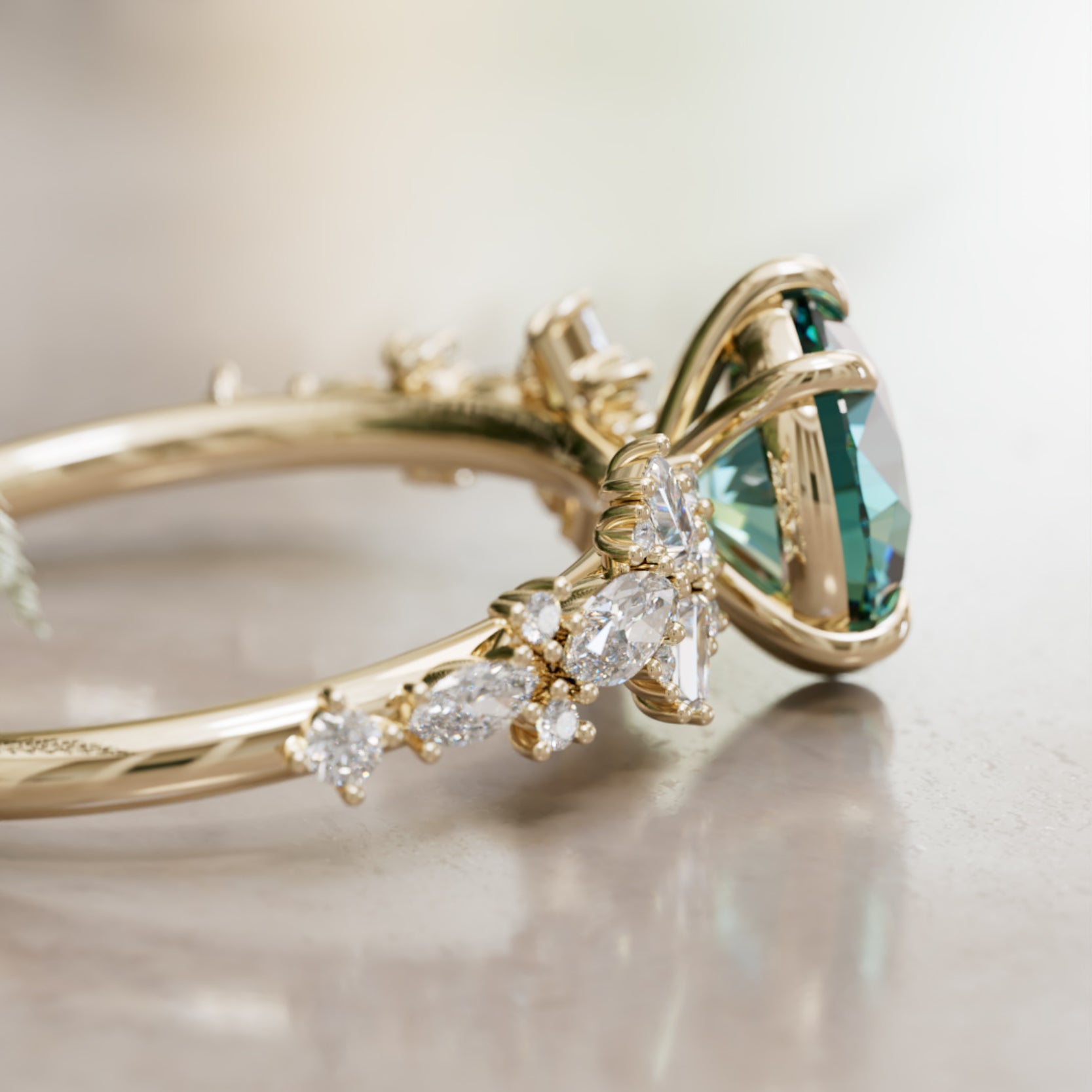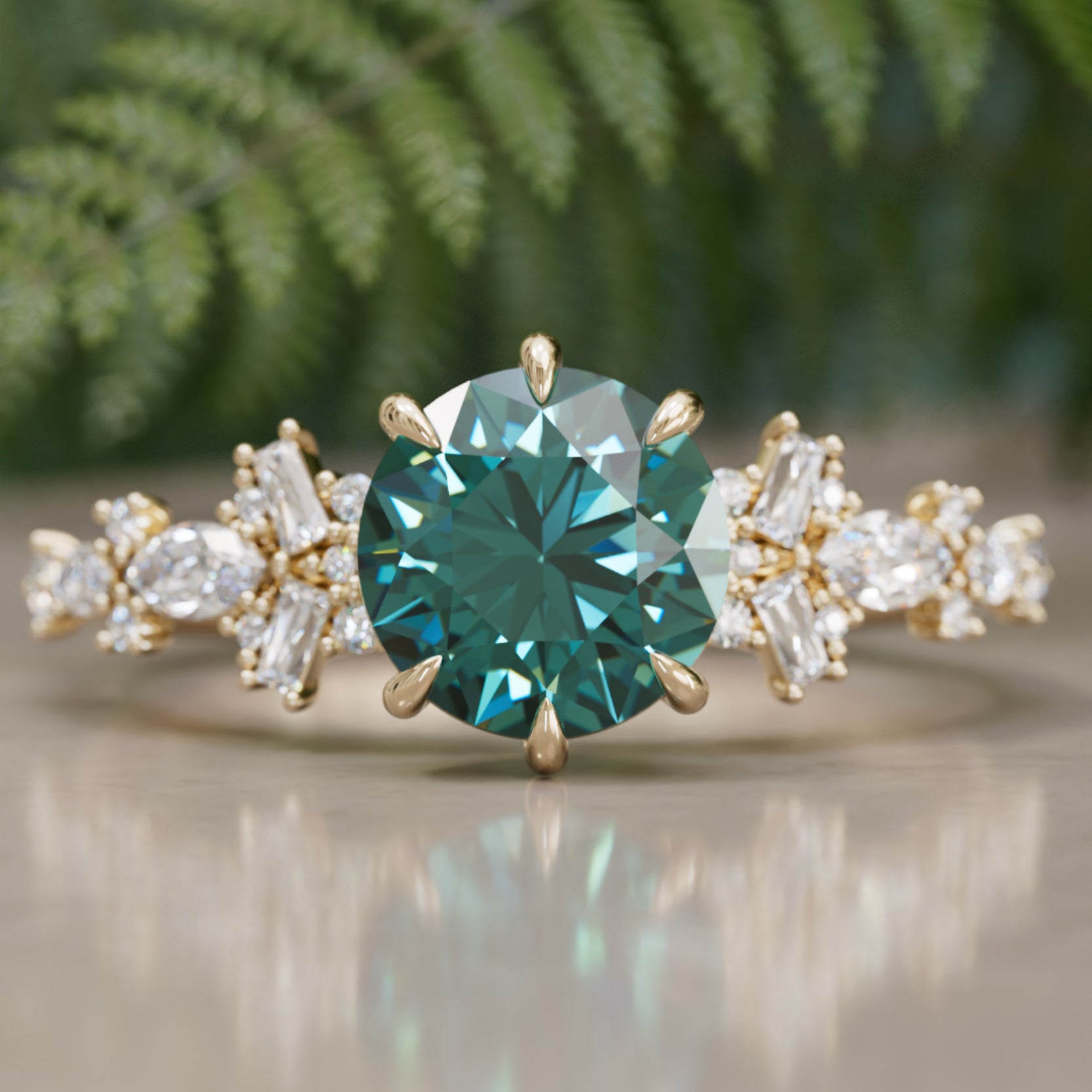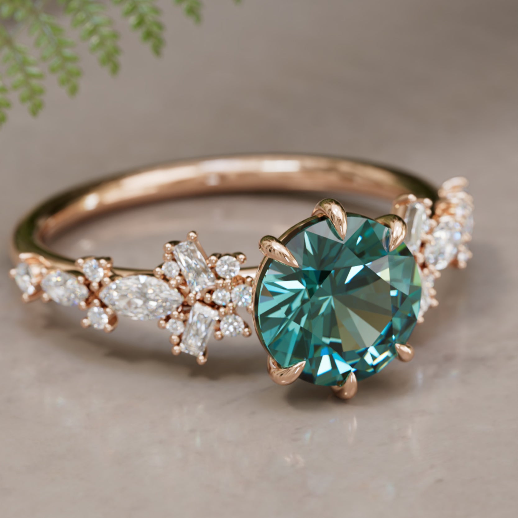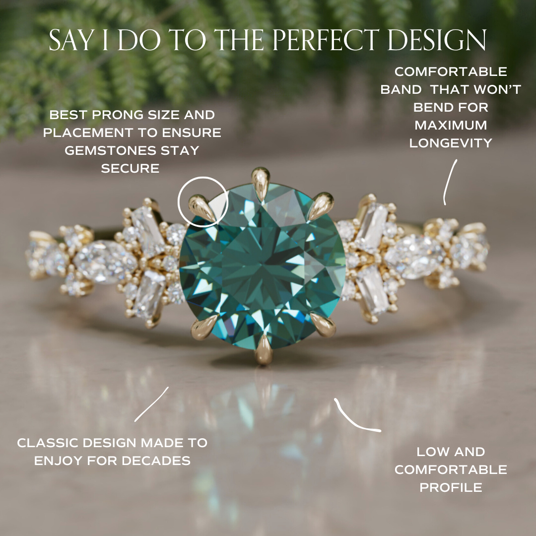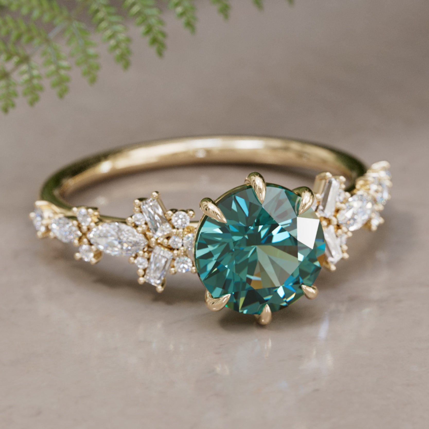 Philomena Round Teal Sapphire Unique Engagement Ring Nature Inspired