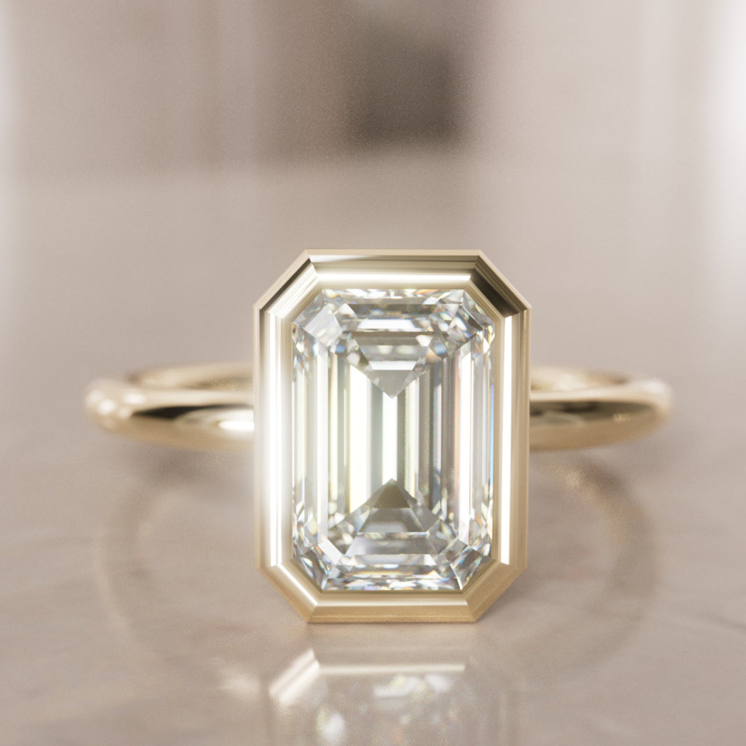 Lexie Emerald Cut Diamond Modern Unique Bezel Engagement Ring (Setting Only)