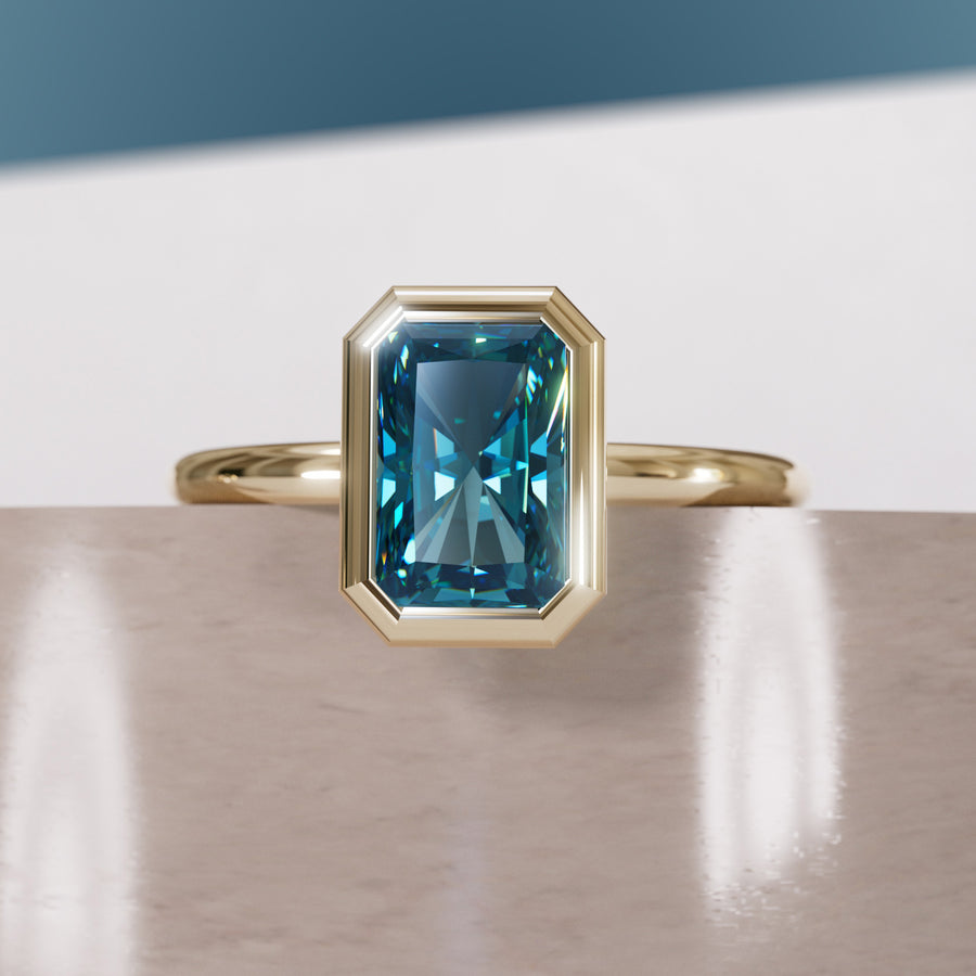 Lexie Radiant Cut Blue Sapphire Modern Unique Engagement Ring Bezel Solitaire (Setting Only)