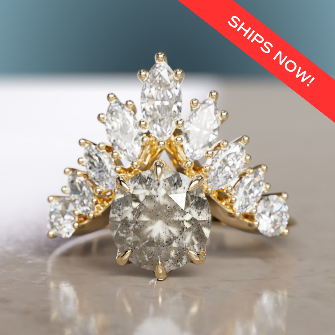 Since all of our engagement rings are bespoke settings we can custom source you a center stone. We work with lab diamonds, salt and pepper diamonds, recycled diamonds and sapphires.