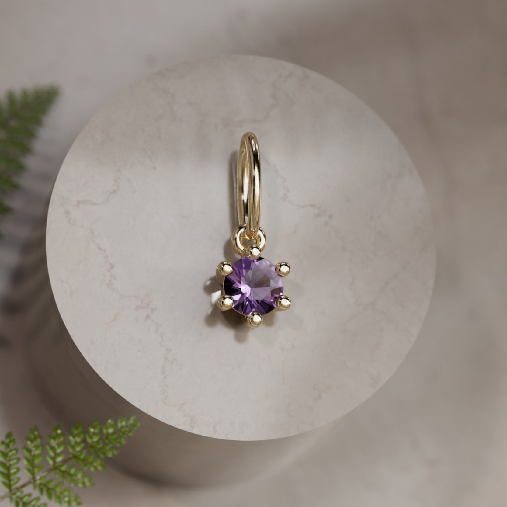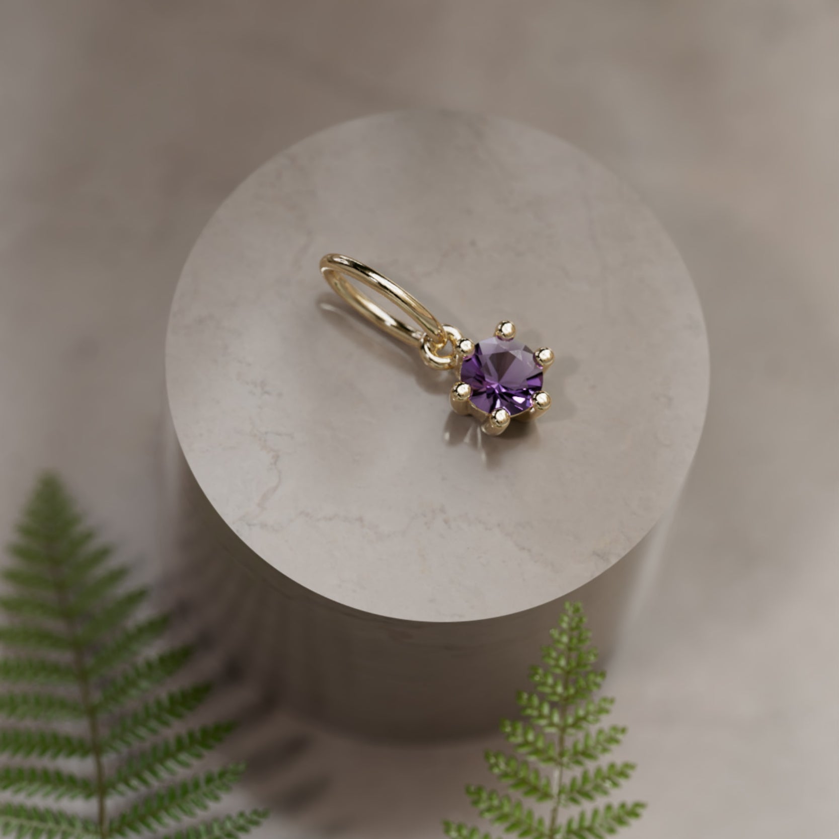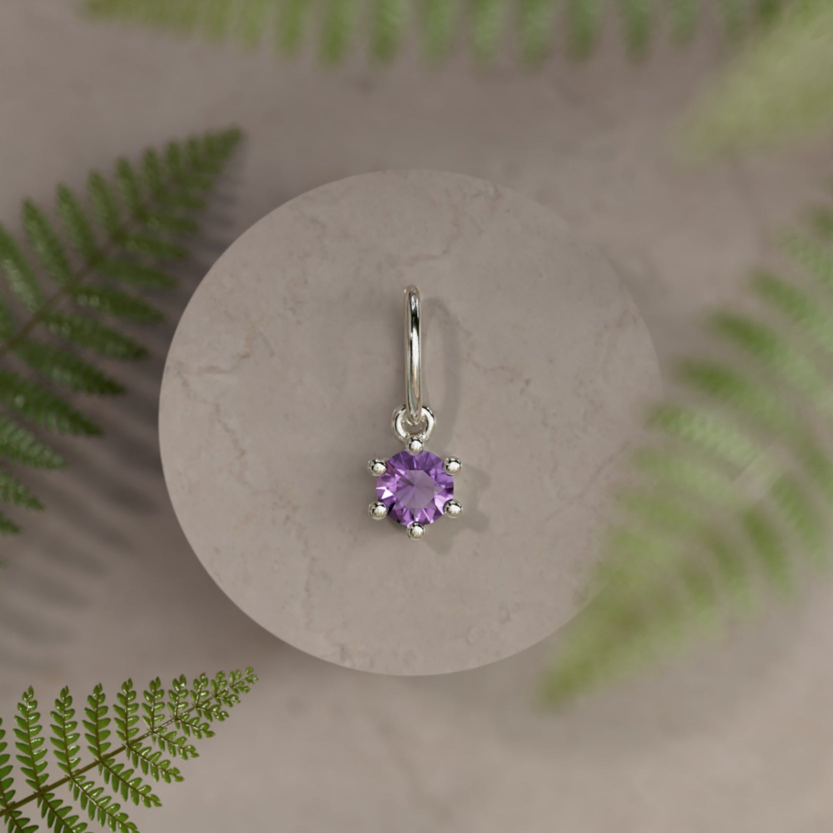 Představujeme kolekci kamenů narození. Únorovým kamenem narození je sladký Ametyst. Ametyst představuje hluboká láska, štěstí, pokora, upřímnost a bohatství. Drahokamy jsou eticky získávány.