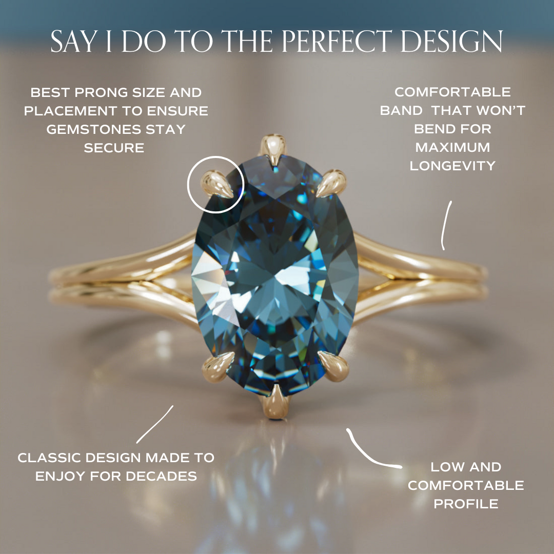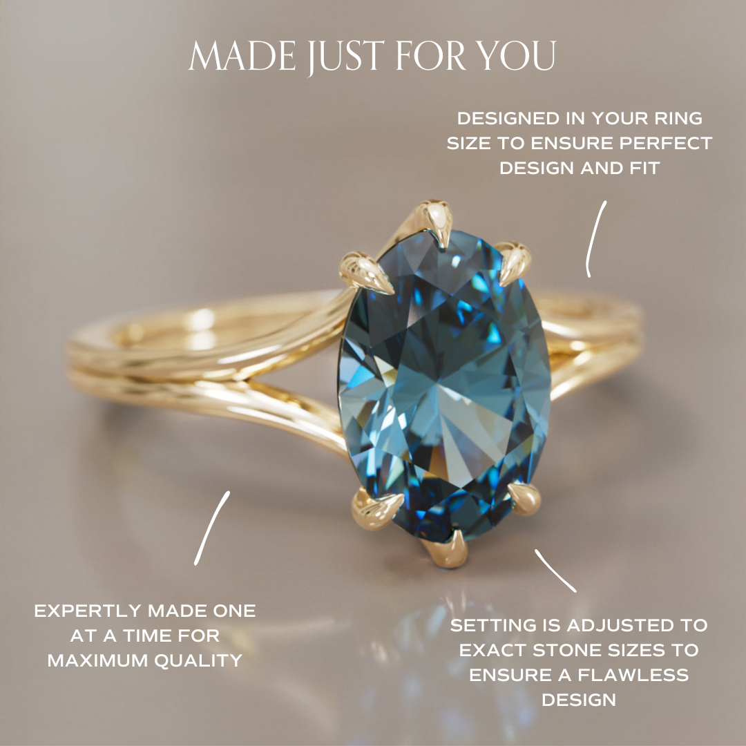 Esra Oval Blå Safir Moderne Unik Delt Skaft Forlovelsesring