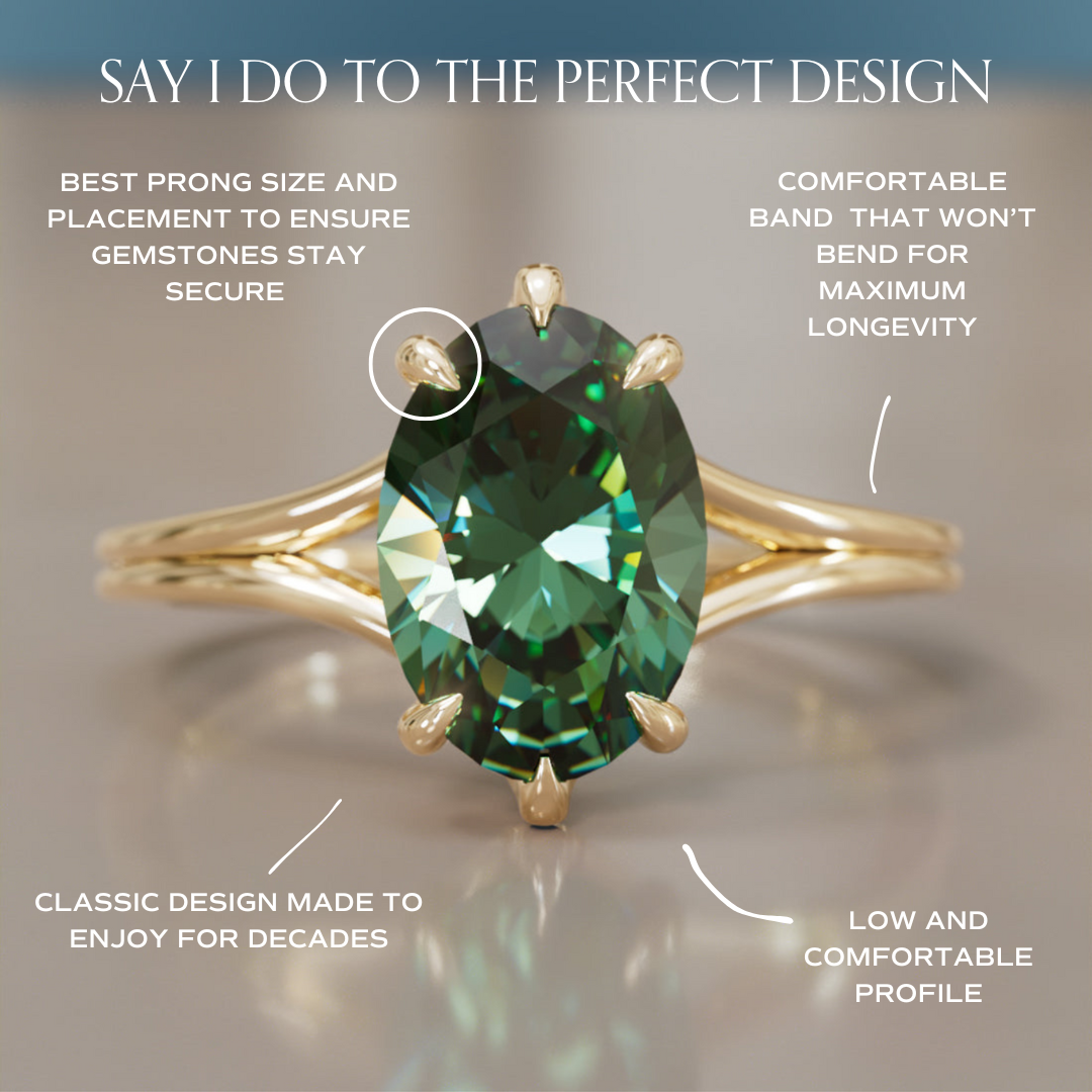 Esra Oval Grøn Safir Moderne Unik Delt Skaft Forlovelsesring