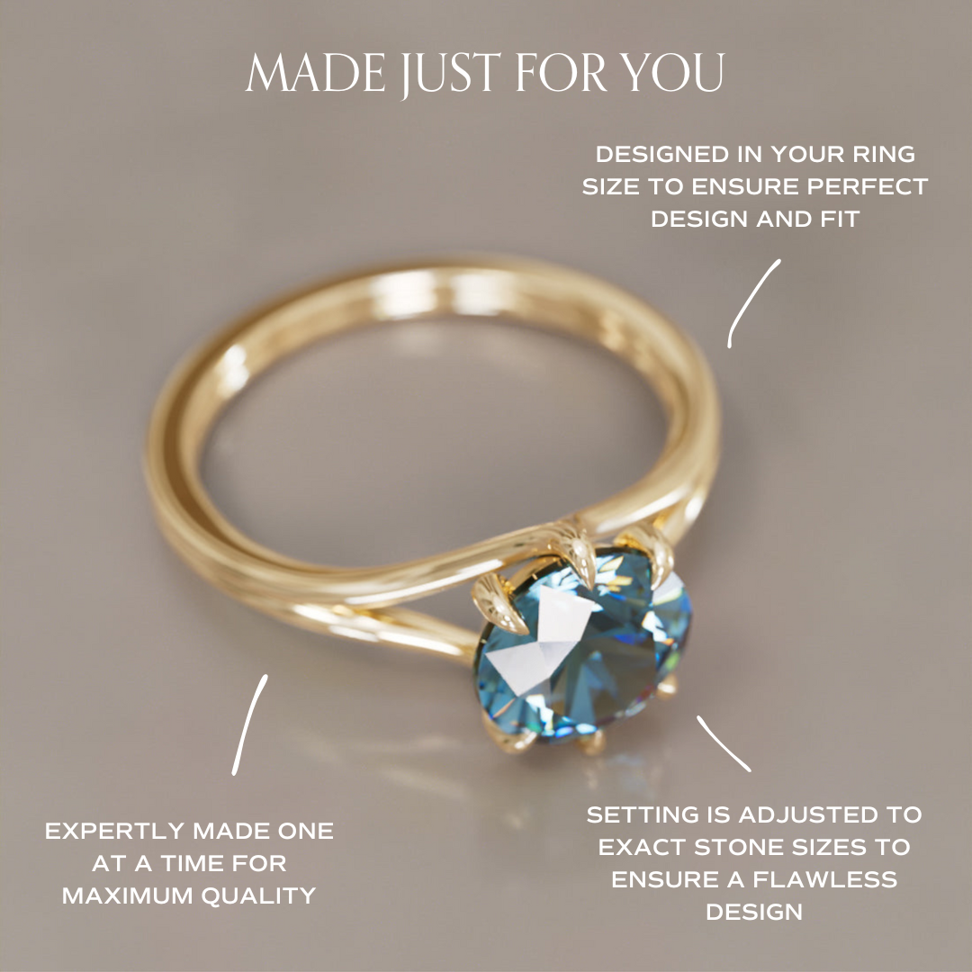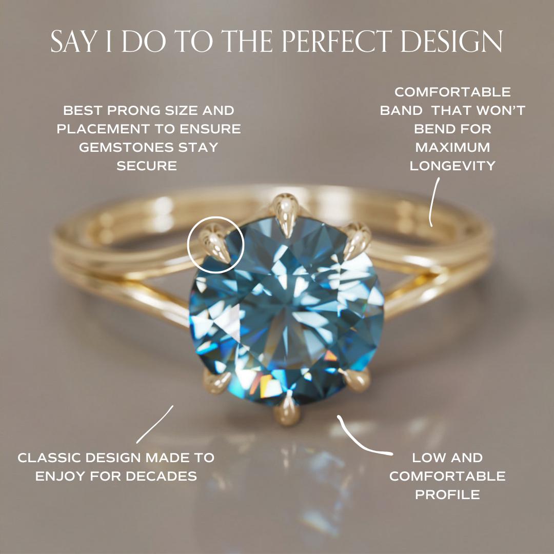 Mira Rund Blå Safir Moderne Unik Delt Skaft Forlovelsesring