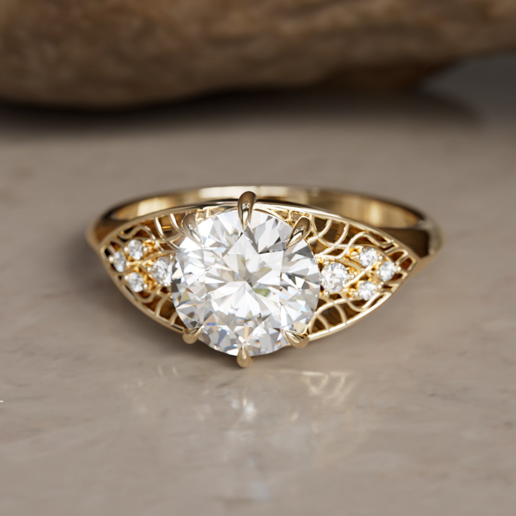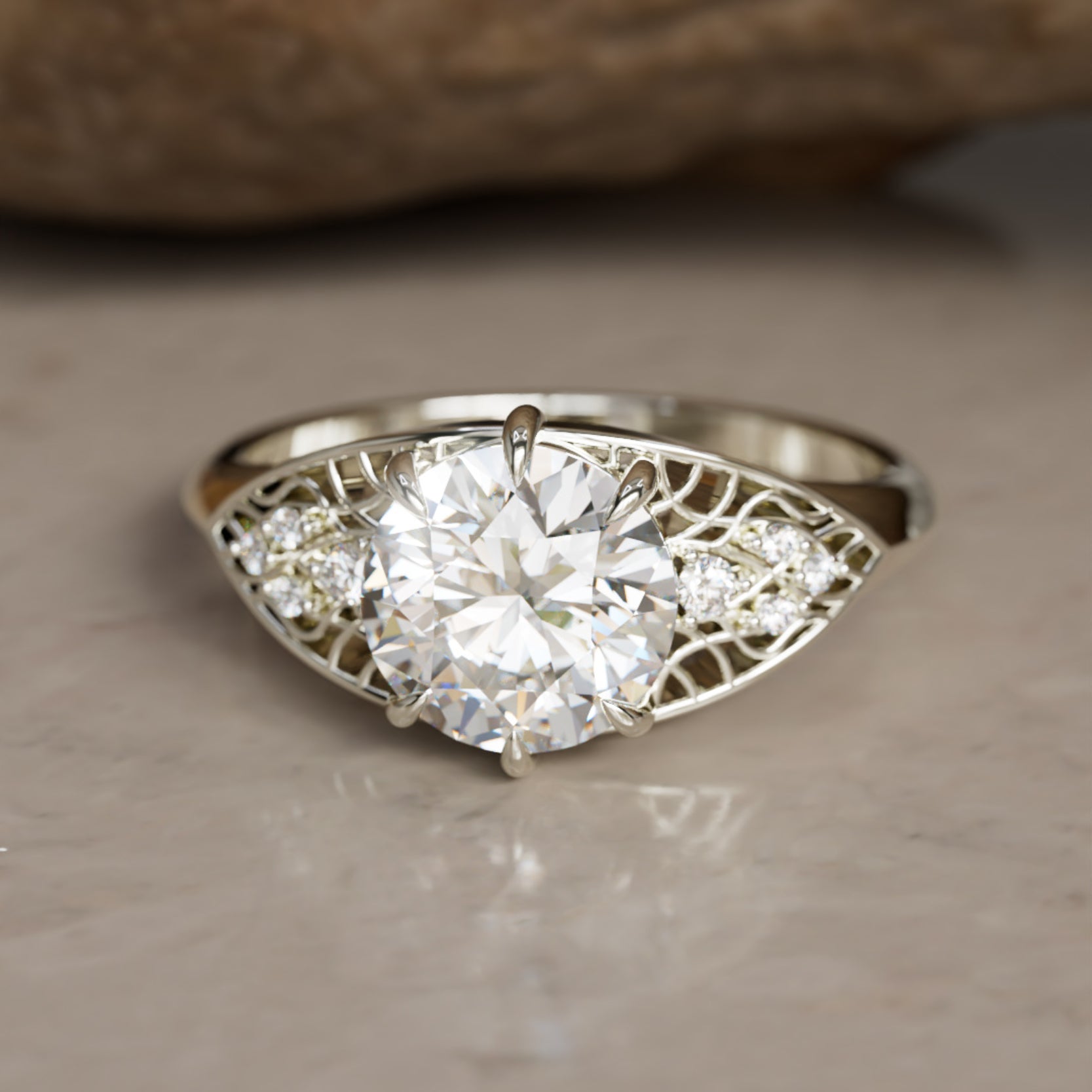 Mionmir Fantasy Rundt Laboratoriediamant Unik Kunst Noveau Forlovelsesring
