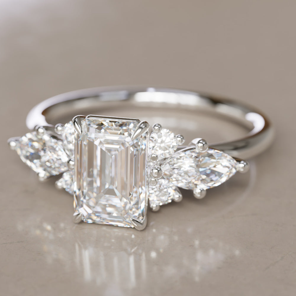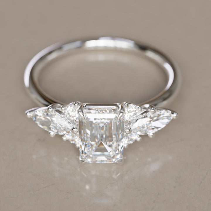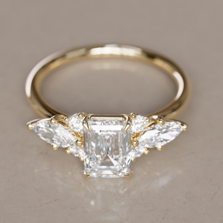 Elodie Smaragdschliff Labor-Diamant Einzigartiger Fantasie-Verlobungsring