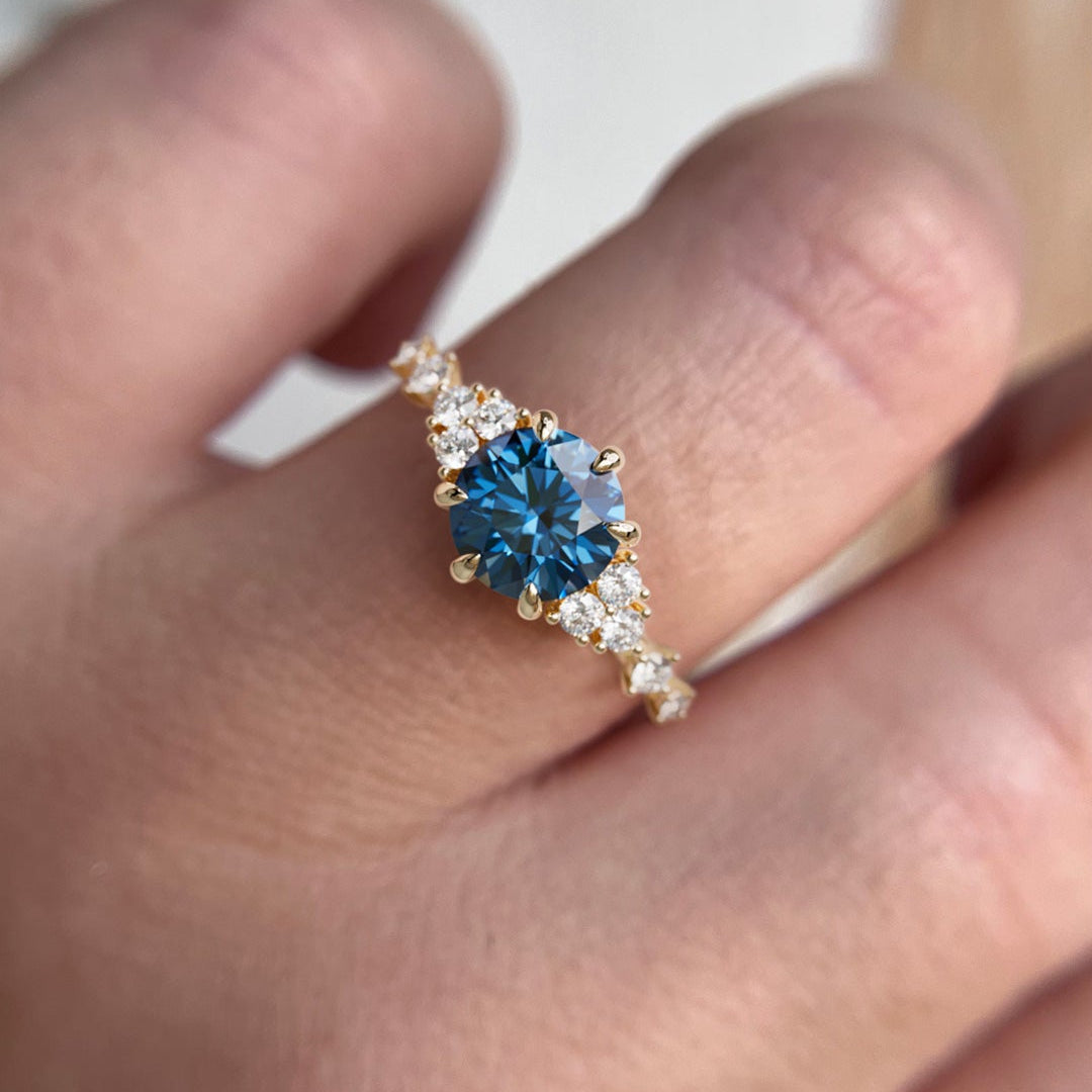 Odessa runder blauer Saphir einzigartiger Verlobungsring naturinspiriert