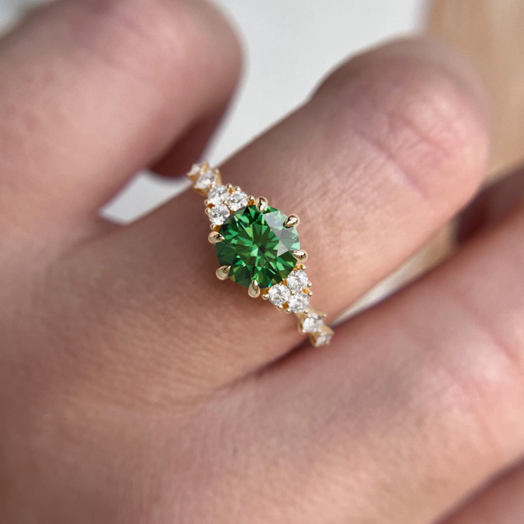 Odessa runder grüner Saphir einzigartiger Verlobungsring naturinspiriert