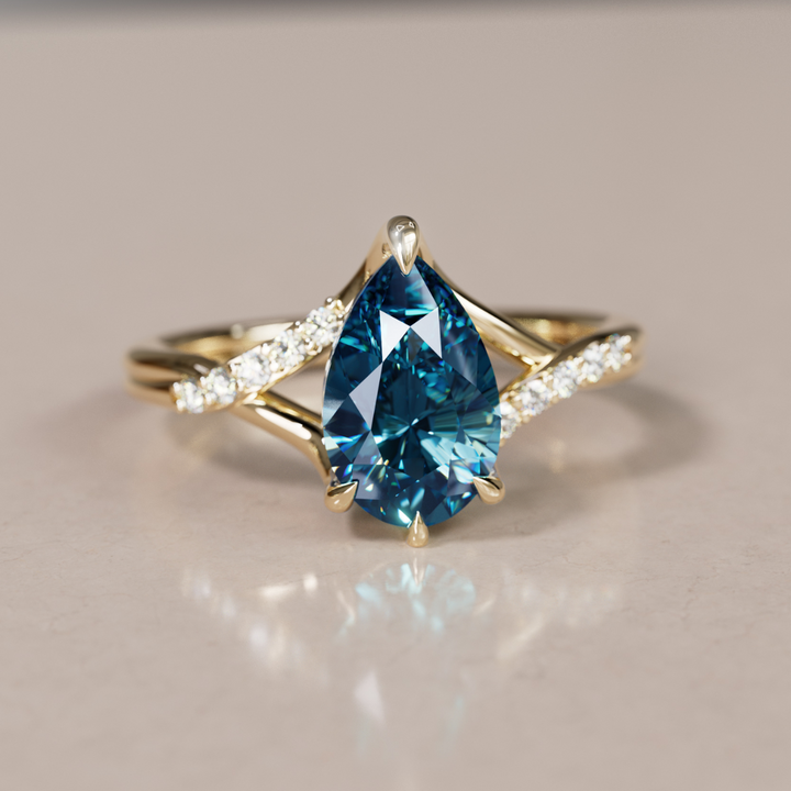 Δαχτυλίδι αρραβώνων φαντασίας μοναδικό Faye Pear μπλε ζαφείρι