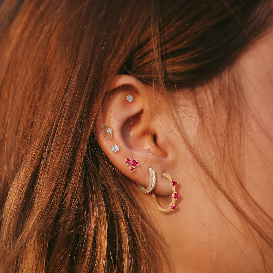 These romantic vibrant hoops are named after Eros is the greek god of love, the predecessor to cupid and son of Aphrodite. Eros was a winged bowman that liked to cause mischief and of course help people fall in love. He would have probably endorsed earrings studded with rubies as they symbolize passion and causes of the heart.