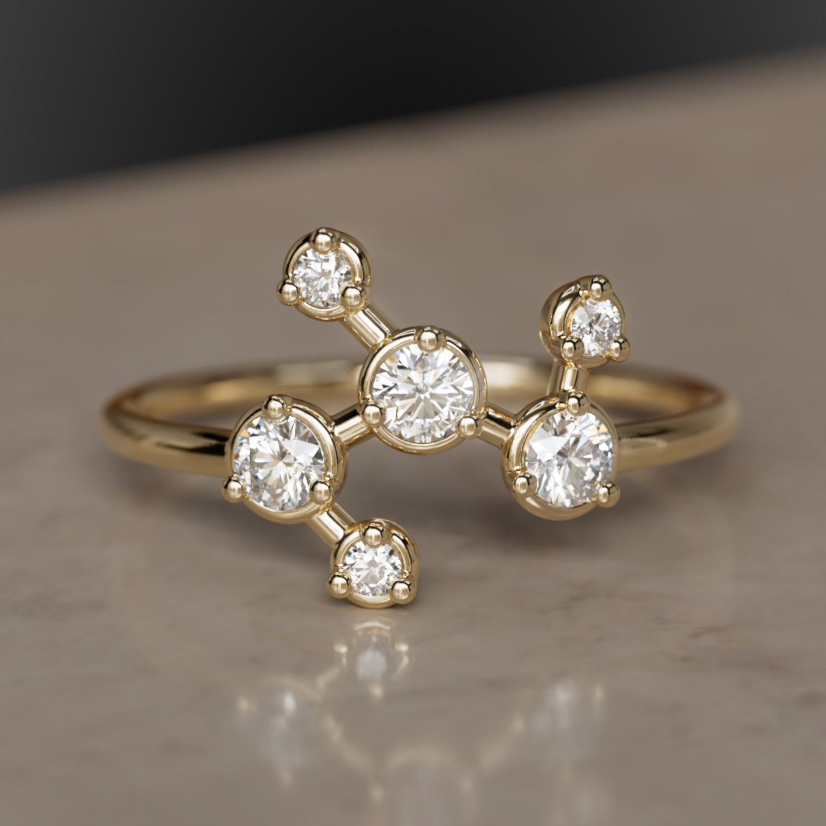 Pleiades Celestial Constellation Unique Ring with Diamonds
