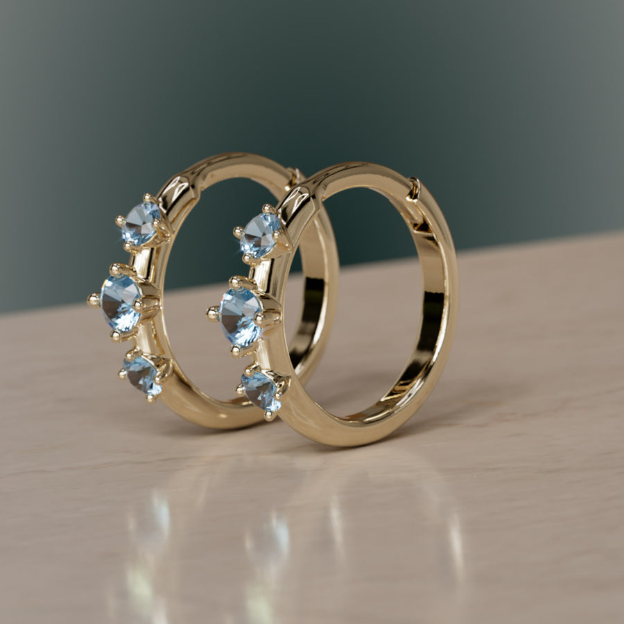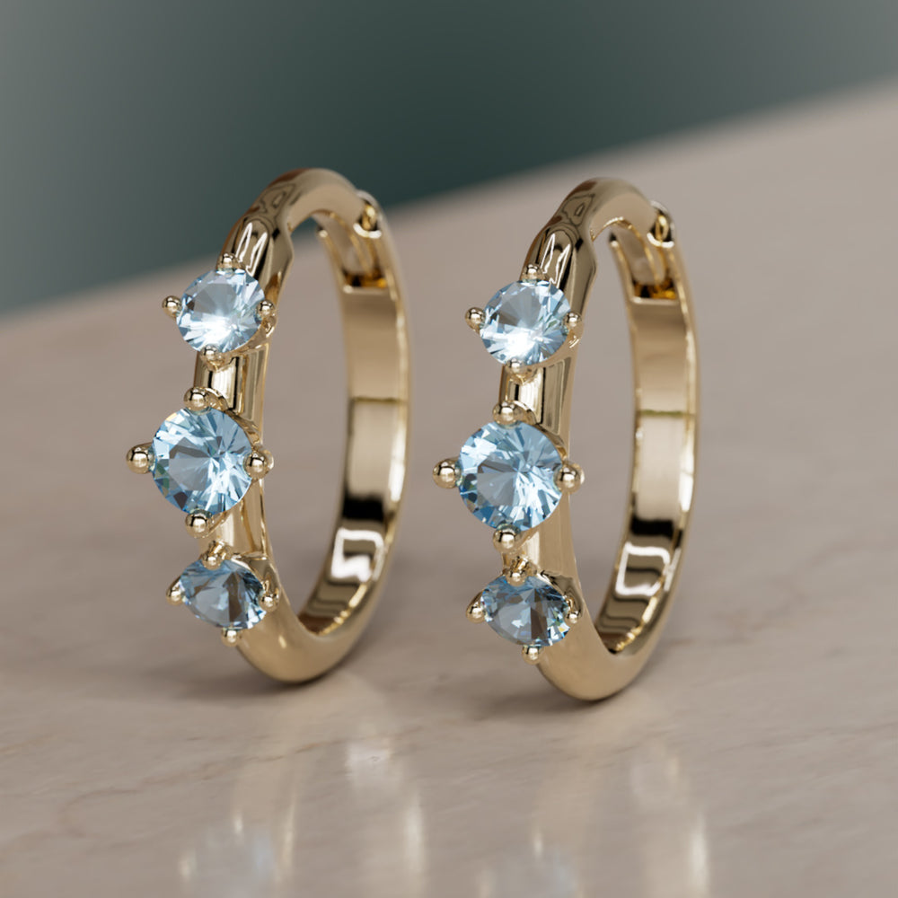 The Orion the Hunter constellation is one of the most distinct star arrangements in the night sky. The three beautiful stars that outline the Hunter's belt was the inspiration for these Clicker hoops. This is our boldest Orion’s Belt design, .22 Cts of ethically sourced Aquamarines are set along a knife edge hoop, with a hinge and a clicker closure. For a seamless earring from all angles, clickers make for the easiest earring to wear everyday.