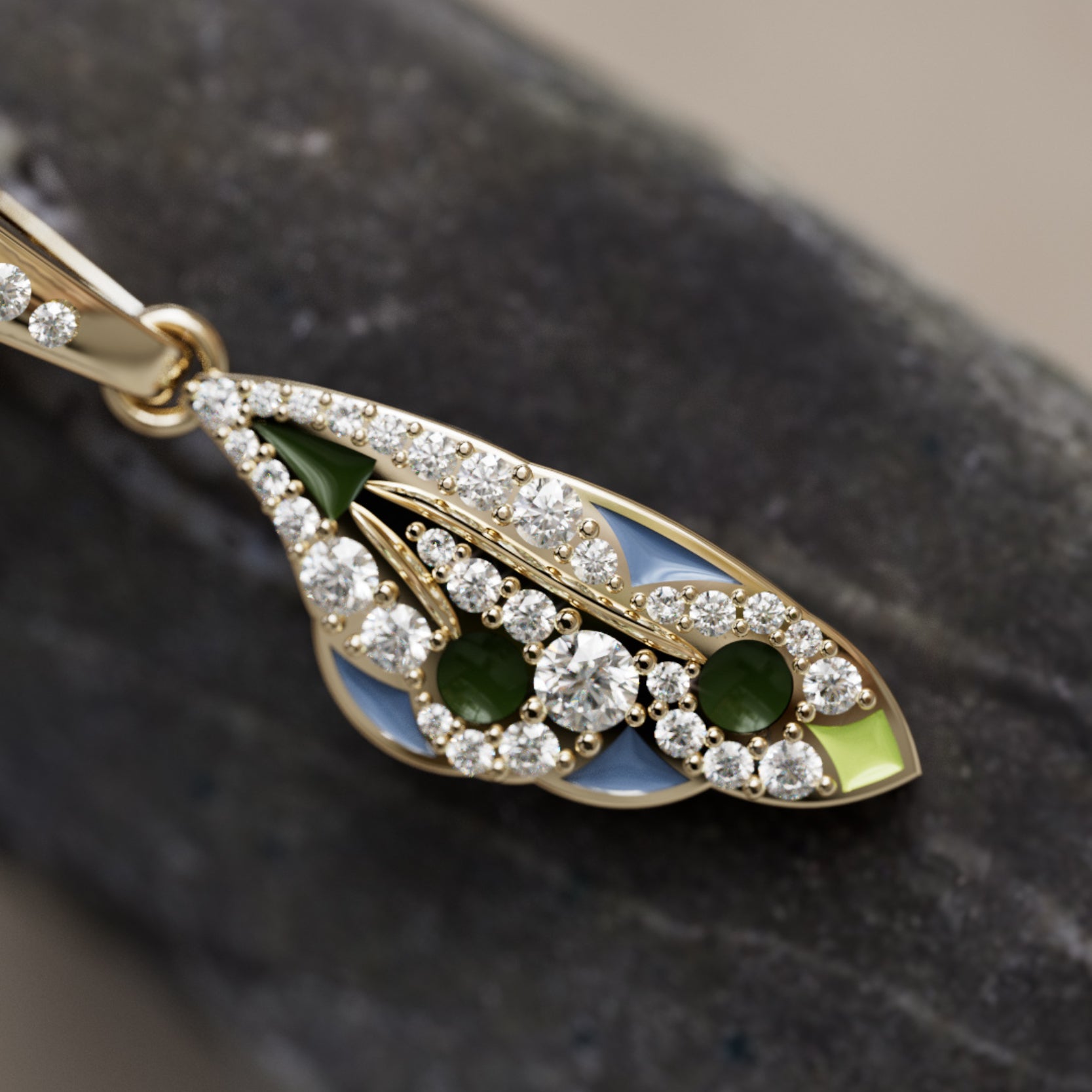 Inspired by the most magical creature of them all, the butterfly represents transformation, hope, and rebirth. Mariposa means butterfly in Spanish, and this pendant makes a stunning gift for yourself or someone you love. The perfect statement piece to mark a milestone and take your unique story with you everywhere you go. In colorway Swallowtail, featuring sky blue, olive green and lime green. This unique pendant is handmade one at a time with carefully painted enamel, your choice of metal color and lab grown diamonds. Charm is 30mm long with total carat wight is .86cts and total gold weight in 14k is 6 grams. Chain sold separately.