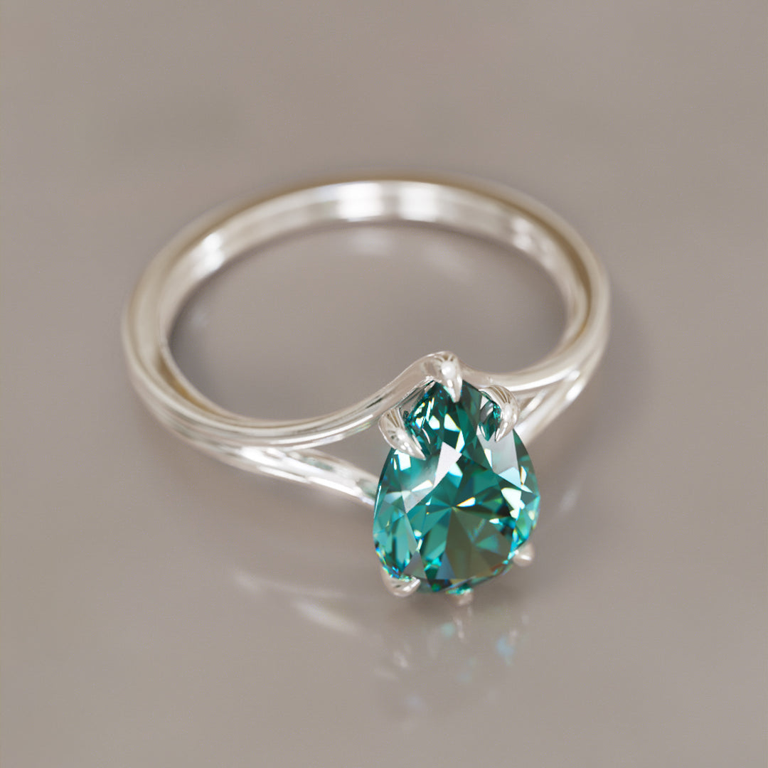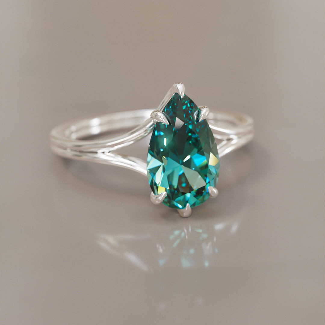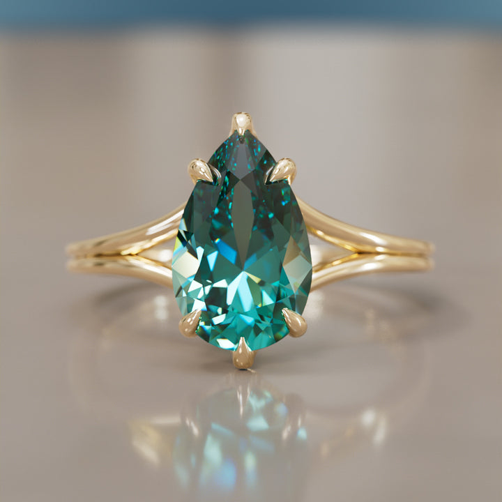 Zoe Pear Teal Sapphire Modern Unique Split Shank Engagement Ring (Setting Only)