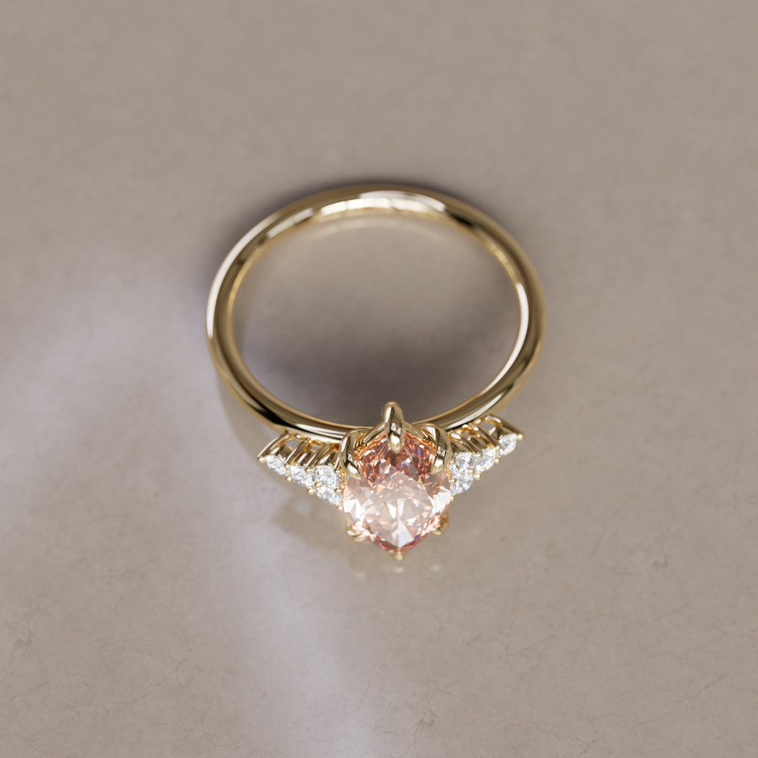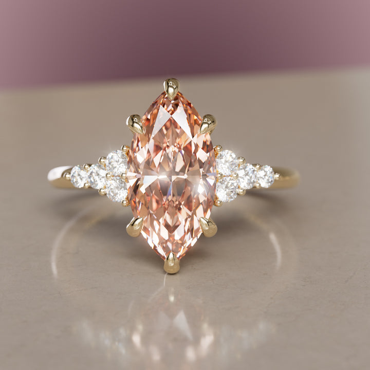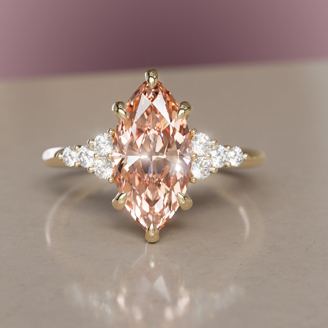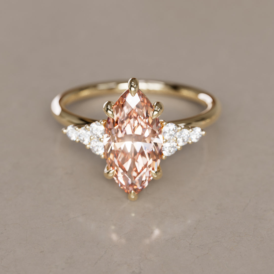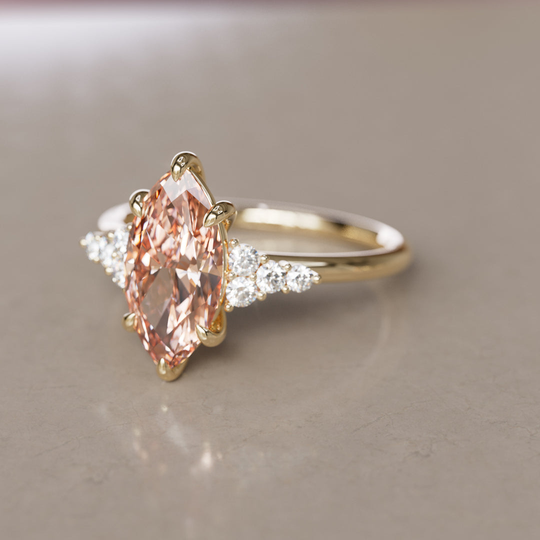 Jasmine Marquise Peach Lab Diamond Unique Modern Engagement Ring