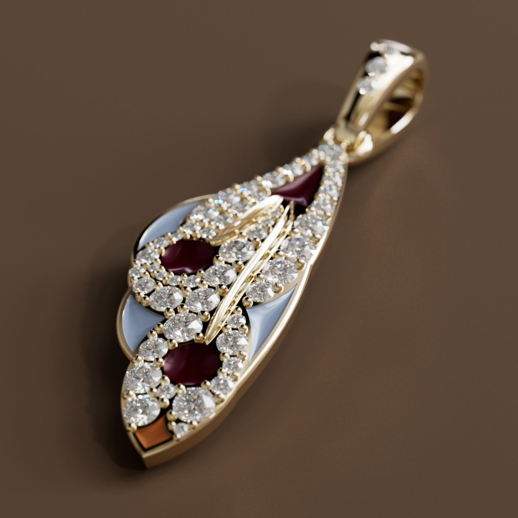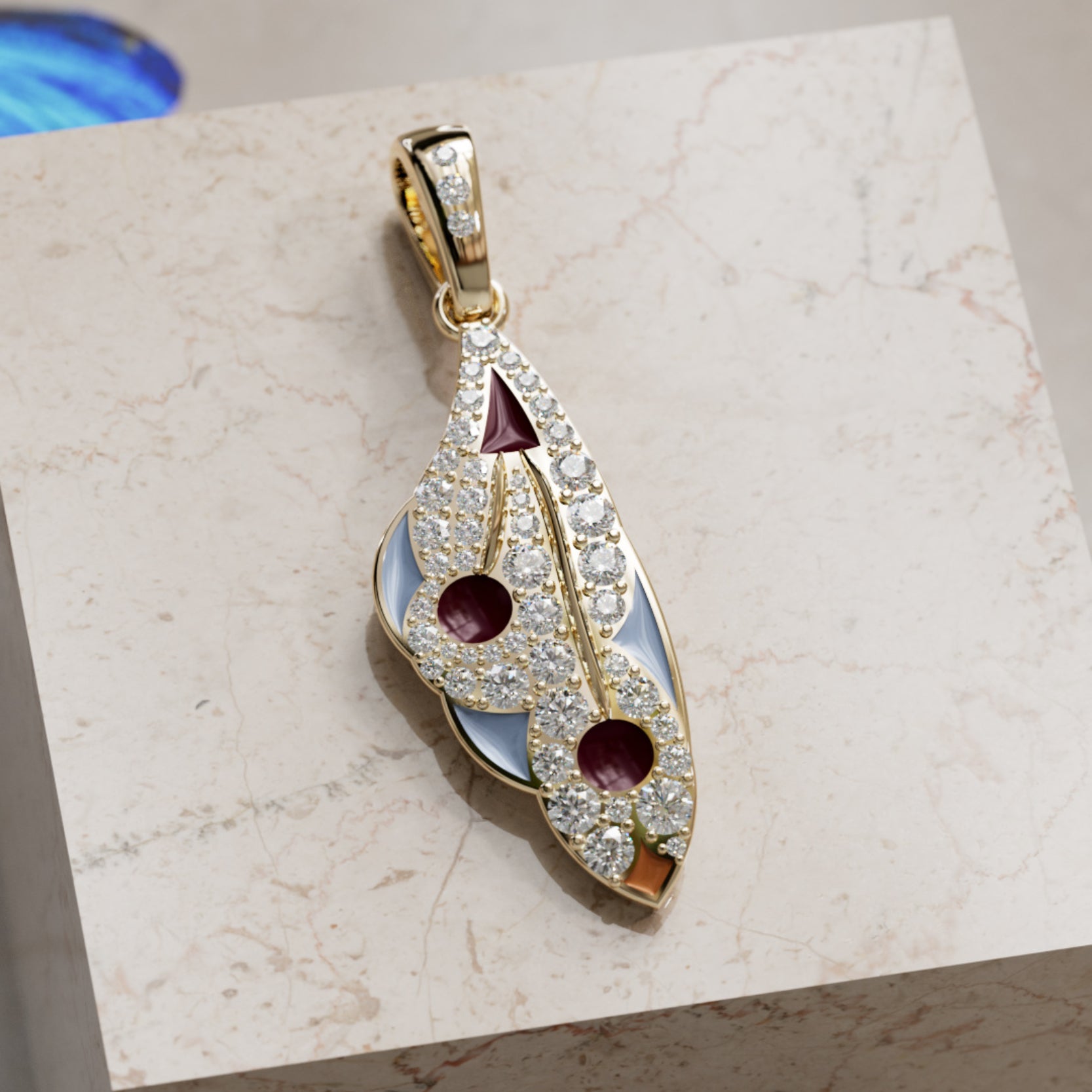 Inspired by the most magical creature of them all, the butterfly represents transformation, hope, and rebirth. Mariposa means butterfly in Spanish, and this pendant makes a stunning gift for yourself or someone you love. The perfect statement piece to mark a milestone and take your unique story with you everywhere you go. In colorway Eggplant and Chalcedony, featuring eggplant purple, Chalcedony blue and sienna brown. This unique pendant is handmade one at a time with carefully painted enamel, your choice of metal color and lab grown diamonds. Charm is 30mm long with total carat wight is .86cts and total gold weight in 14k is 6 grams. Chain sold separately.