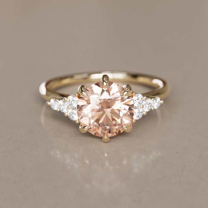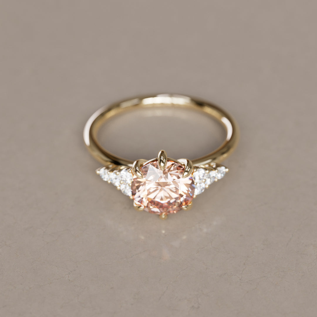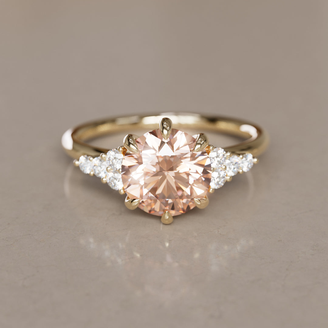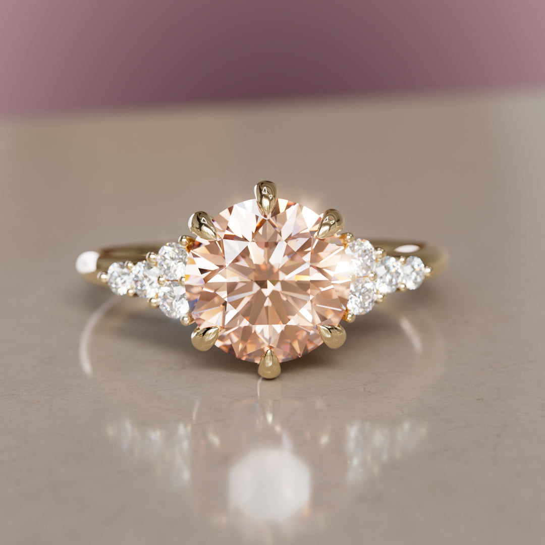 Iris Round Peach Lab Diamond Unique Modern Engagement Ring