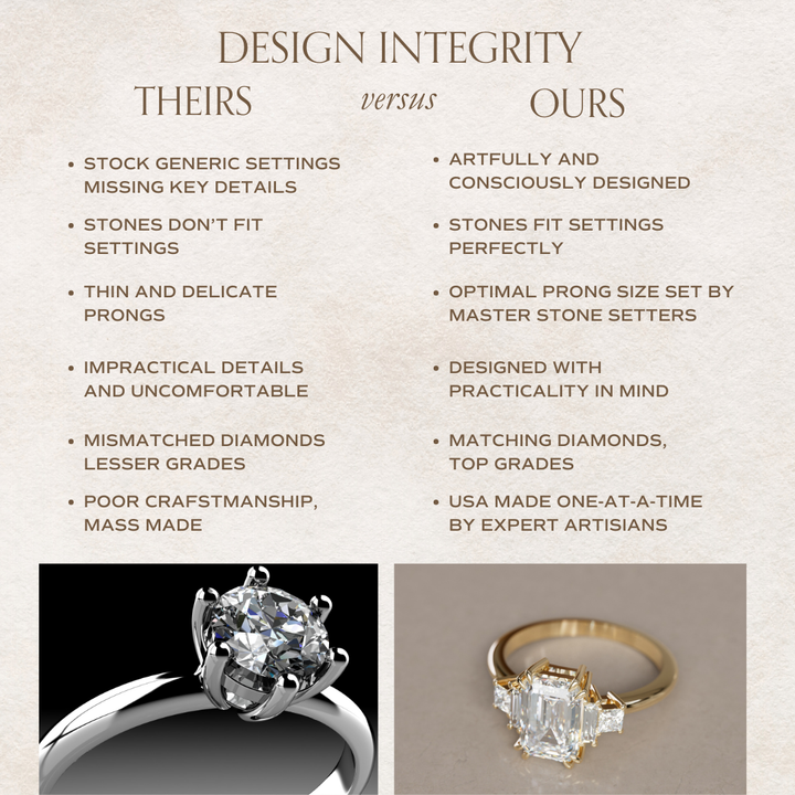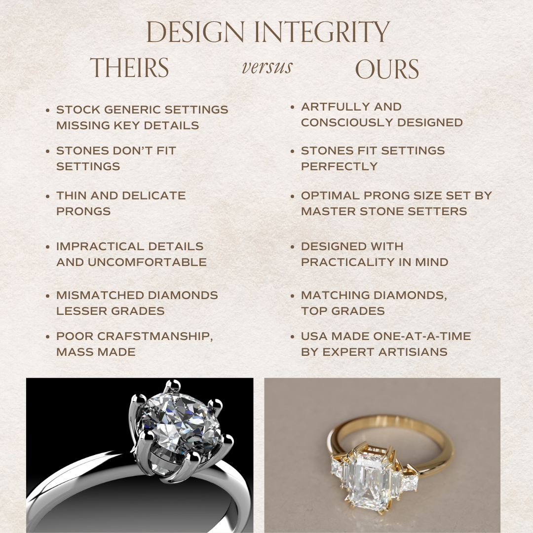 We offer a highly customized and tailored jewelry experience through one-on-one support with our head jewelry designer Brittany Groshong. We offer extensive email and video calls to assist you at every step in your jewelry shopping journey. Whether you are just getting started or need help bringing your vision to life we offer professional jewelry guidance to make your shopping experience relaxed and enjoyable. Our shopping assistance is offered with zero pressure and we are simply happy to share our love of fine jewelry with our clients. For our engagement ring designs you can expect us to go above and beyond, take a look at our most recent testimonials from our many happy clients. We can tailor each of our ring designs to fit within your budget and design aesthetics for a truly personalized ring.