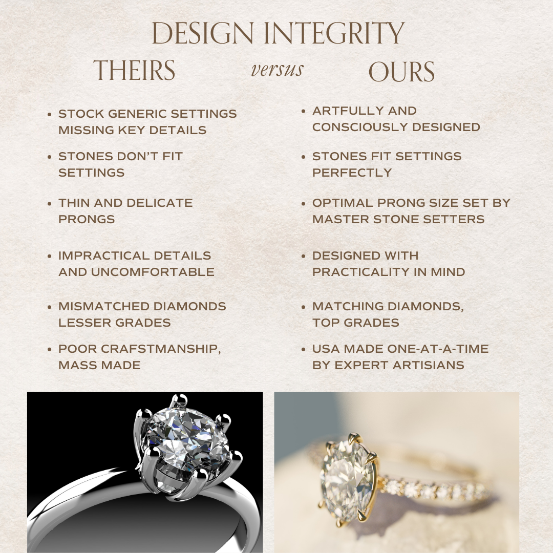 We offer a highly customized and tailored jewelry experience through one-on-one support with our head jewelry designer Brittany Groshong. We offer extensive email and video calls to assist you at every step in your jewelry shopping journey. Whether you are just getting started or need help bringing your vision to life we offer professional jewelry guidance to make your shopping experience relaxed and enjoyable. Our shopping assistance is offered with zero pressure and we are simply happy to share our love of fine jewelry with our clients. For our engagement ring designs you can expect us to go above and beyond, take a look at our most recent testimonials from our many happy clients. We can tailor each of our ring designs to fit within your budget and design aesthetics for a truly personalized ring.