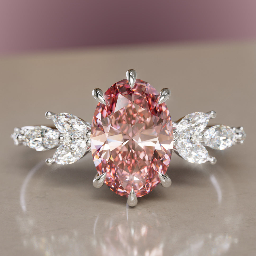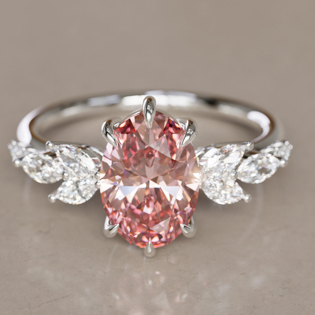 Anillo de compromiso con flor de diamante de laboratorio rosa ovalado Calla inspirado en la naturaleza