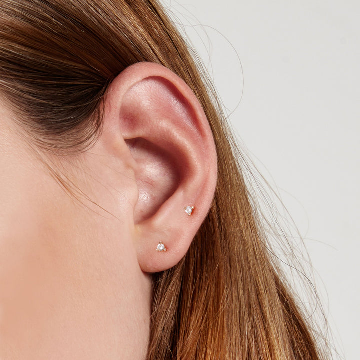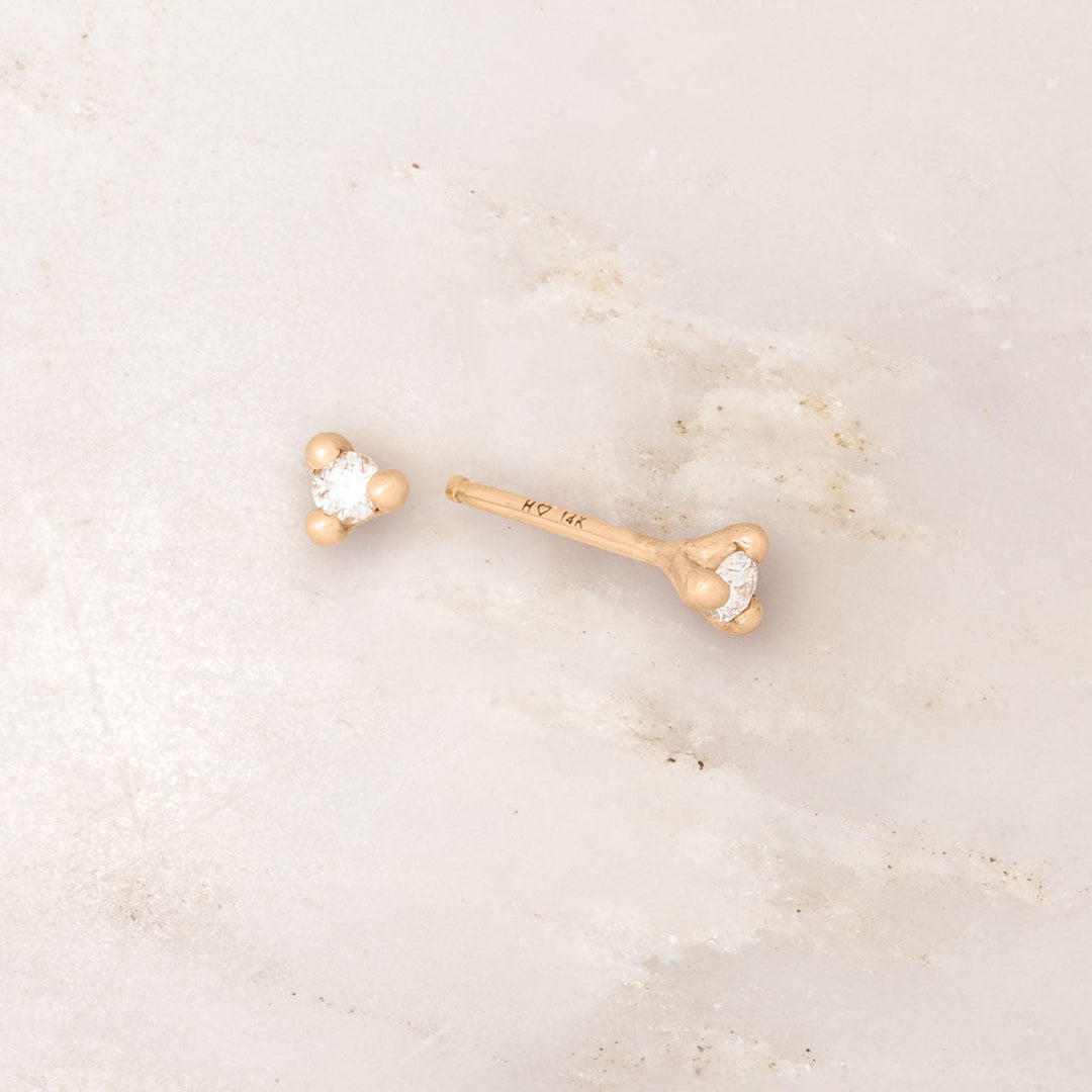 Los pendientes Étoile son un básico clásico. Un solo diamante pequeño está engastado en lujoso oro fairmined para un brillo sutil y diminuto. Pendientes perfectos para el día a día para combinar en cualquier perforación. Tamaño: aproximadamente 2 mm, se venden individualmente. Queda un par.