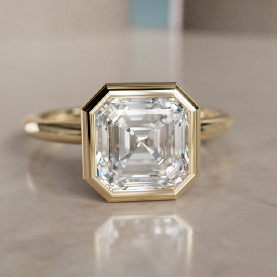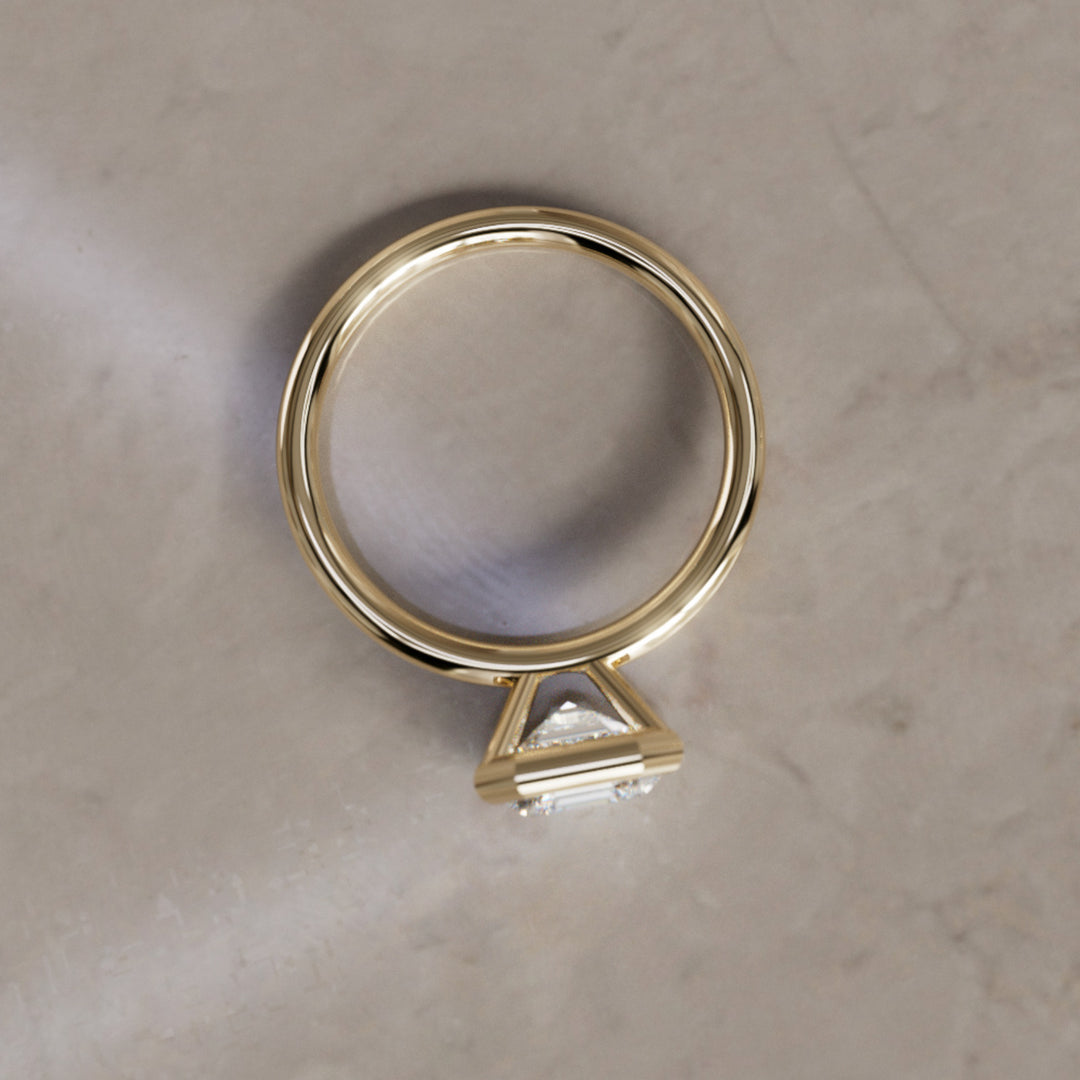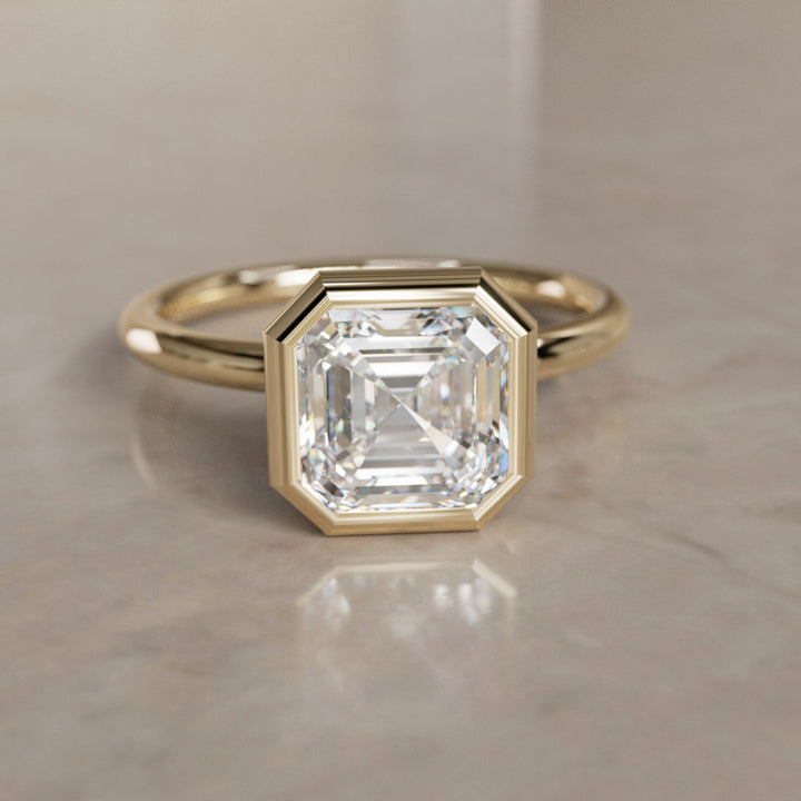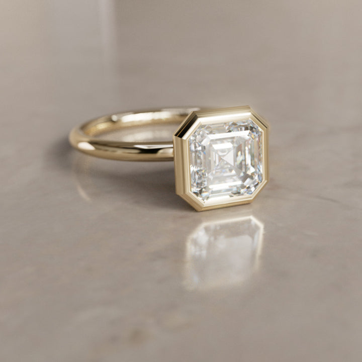 Anillo de compromiso solitario único moderno con engaste bisel y diamante talla Asscher Remi