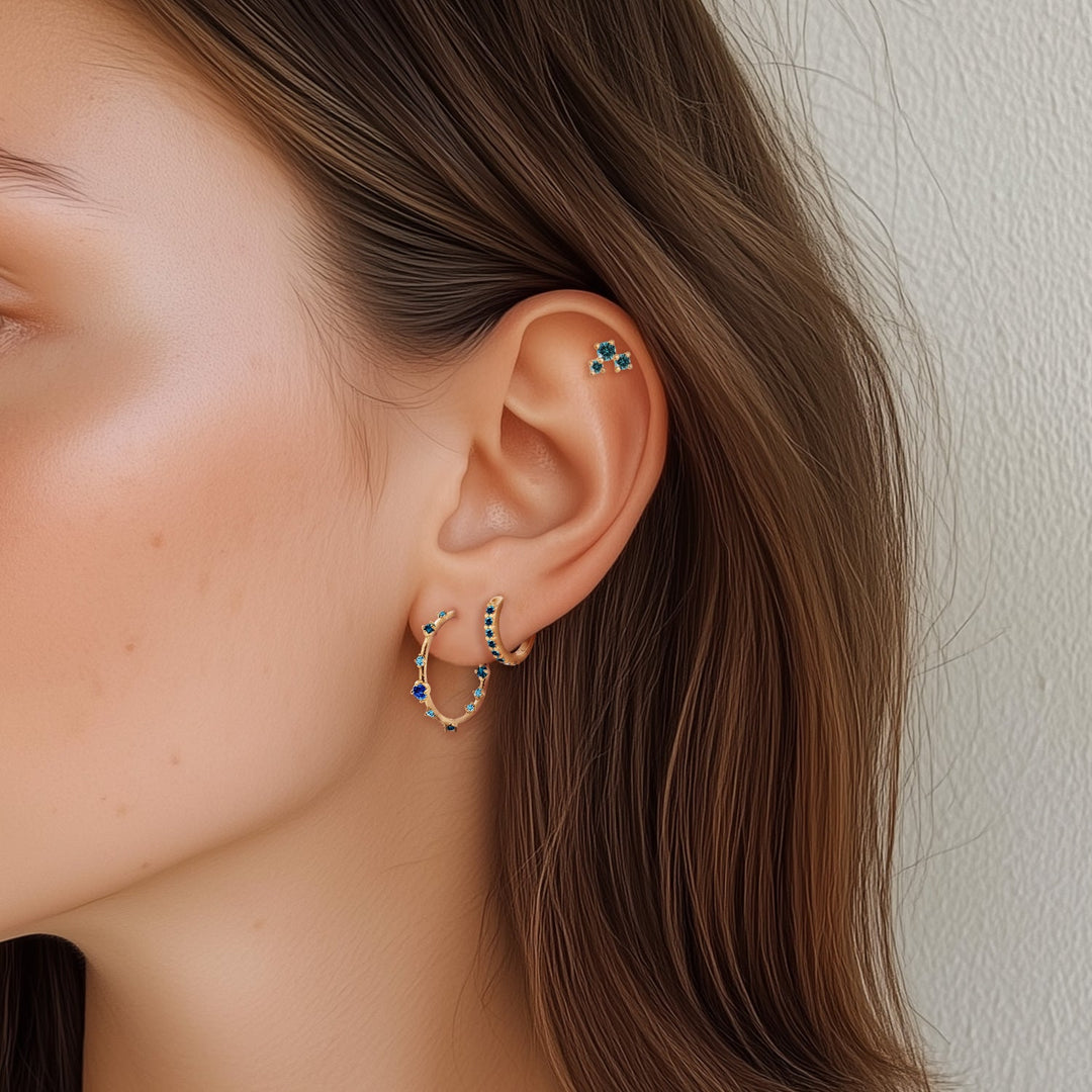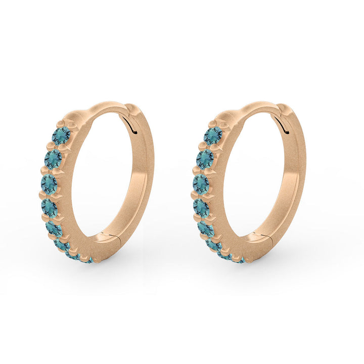 Tapaa täydelliset jokapäiväiset korvakorusi: Paola Clicker Hoops -renkaat. Nämä saumattomat renkaat sisältävät 1,5 mm (0,015 ct) sinivihreitä safiireja ikuisuusasetuksessa, varustettuna kätevällä saranalla ja napsautuslukolla. Suunniteltu jokapäiväiseen käyttöön, nämä korvakorut tarjoavat saumattoman ilmeen kaikista kulmista. Valitse yksittäiset tai pari sinivihreillä safiireilla. Nosta korvakorupelisi uudelle tasolle Paola Clicker Hoops -renkailla. Sisähalkaisija on 10 mm. Yhden korvakorurenkaan kokonaiskaraattipaino on 0,12 ct ja parin 0,22 ct.