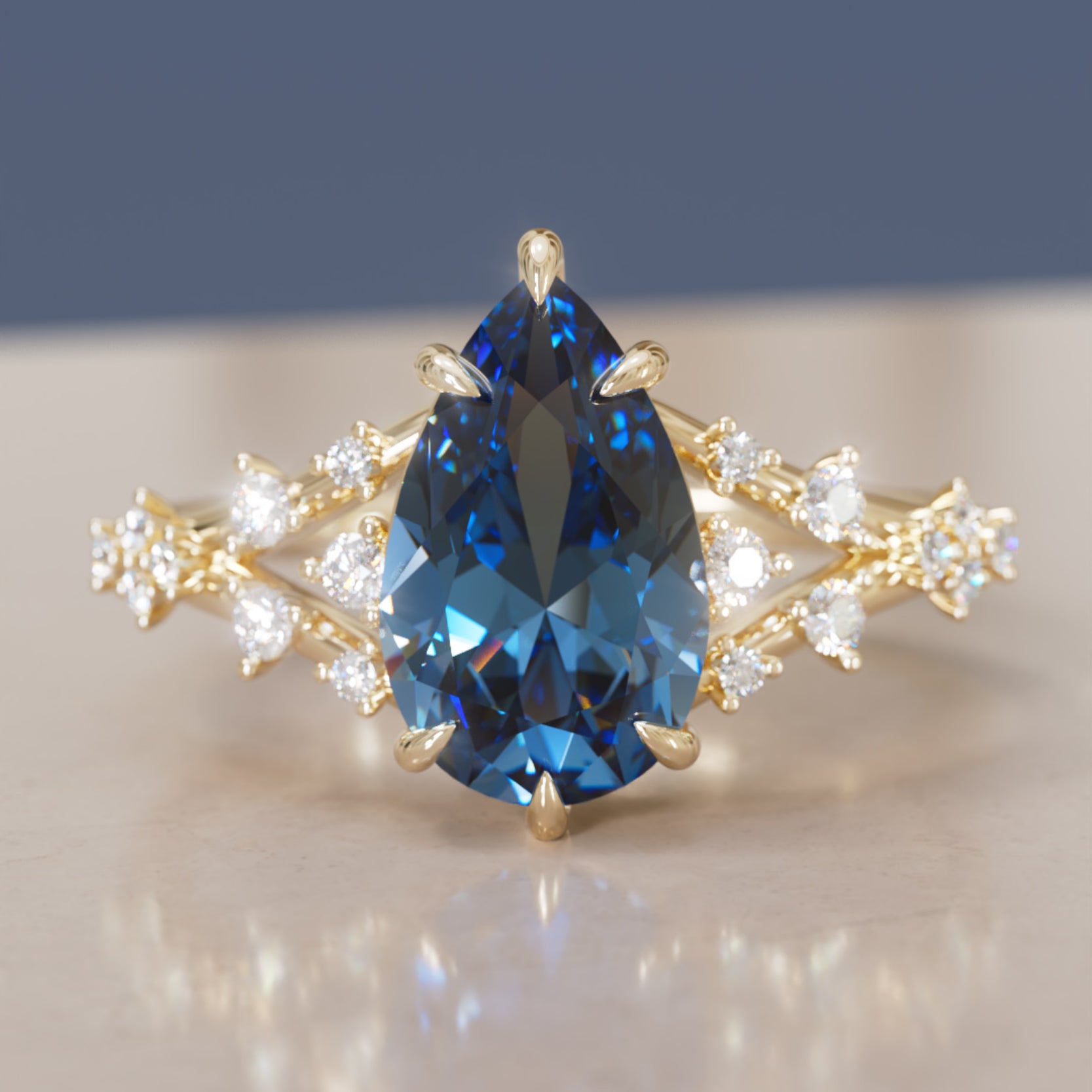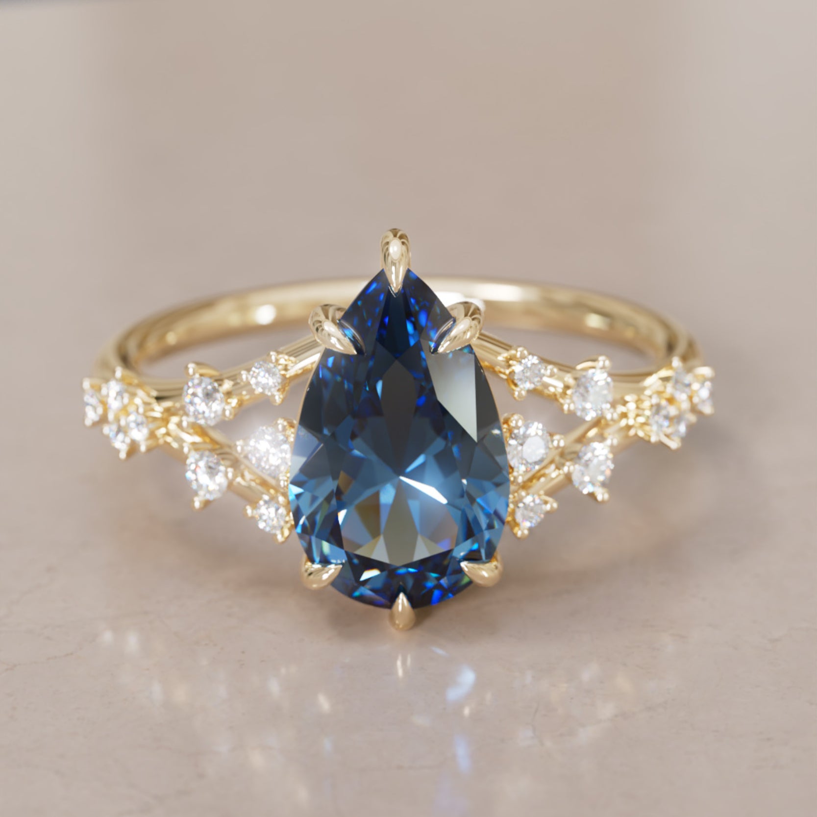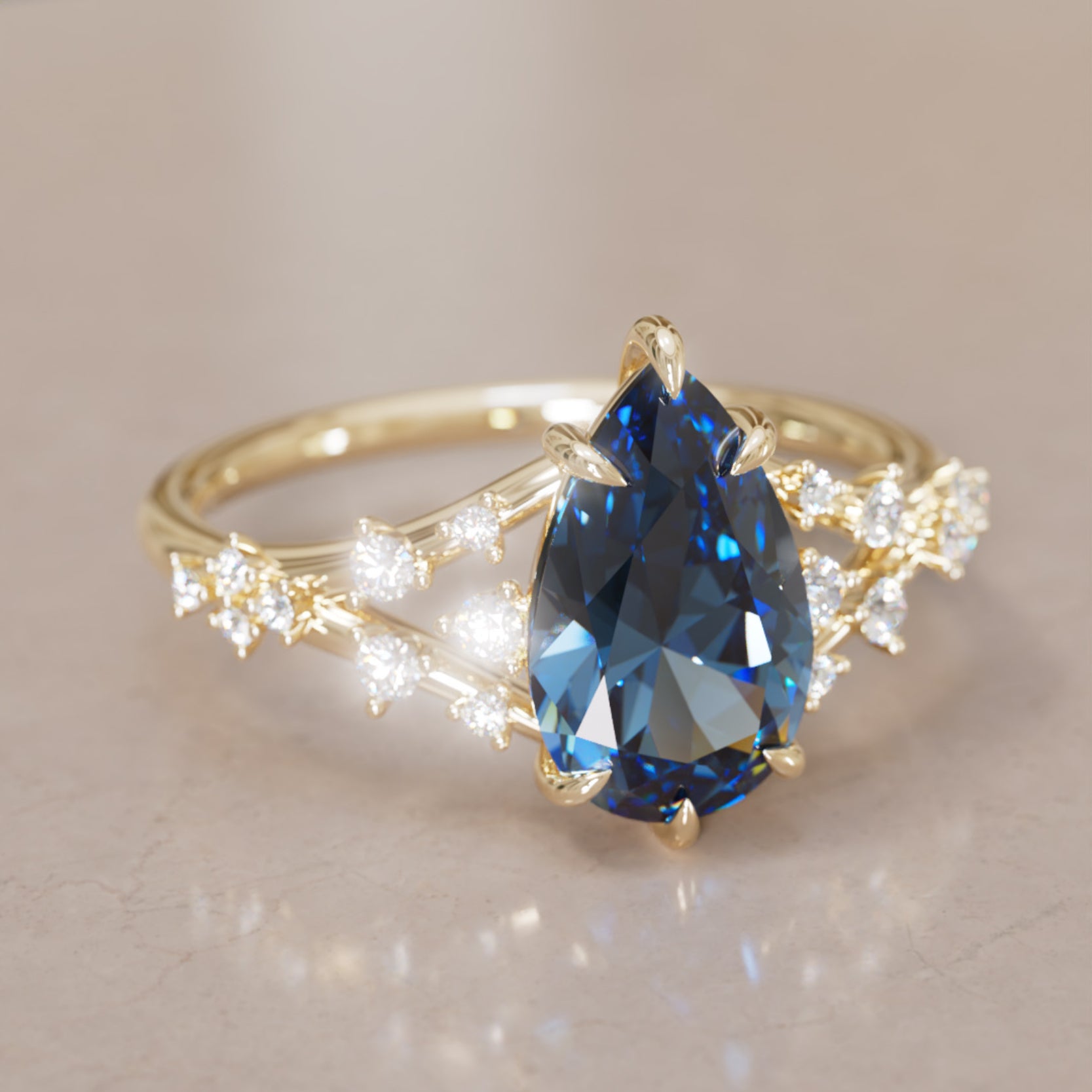 Bague de fiançailles alternative Lysandra poire saphir bleu