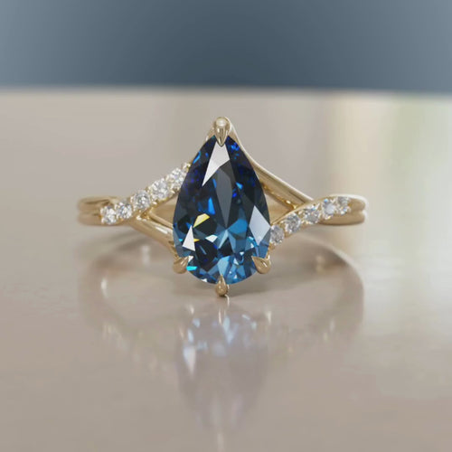 Bague de fiançailles fantaisie unique Faye Pear Saphir bleu (monture seulement)