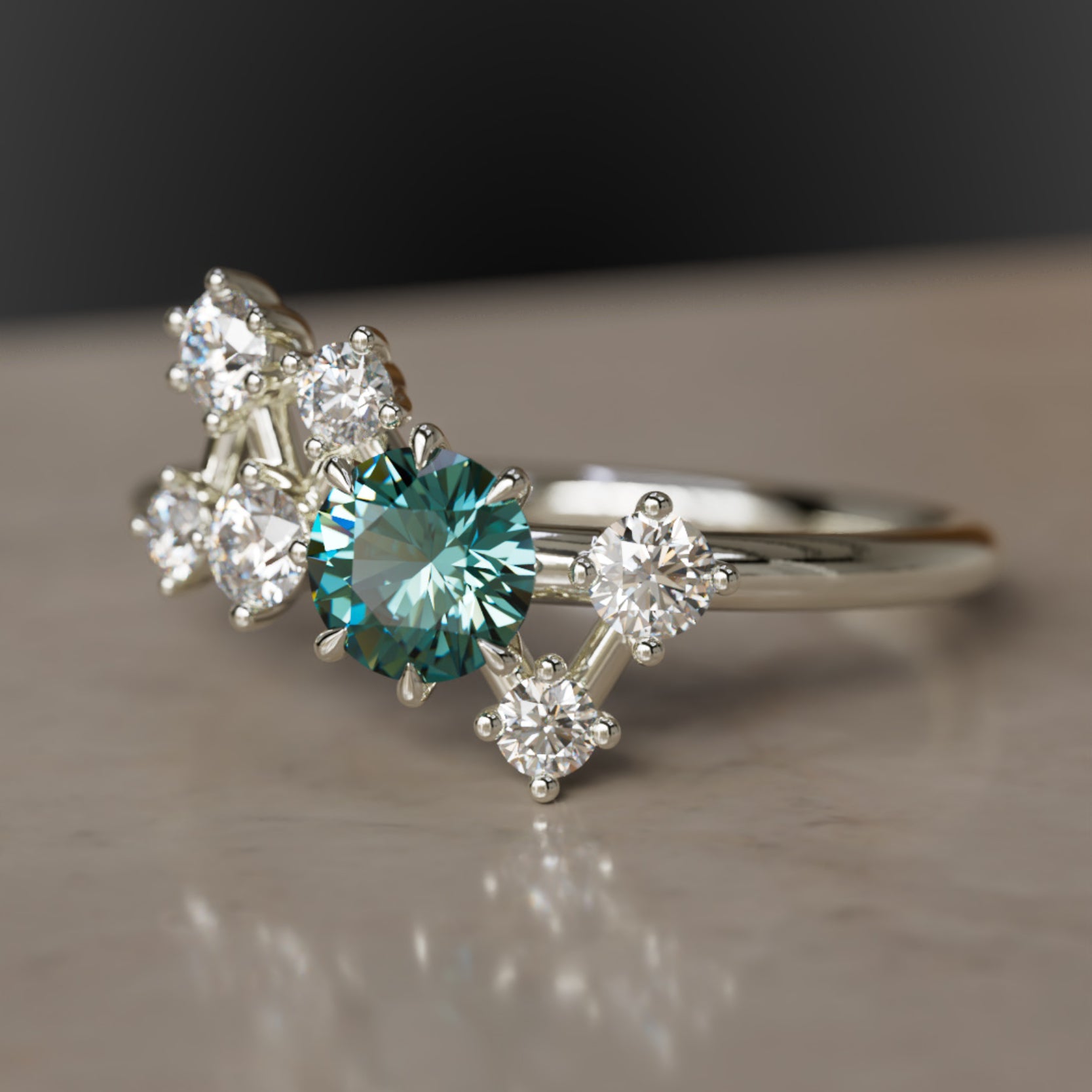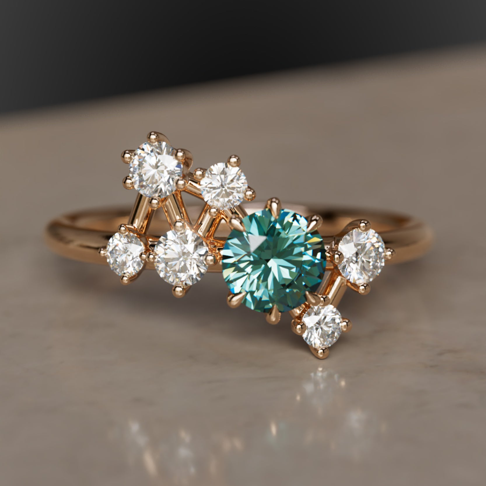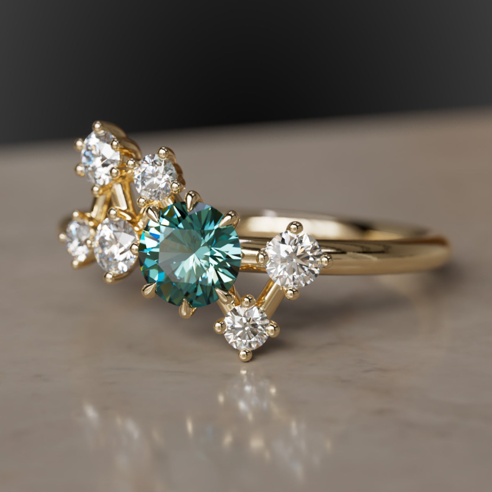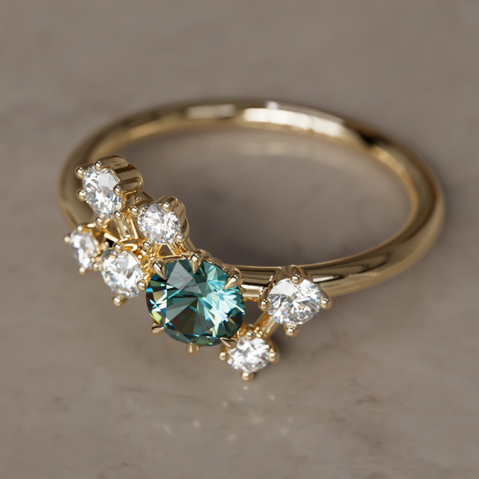 Bemutatjuk az Andromeda Zafír Gyűrűt, egy éteri mesterművet, amely az Andromeda galaxis ihletésével készült. Ez a csillagközi gyűrű laboratóriumban termesztett gyémántokkal van díszítve, amelyek egy lenyűgöző égi alakzatban rendeződnek el, közepén egy hipnotizáló 4,5 mm-es türkizkék zafírral. Emeld stílusodat és öleld át a kozmosz szépségét ezzel az egyedi és elbűvölő darabbal.