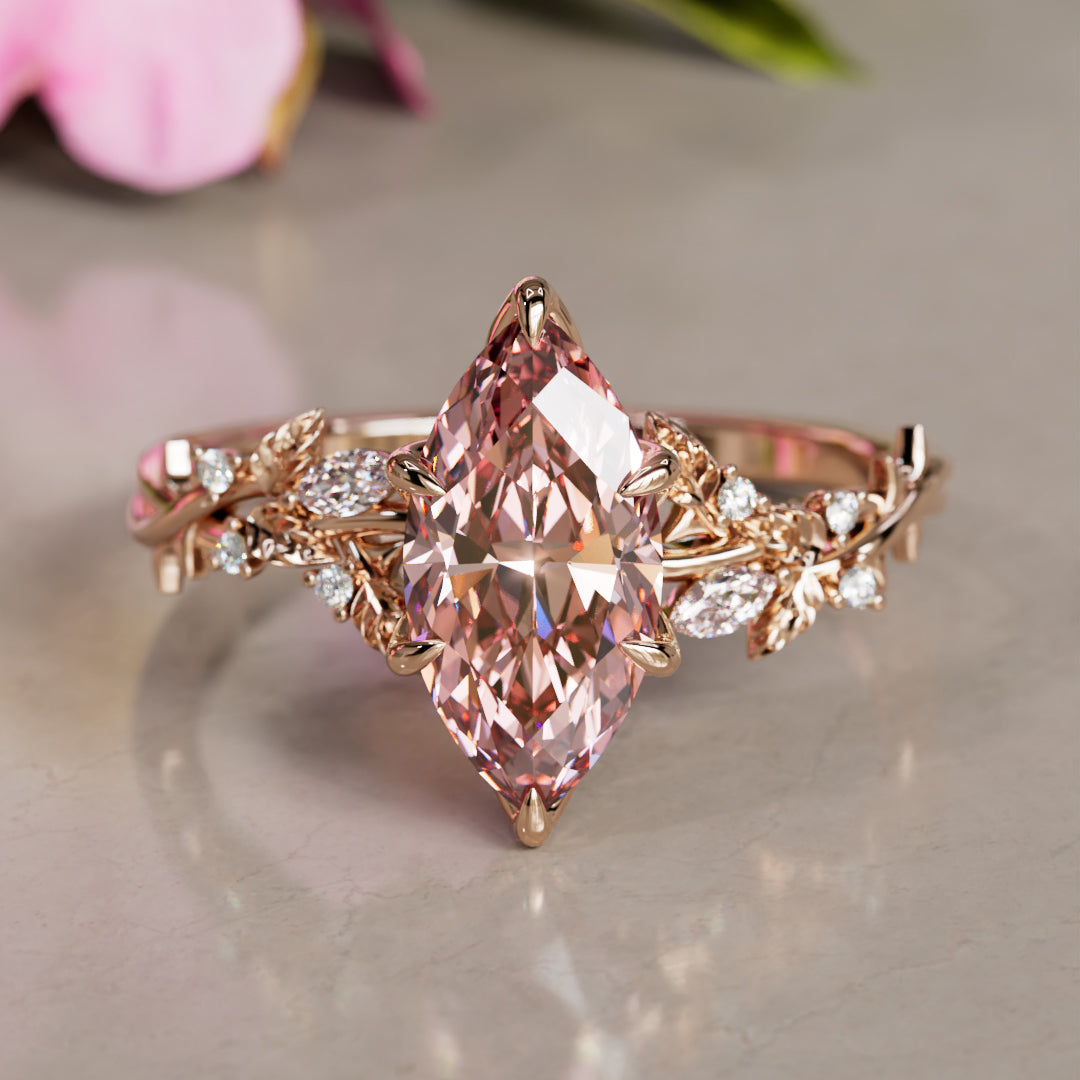 Rosewood Marquise bleikur demantur trúlofunarhringur blóm náttúru innblásinn