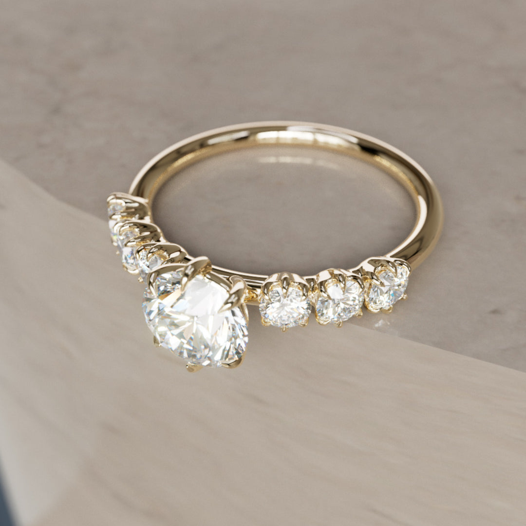 Anello di fidanzamento con diamante rotondo moderno Isobel Unique Lab