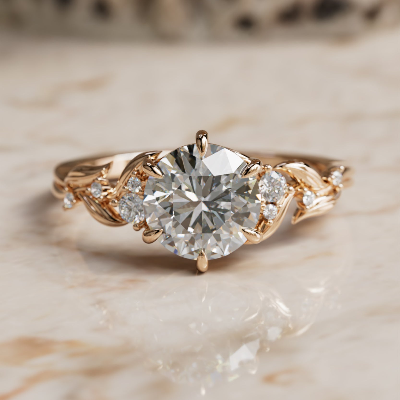 Lab-diamant forlovelsesring: Celria rundslipt blomstringring inspirert av naturen (kun innfatning)