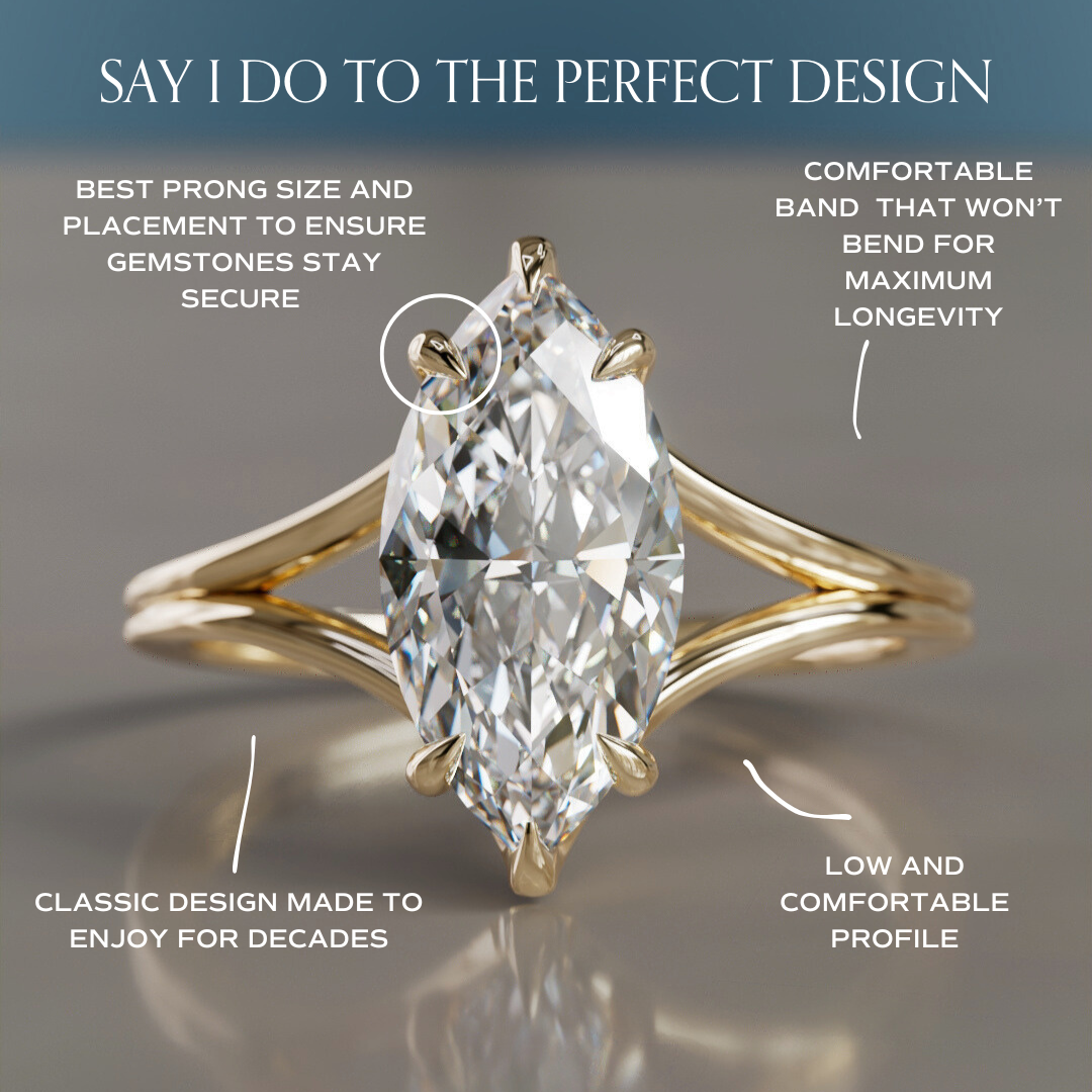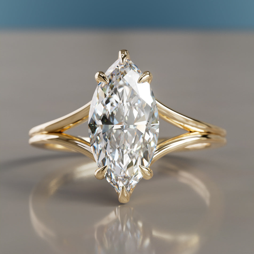 Nowoczesny unikalny pierścionek zaręczynowy Nova Marquise z diamentem i rozdzielonym szynem