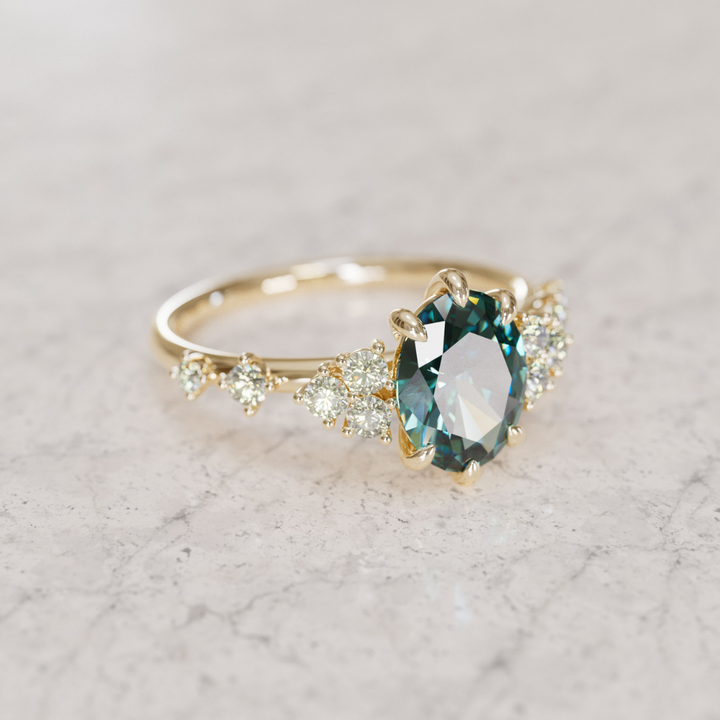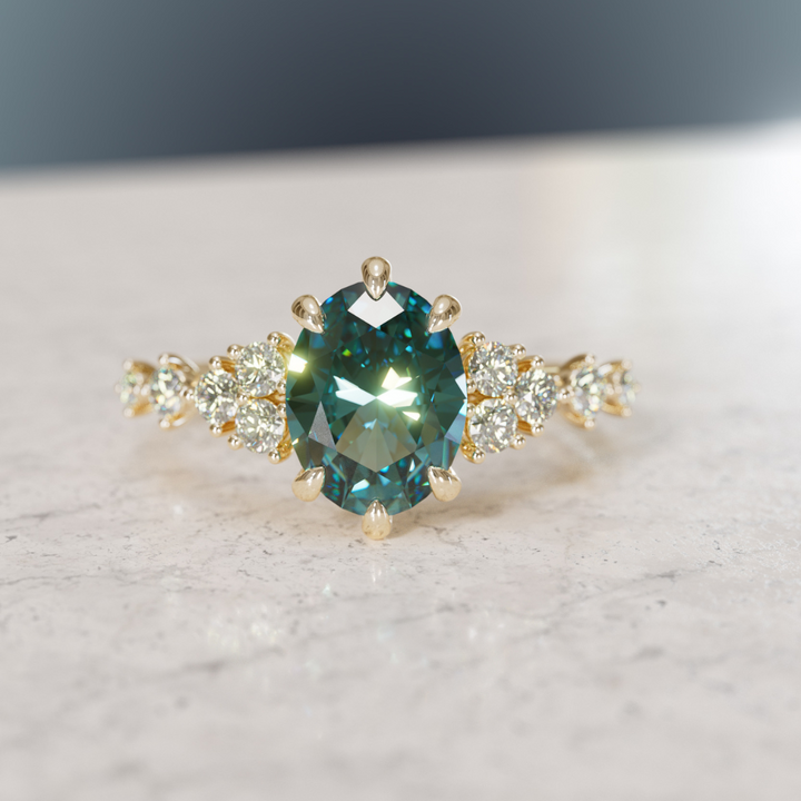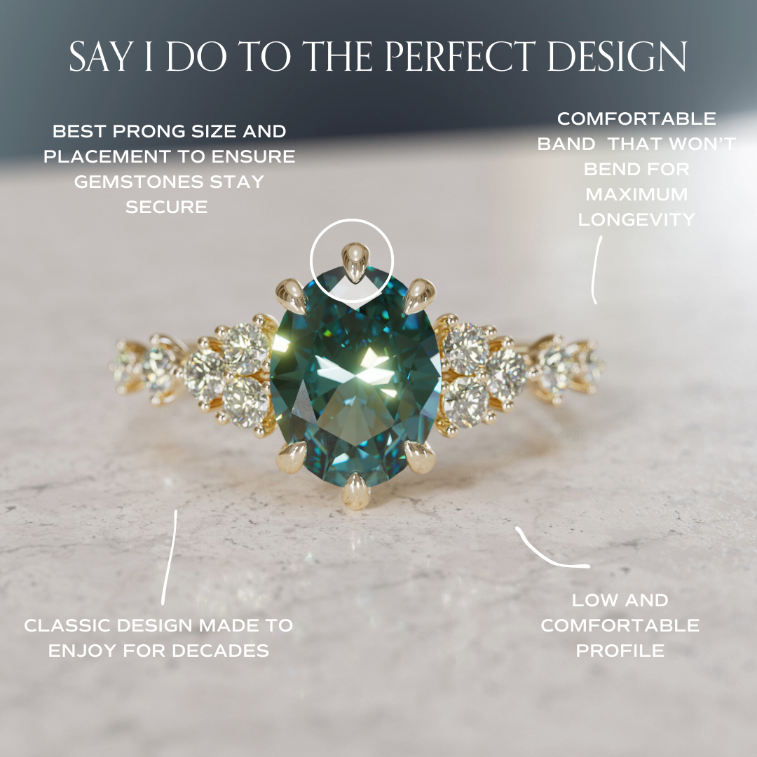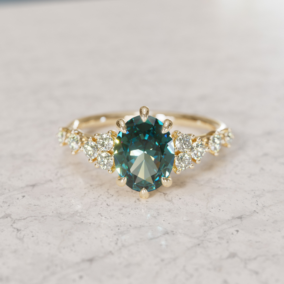 Inel de logodnă unic Odelia oval safir teal inspirat de natură (doar montura)