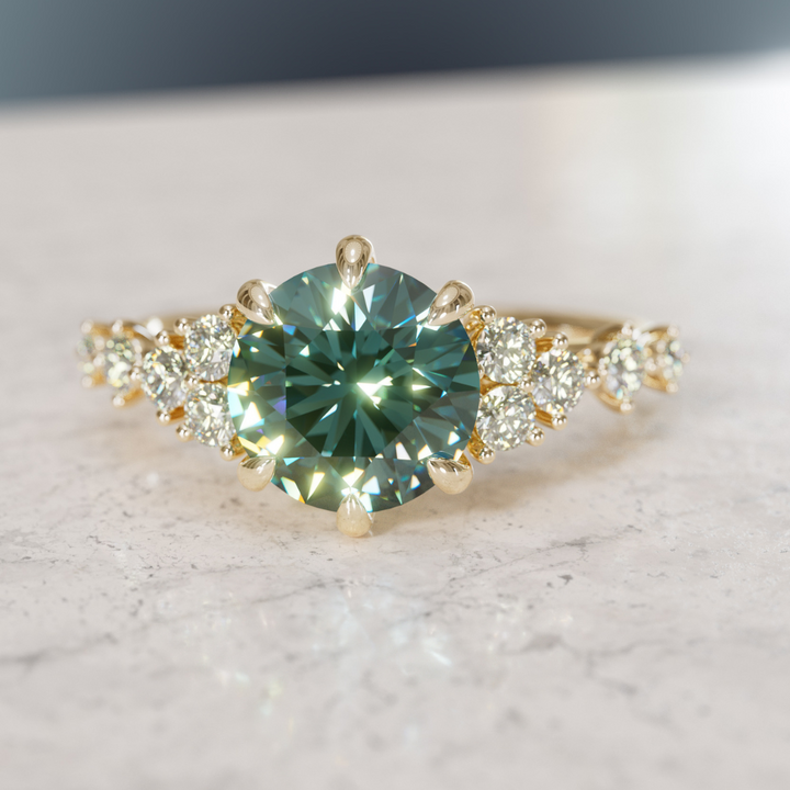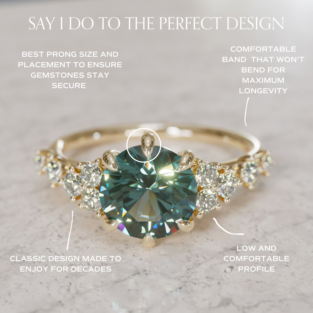 Inel de logodnă unic Odessa rotund safir teal inspirat de natură (doar montura)